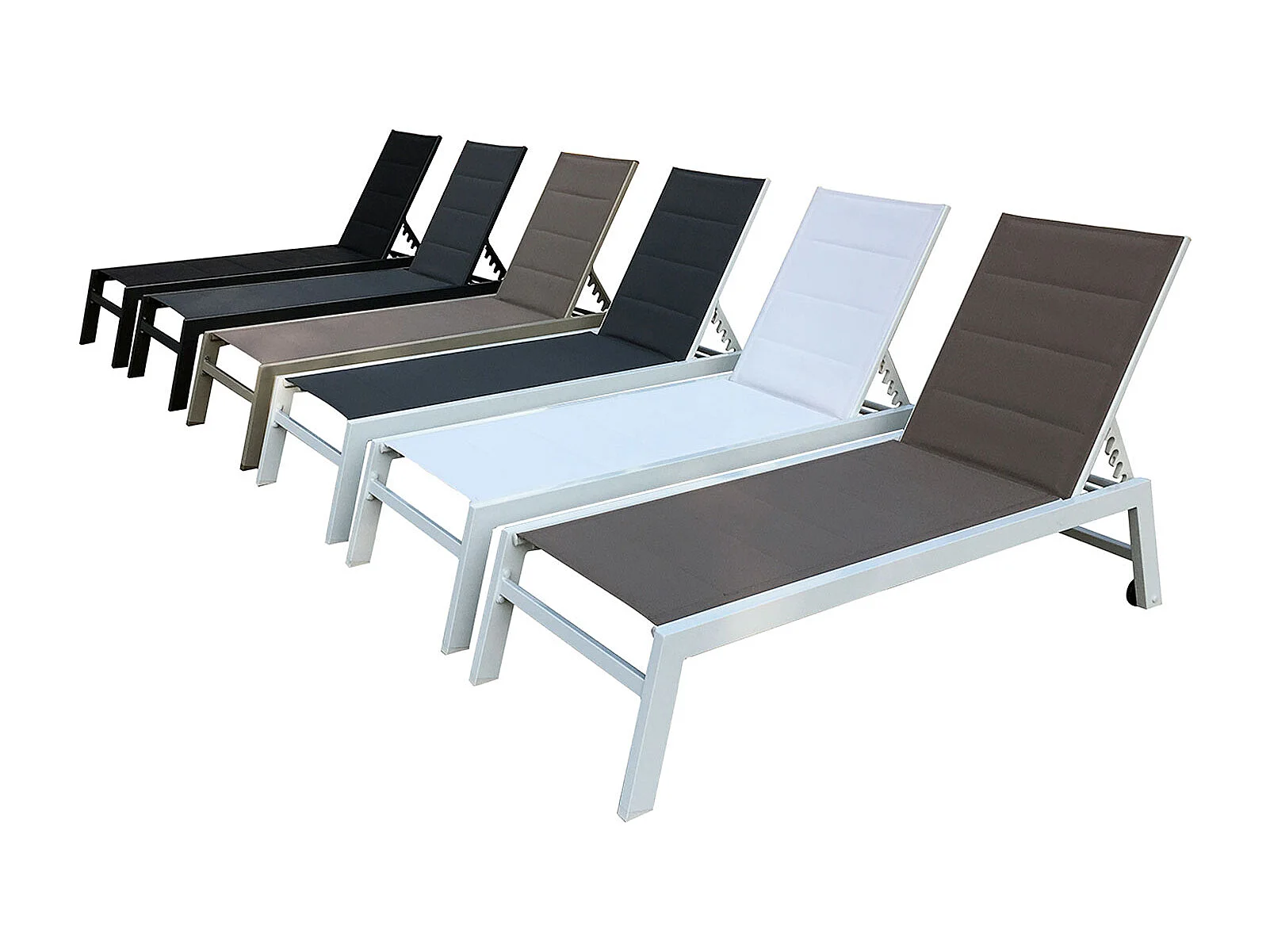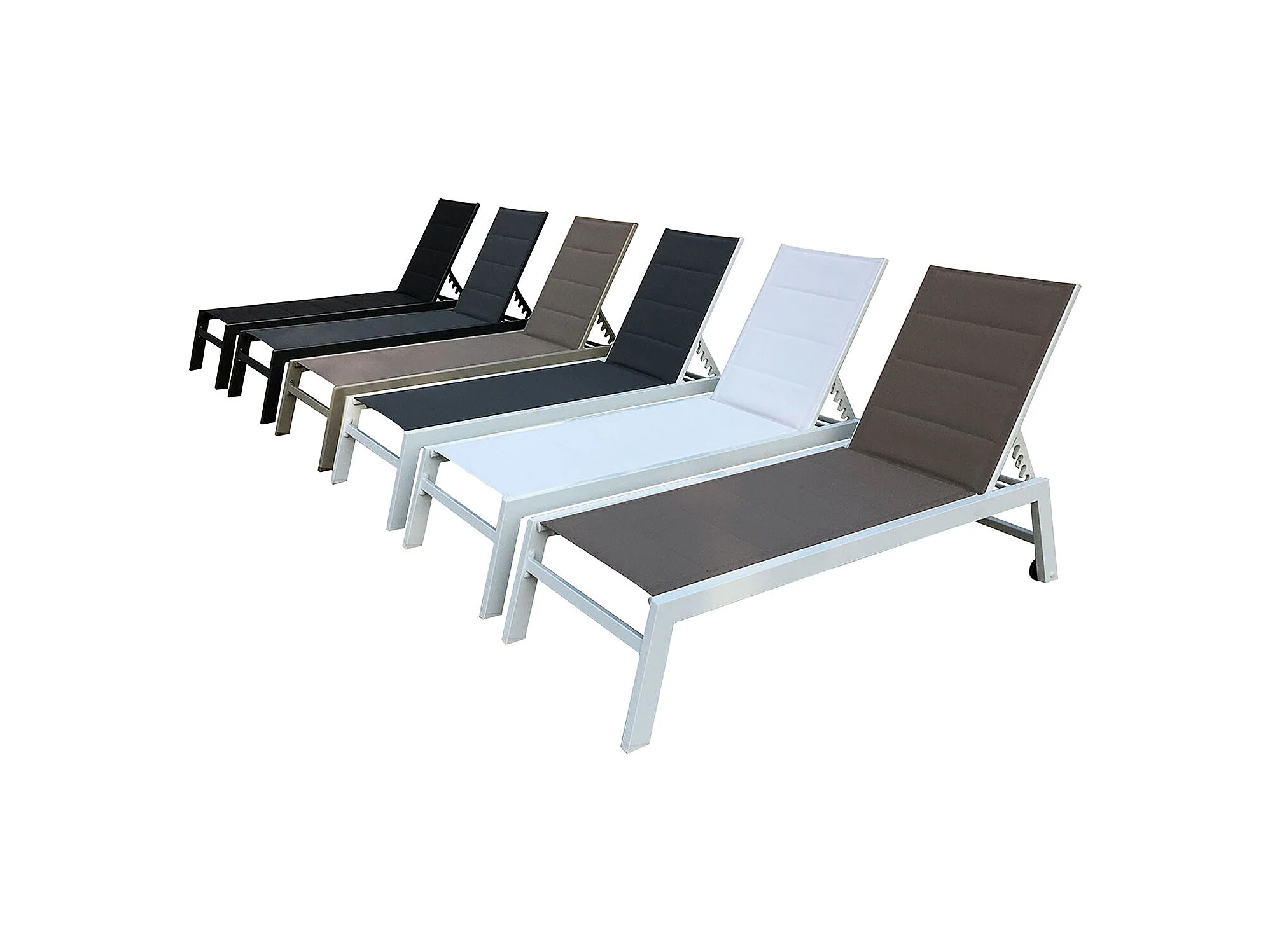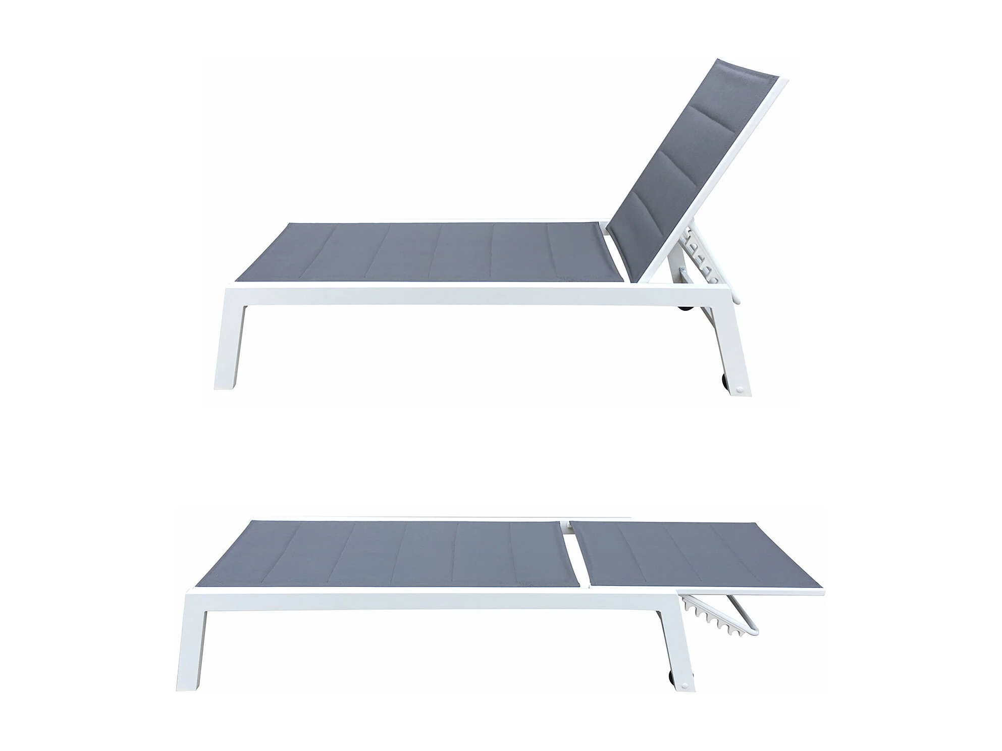 Lot de 2 bains de soleil BARBADOS en textilène gris - aluminium blanc - HAPPY GARDEN