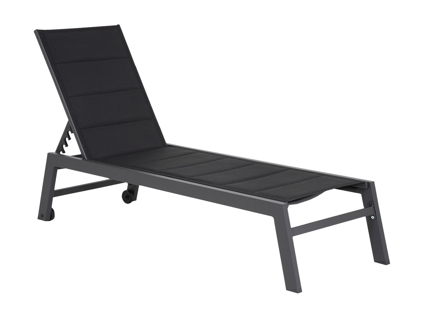 Lot de 2 bains de soleil BARBADOS en textilène noir - aluminium gris anthracite - HAPPY GARDEN