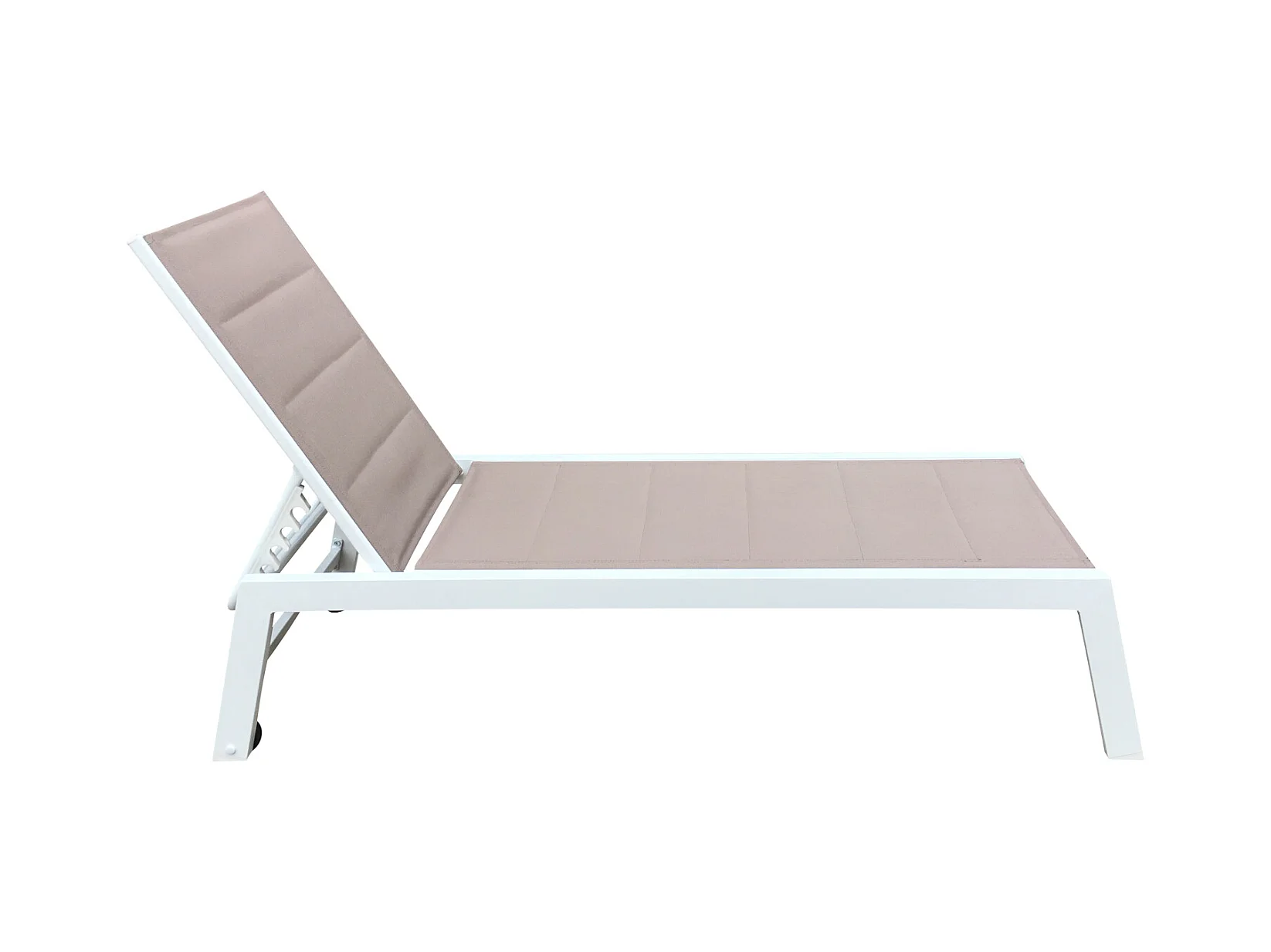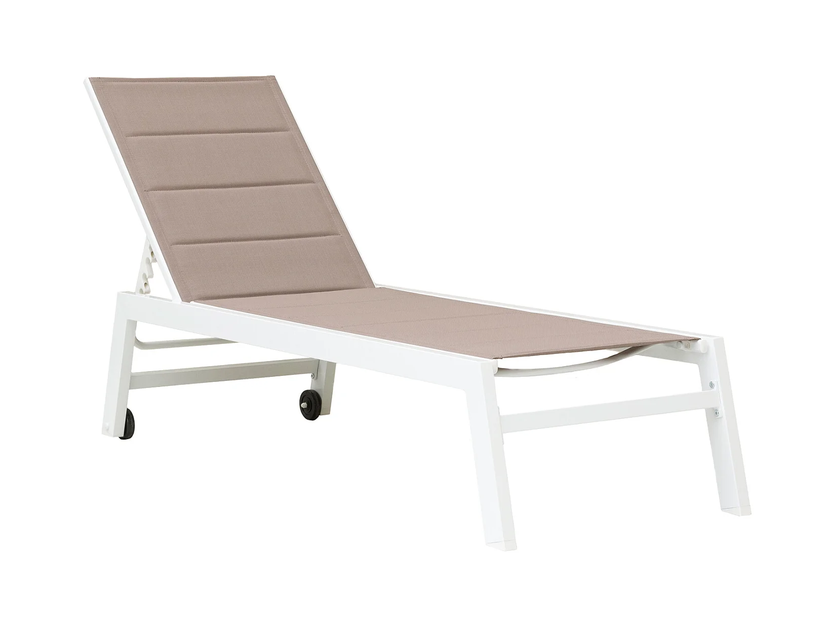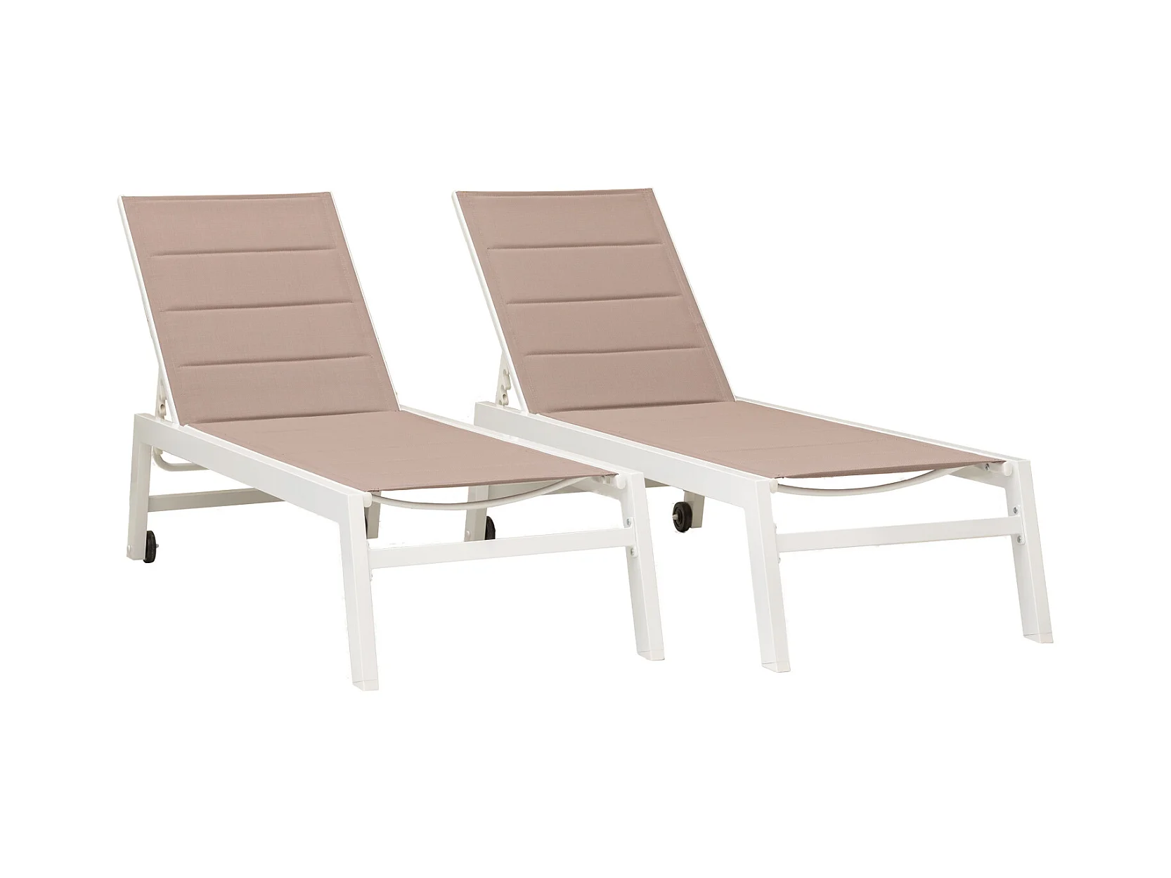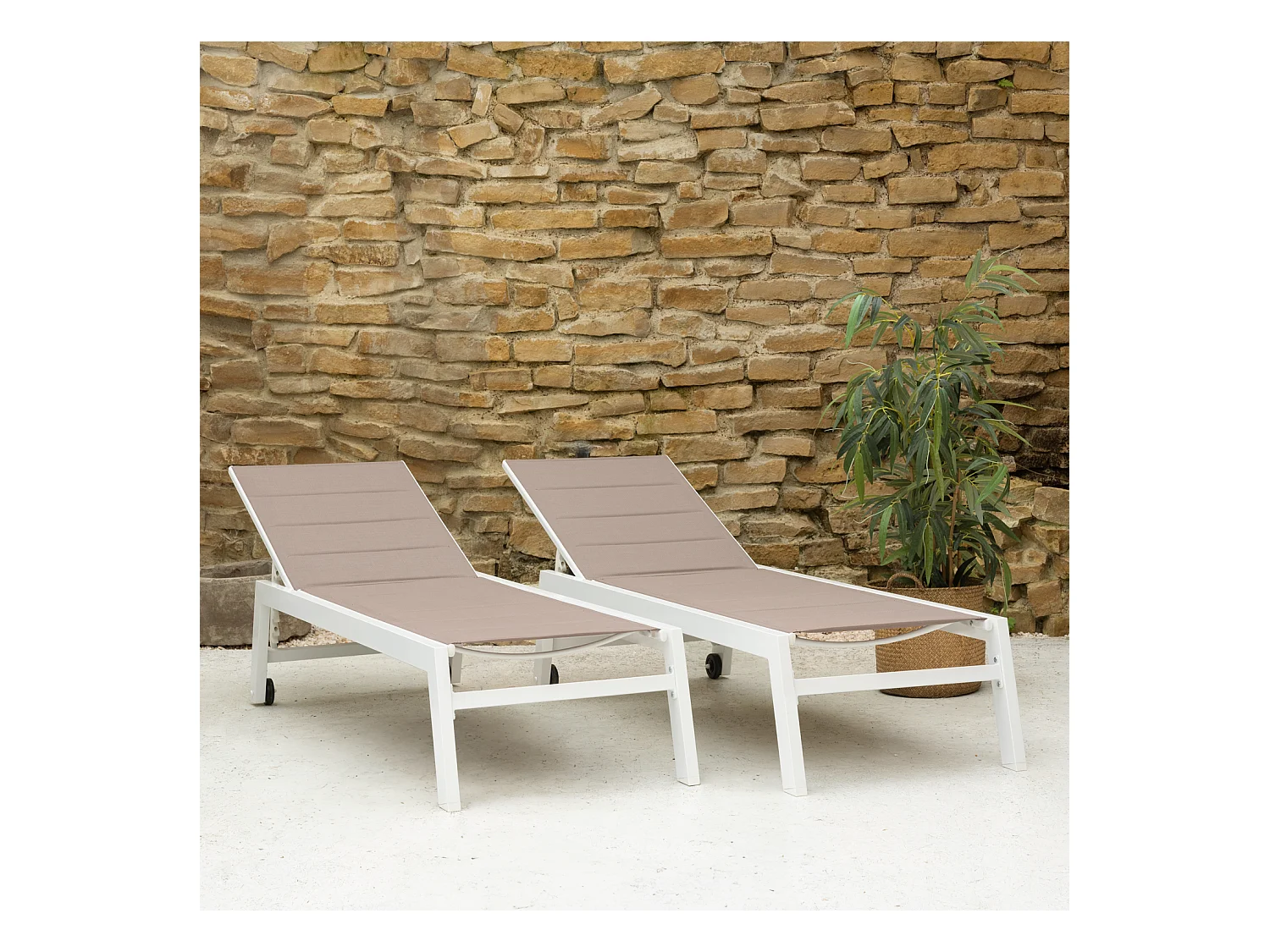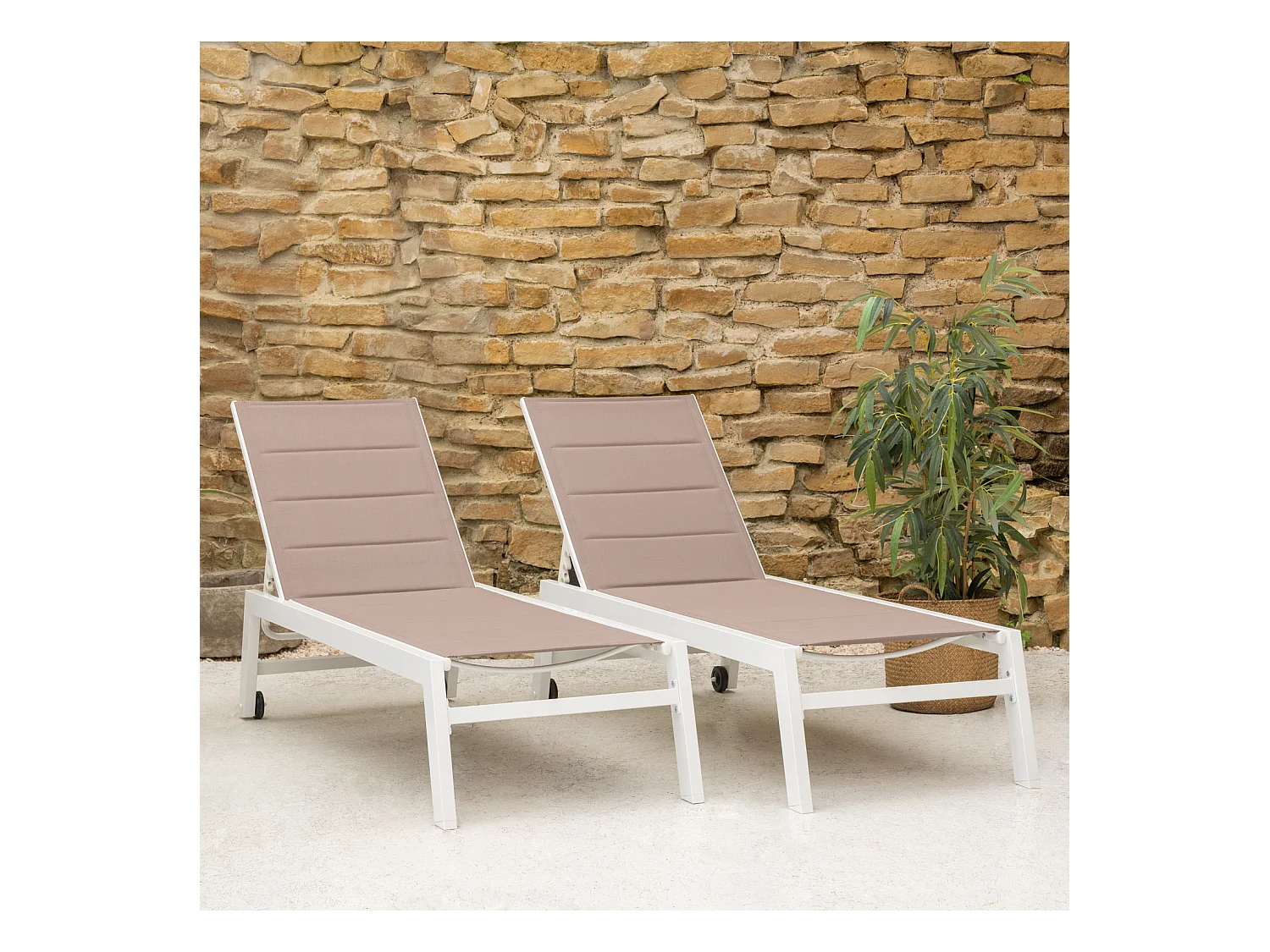 Lot de 2 bains de soleil BARBADOS en textilène taupe - aluminium blanc - HAPPY GARDEN