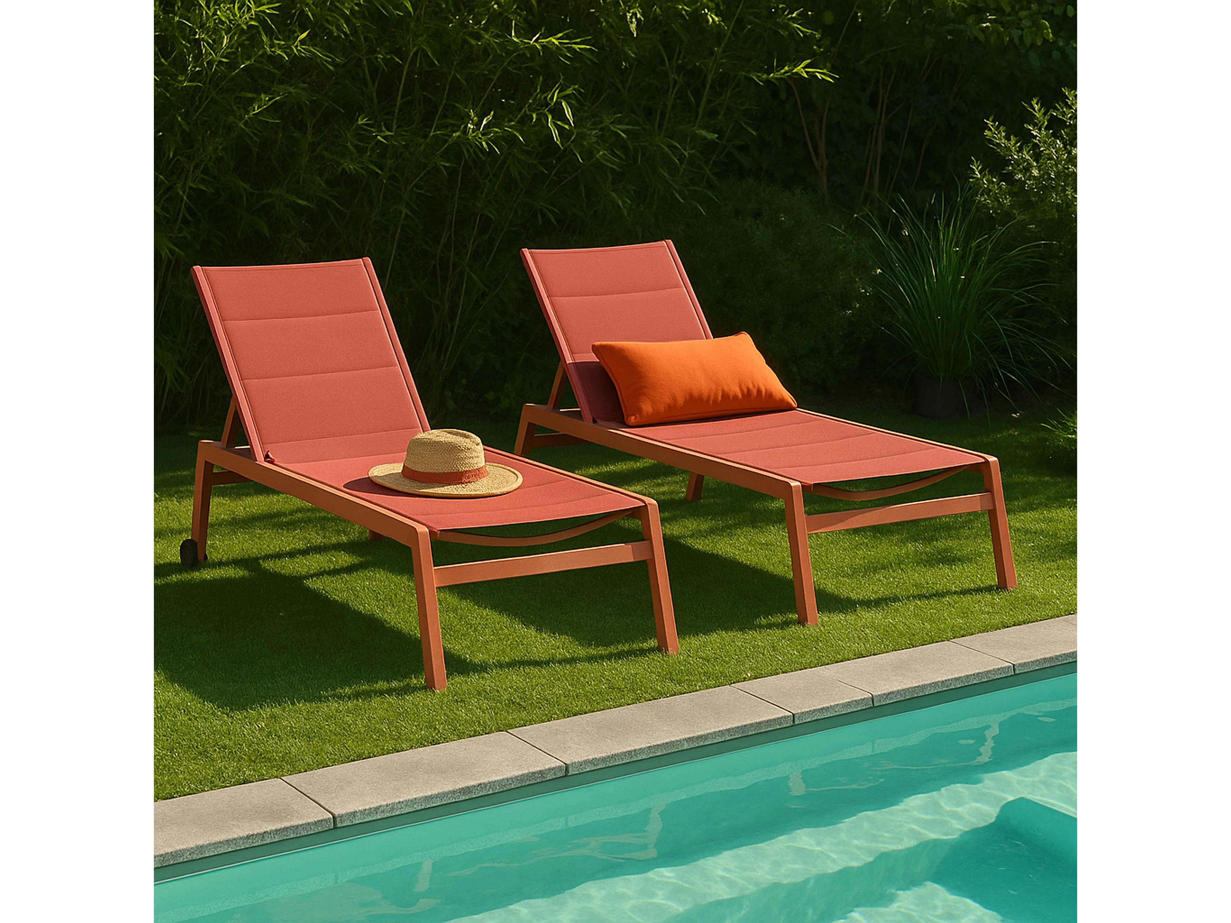 Lot de 2 bains de soleil en aluminium et textilène argile - Noumea