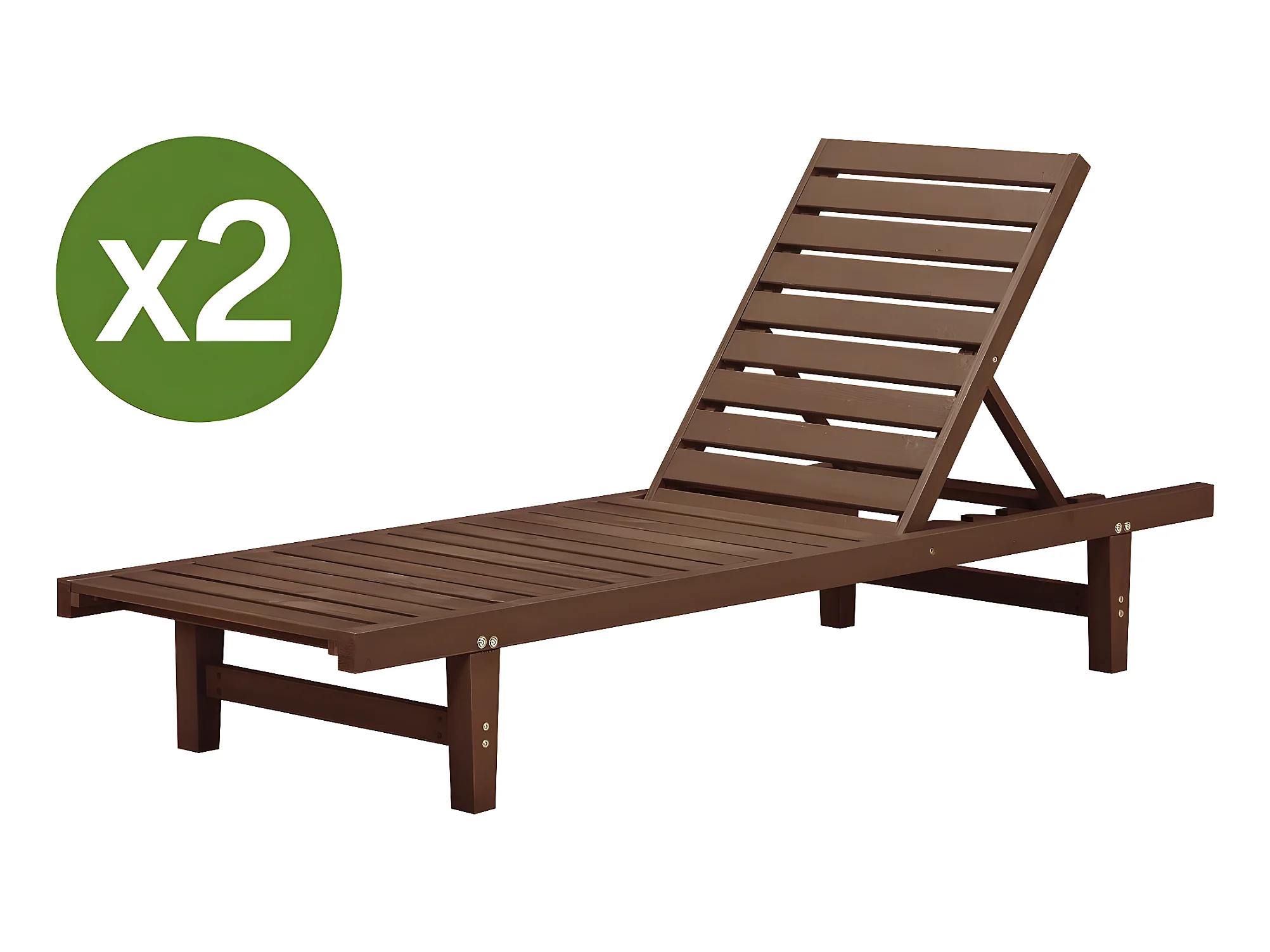 Lot de 2 bains de soleil en bois "Rawai" - Marron