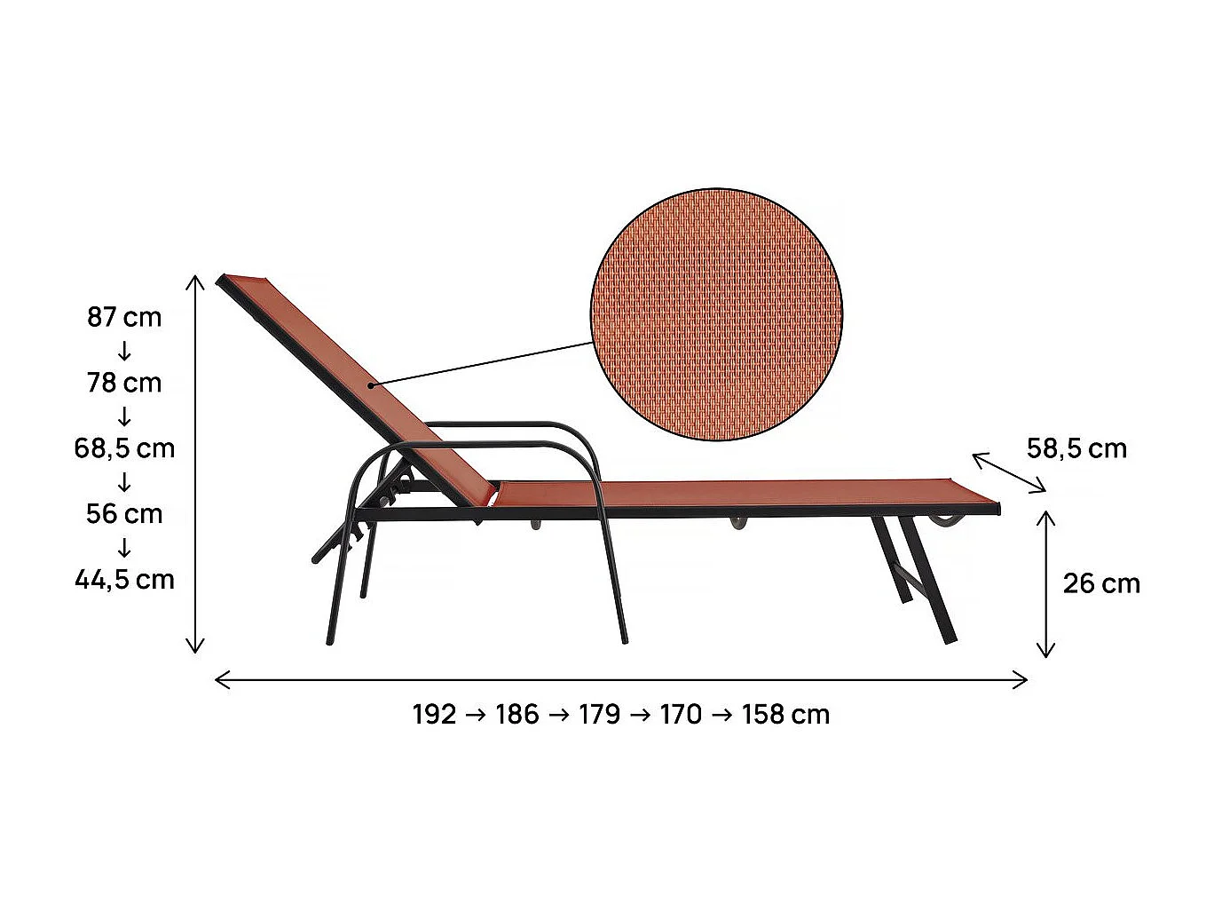 Lot de 2 bains de soleil en métal avec accoudoirs "Farniente"- Terracotta