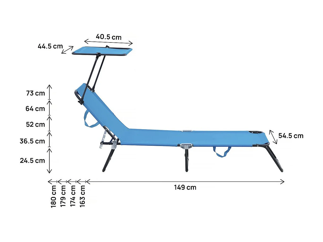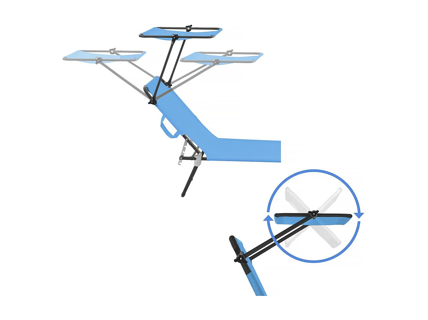Lot de 2 bains de soleil pliable "Lazy" - Avec pare soleil - Bleu