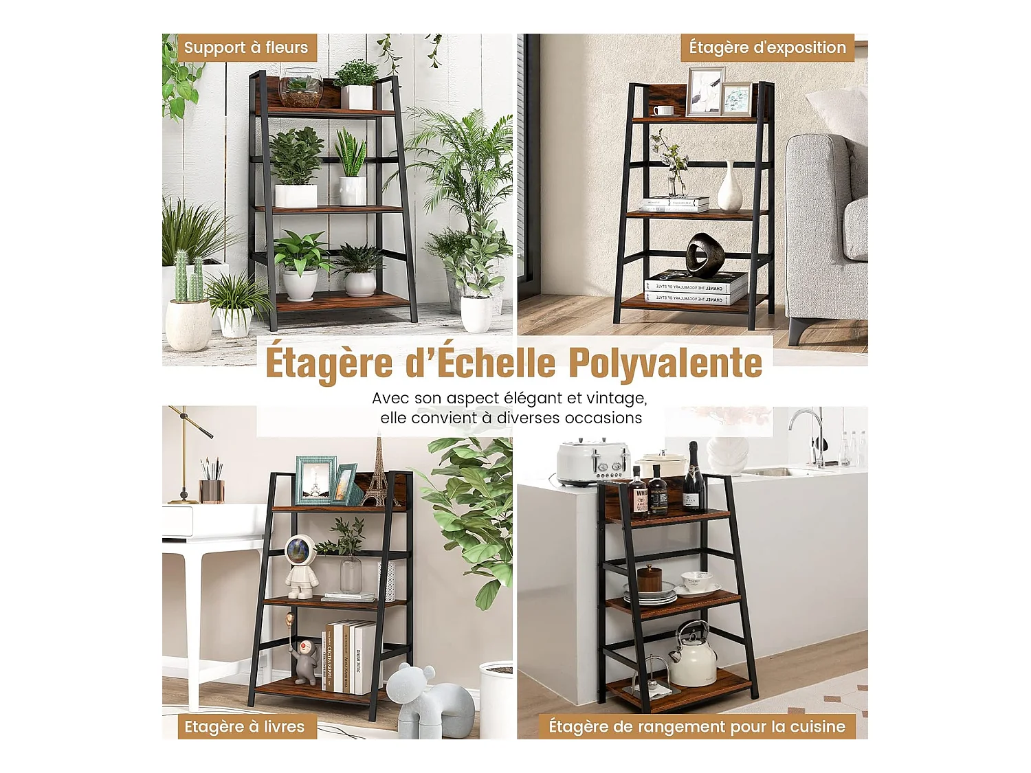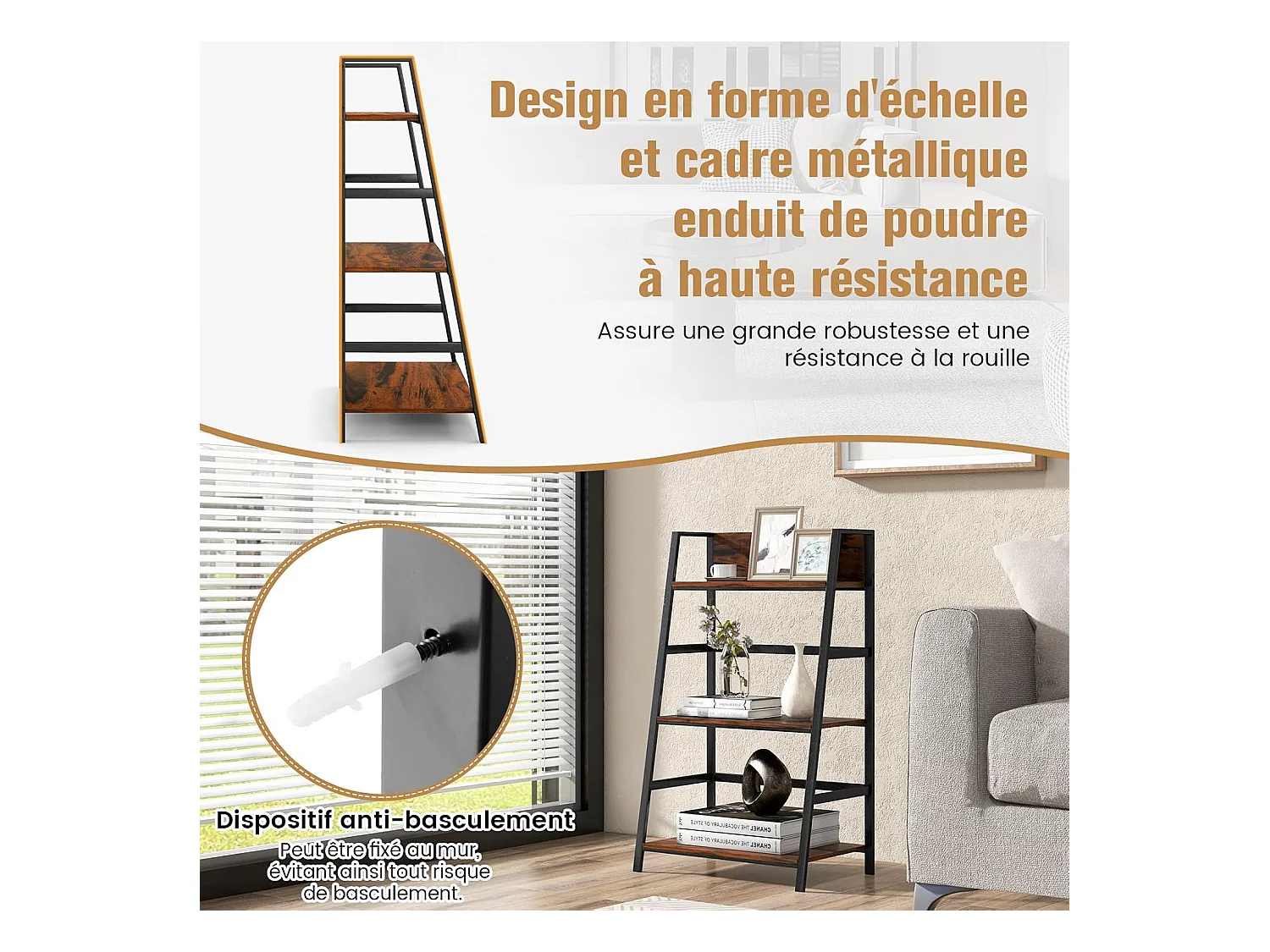 Lot de 2 bibliothèque industrielle à 3 niveaux 54x34x90cm, etagère en bois polyvalente