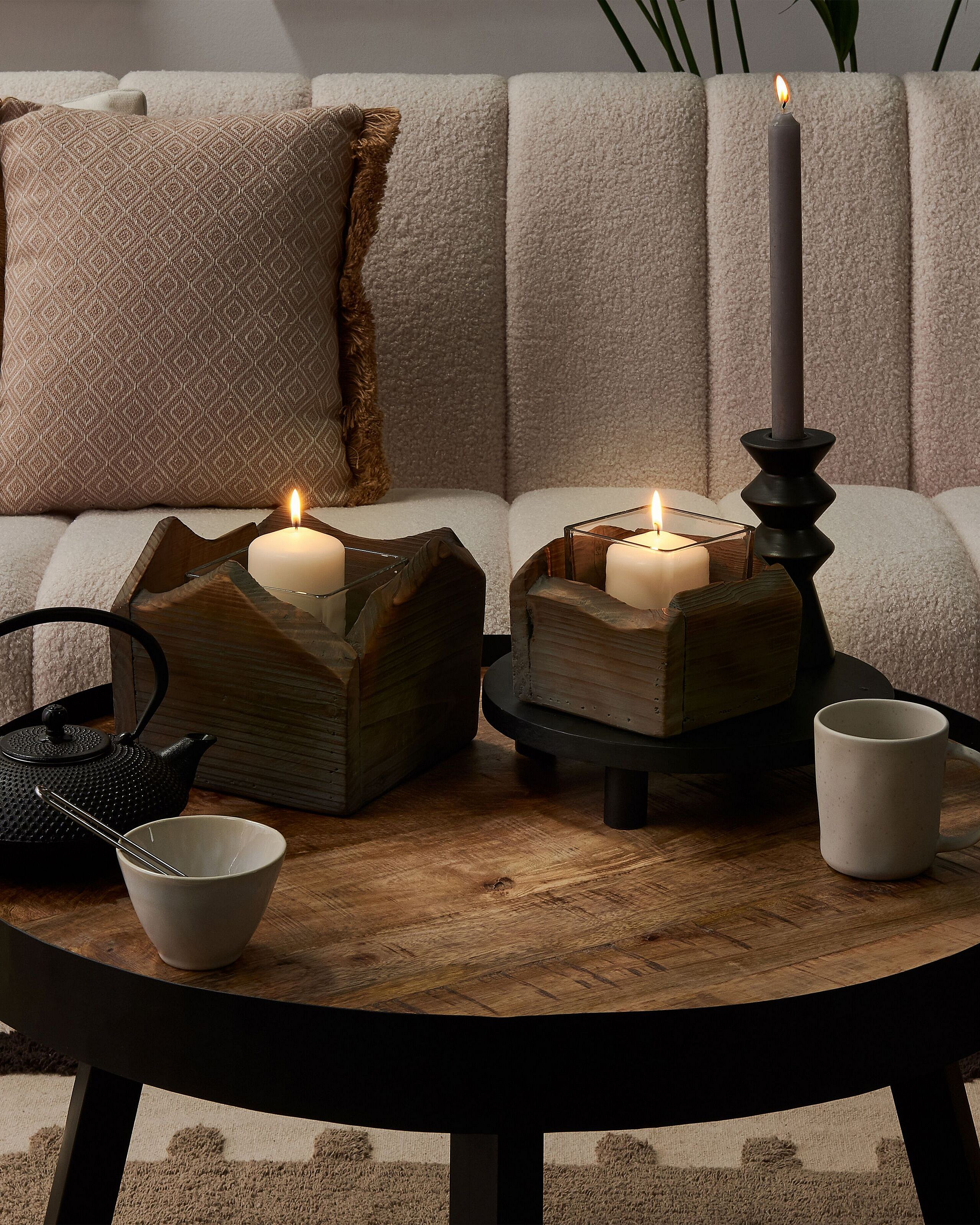 Lot de 2 bougeoirs PLATEROS Bois de sapin 15/12 cm Marron foncé
