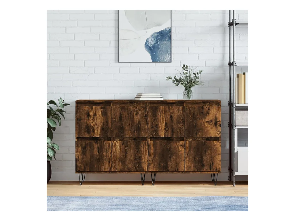 lot de 2 Buffets chêne fumé bois d'ingénierie QWE60413
