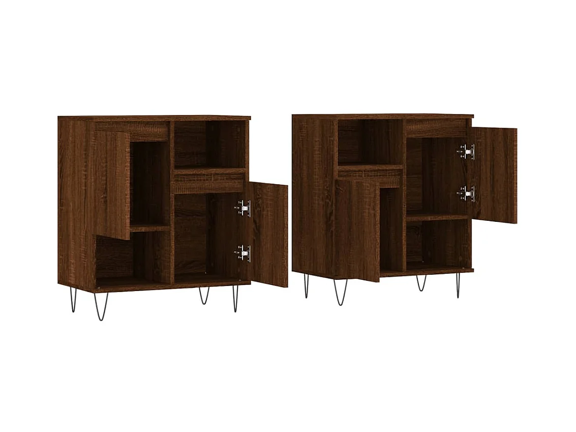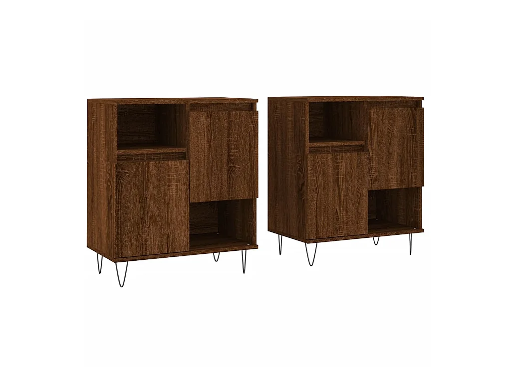 lot de 2 Buffets chêne marron bois d'ingénierie QWE26231