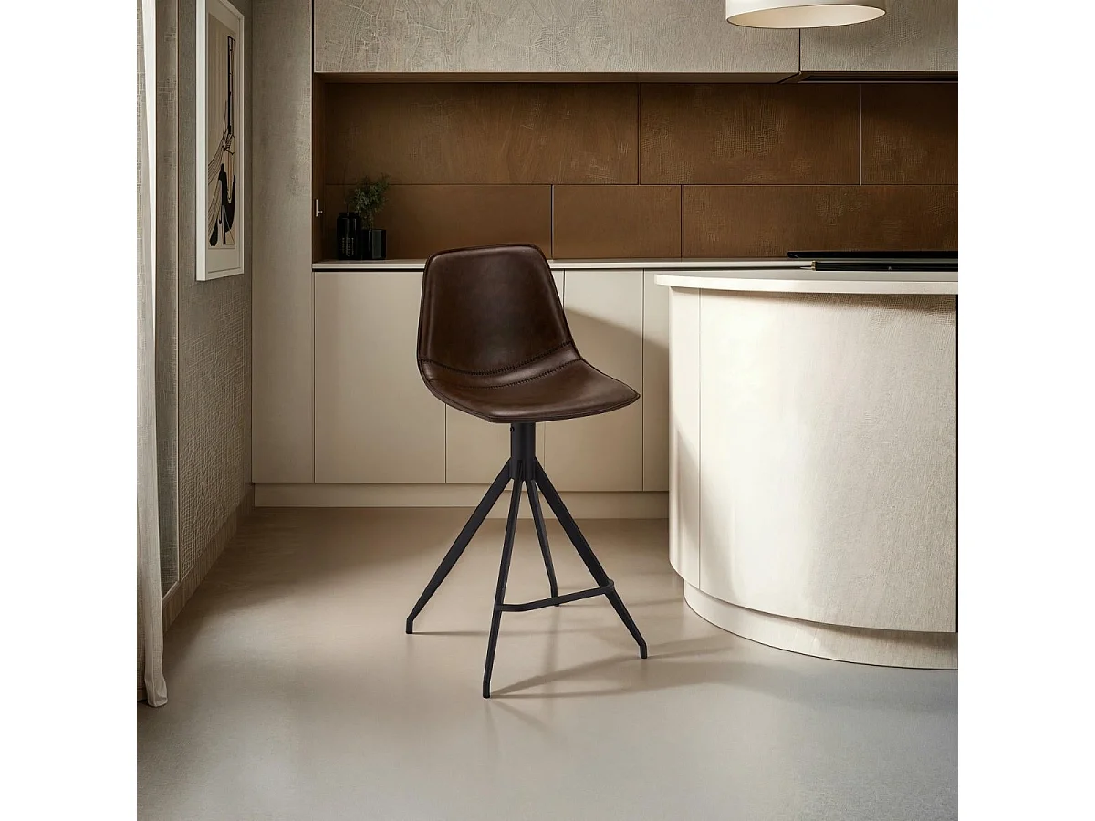 Lot de 2 tabourets de bar avec dossier et pivotant Isabel - Simili et métal - Marron
