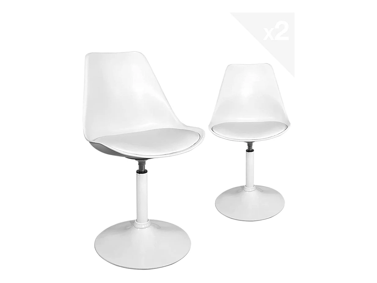 Lot 2 chaise pivotante rotative design rétro vintage coussin simili cuir intégré NOSA (Blanc)