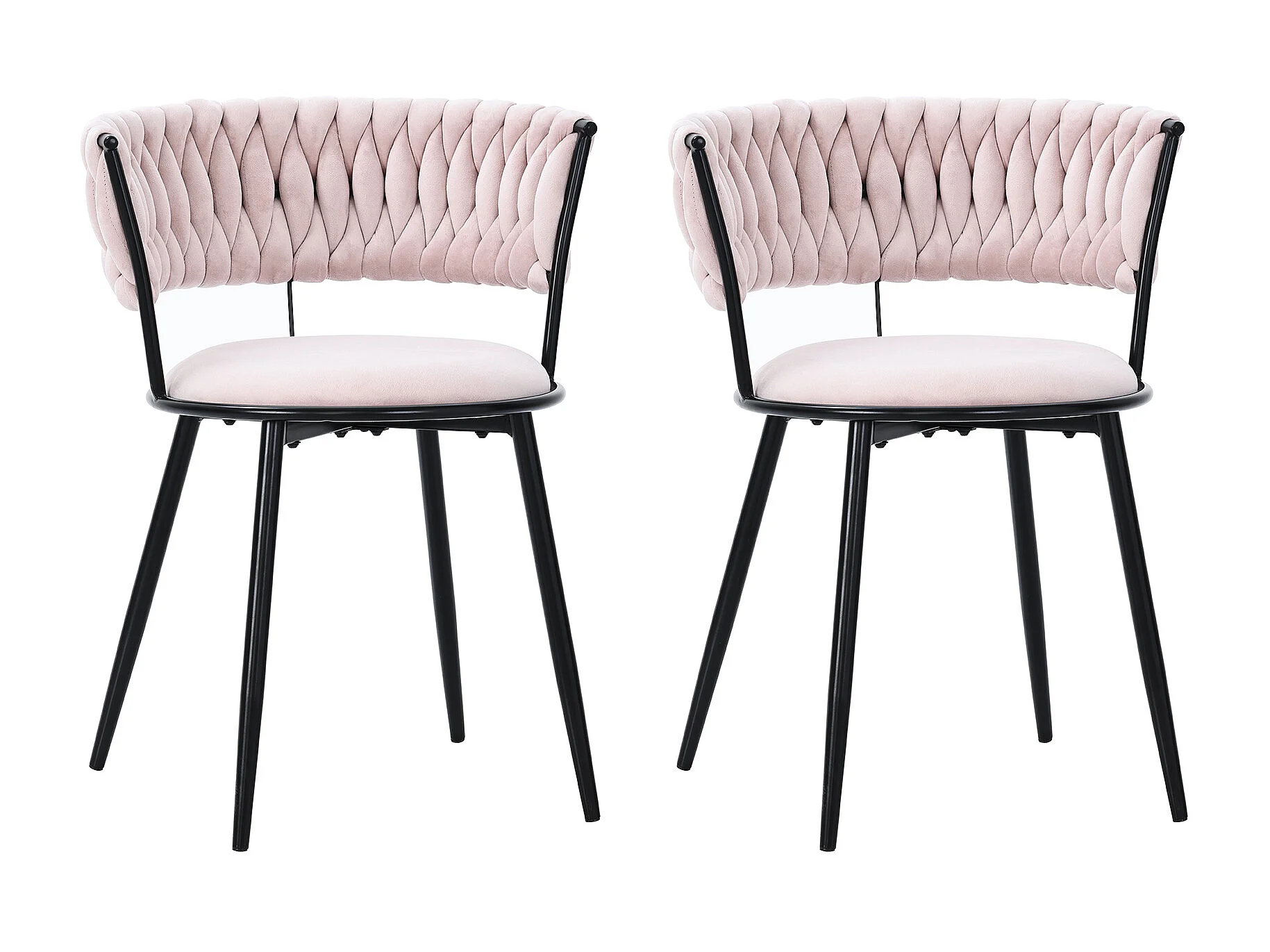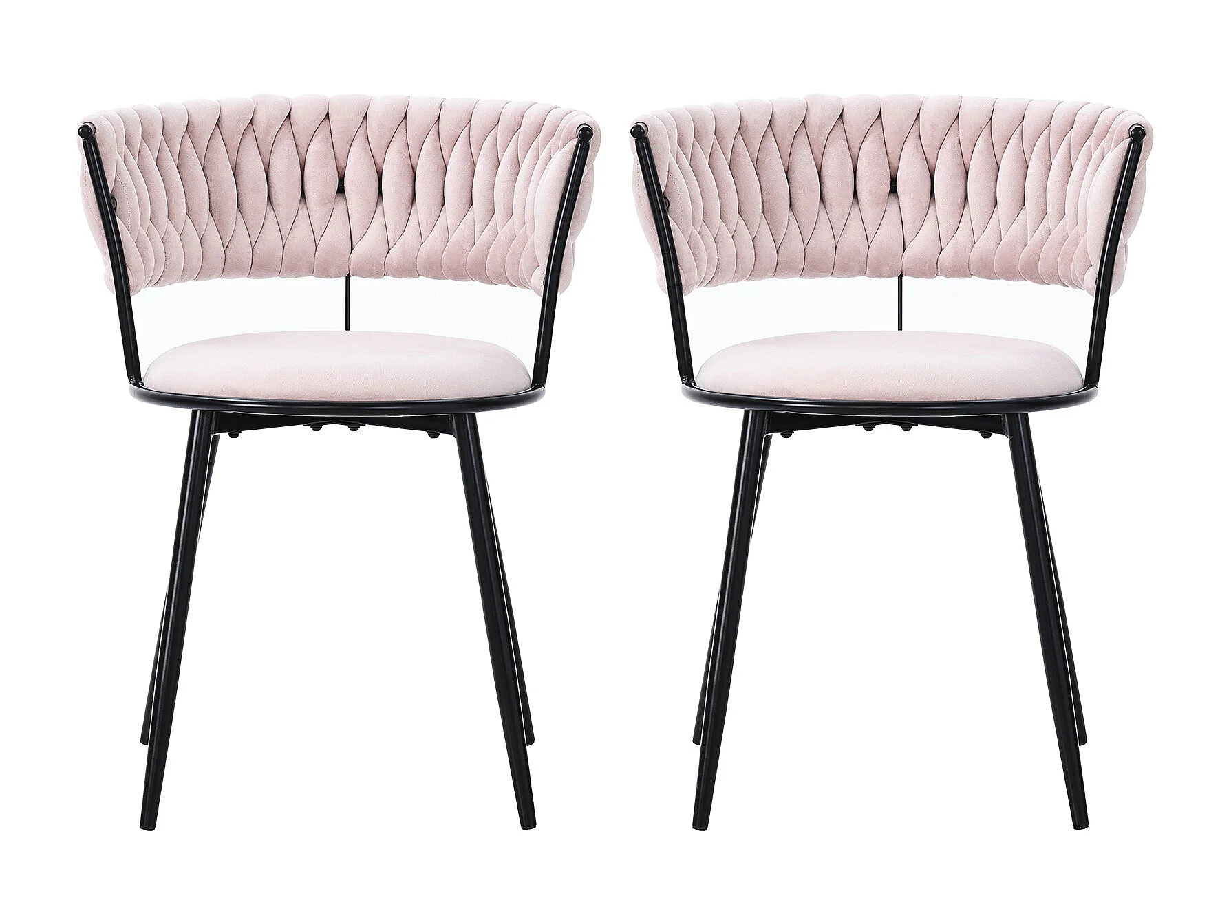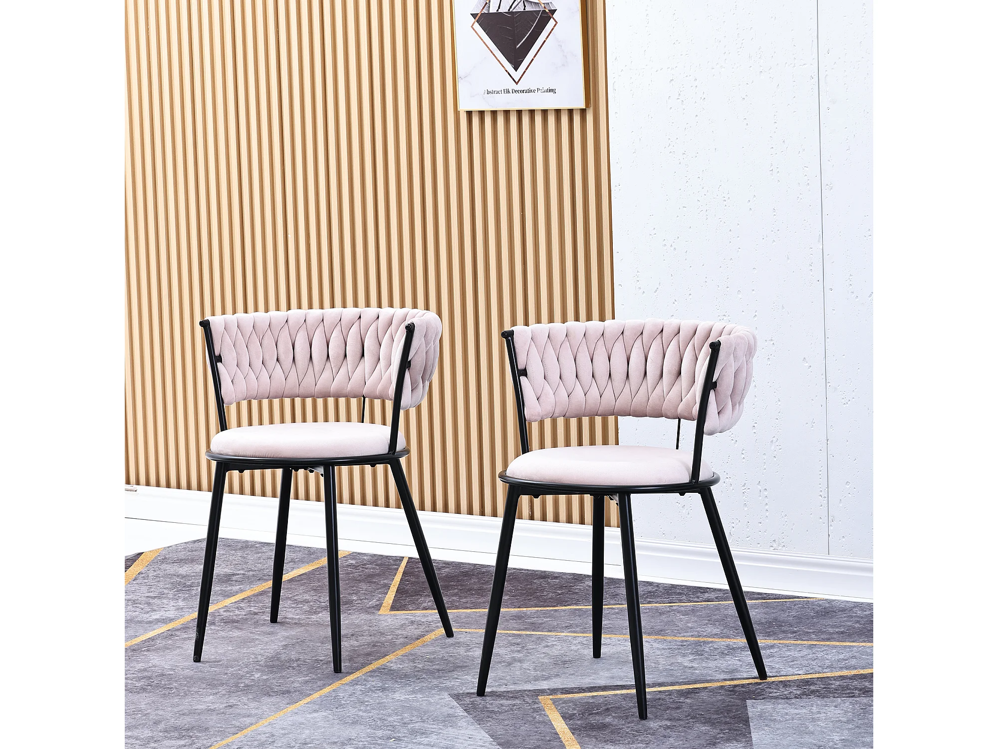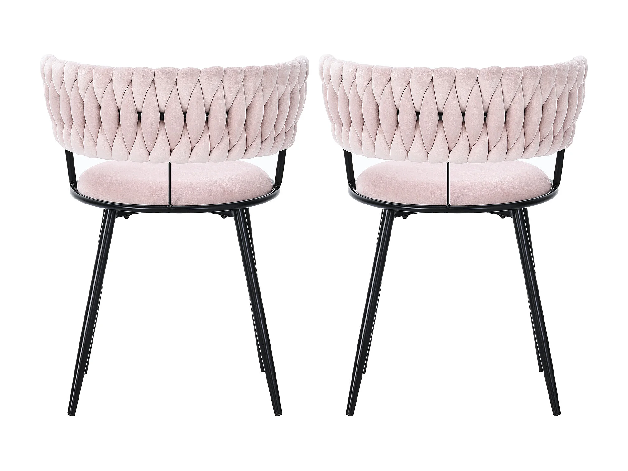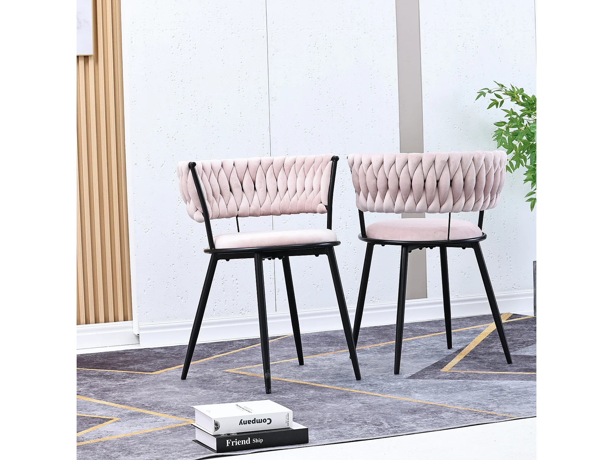 Lot de 2 Chaise de salle à manger, chaise de salon, rembourré en velours, avec accoudoirs, style scandinave, pour cuisine, rose