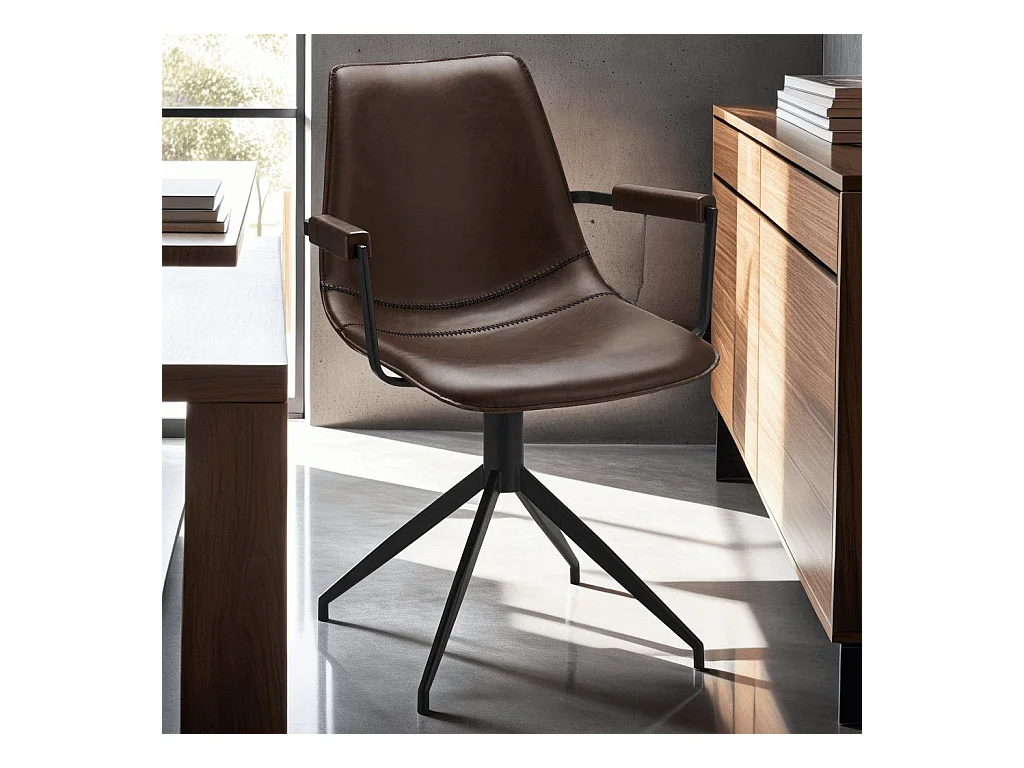 Lot de 2 chaises avec accoudoirs et pivotant Isabel - Simili et métal - Marron