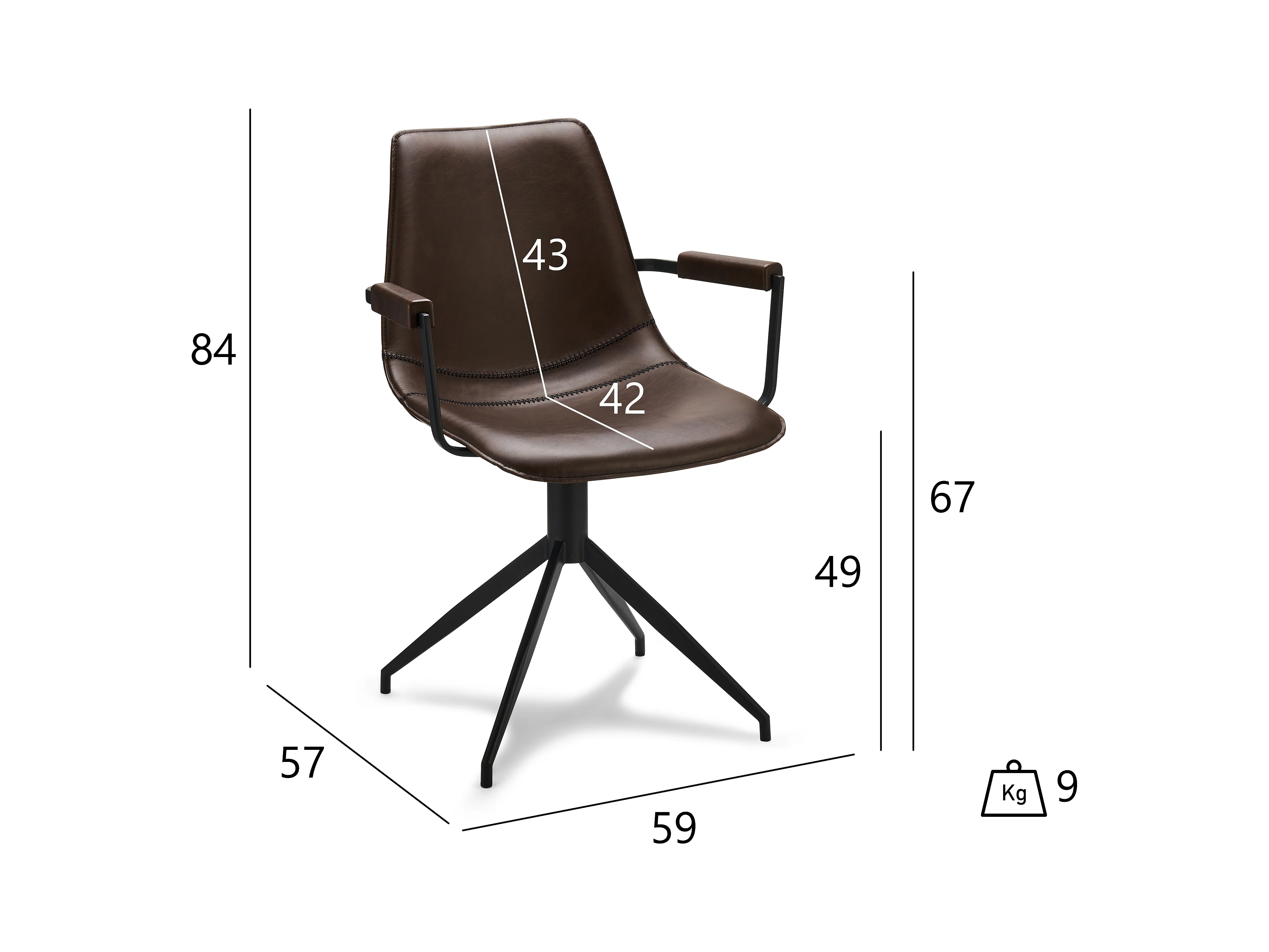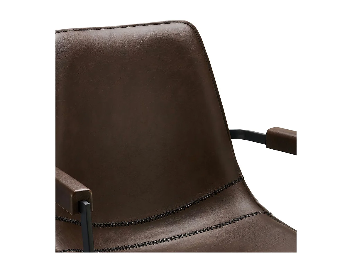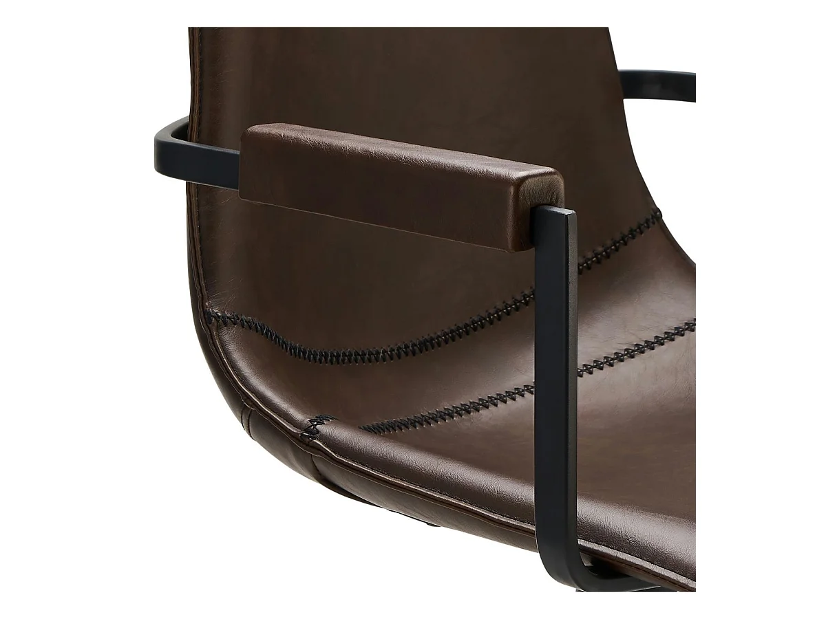 Chaise avec accoudoirs simili cuir marron et pieds métal noir Eoka - Lot de 2