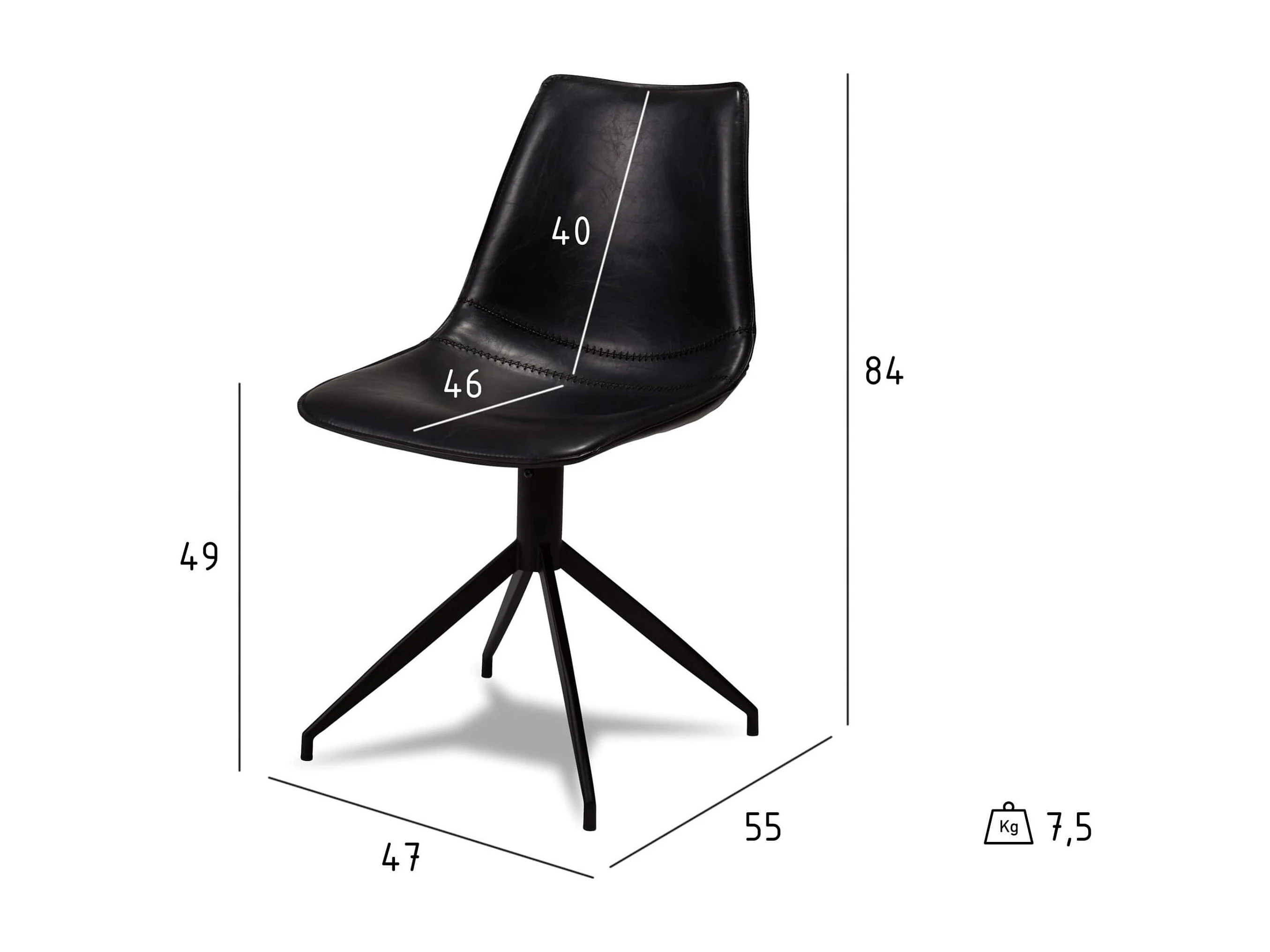 Lot de 2 chaises pivotant Isabel - Simili et métal - Noir
