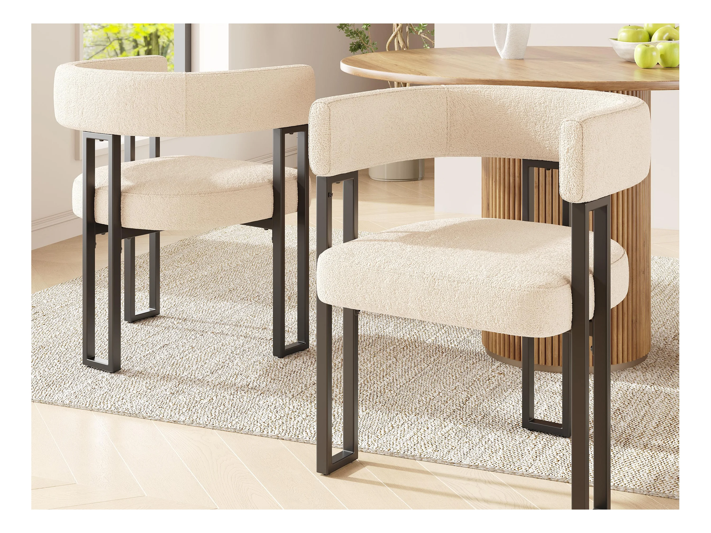 Lot de 2 Chaise de salle à manger rembourrées - en tissu en flanelle - structure en métal - beige
