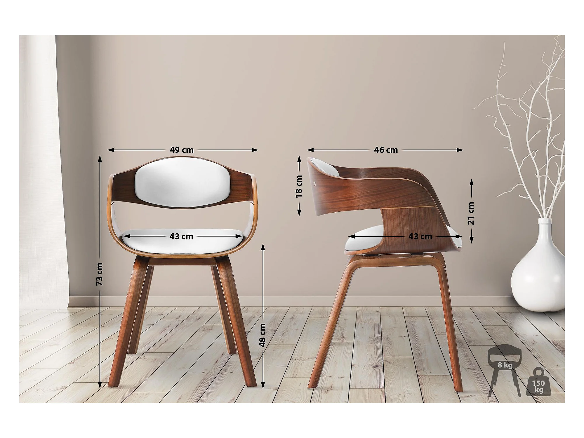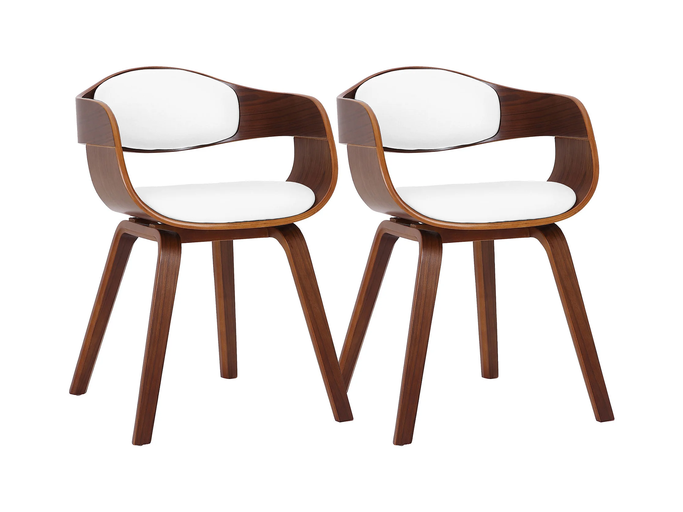 Lot de 2 chaises avec accoudoirs - Similicuir - Noyer / Blanc - Kingston