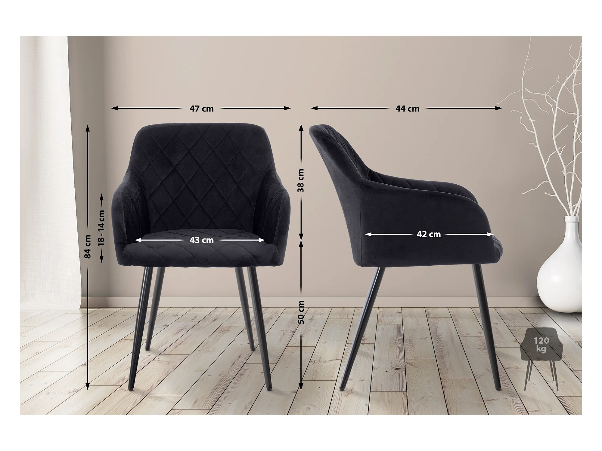 Lot de 2 chaises avec accoudoirs - Velours - Noir - Shila