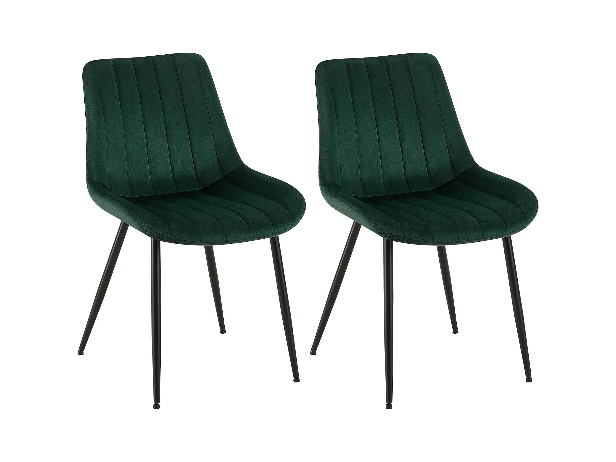 Lot de 2 chaises vert foncé Elvira sans accoudoirs en tissu et velours