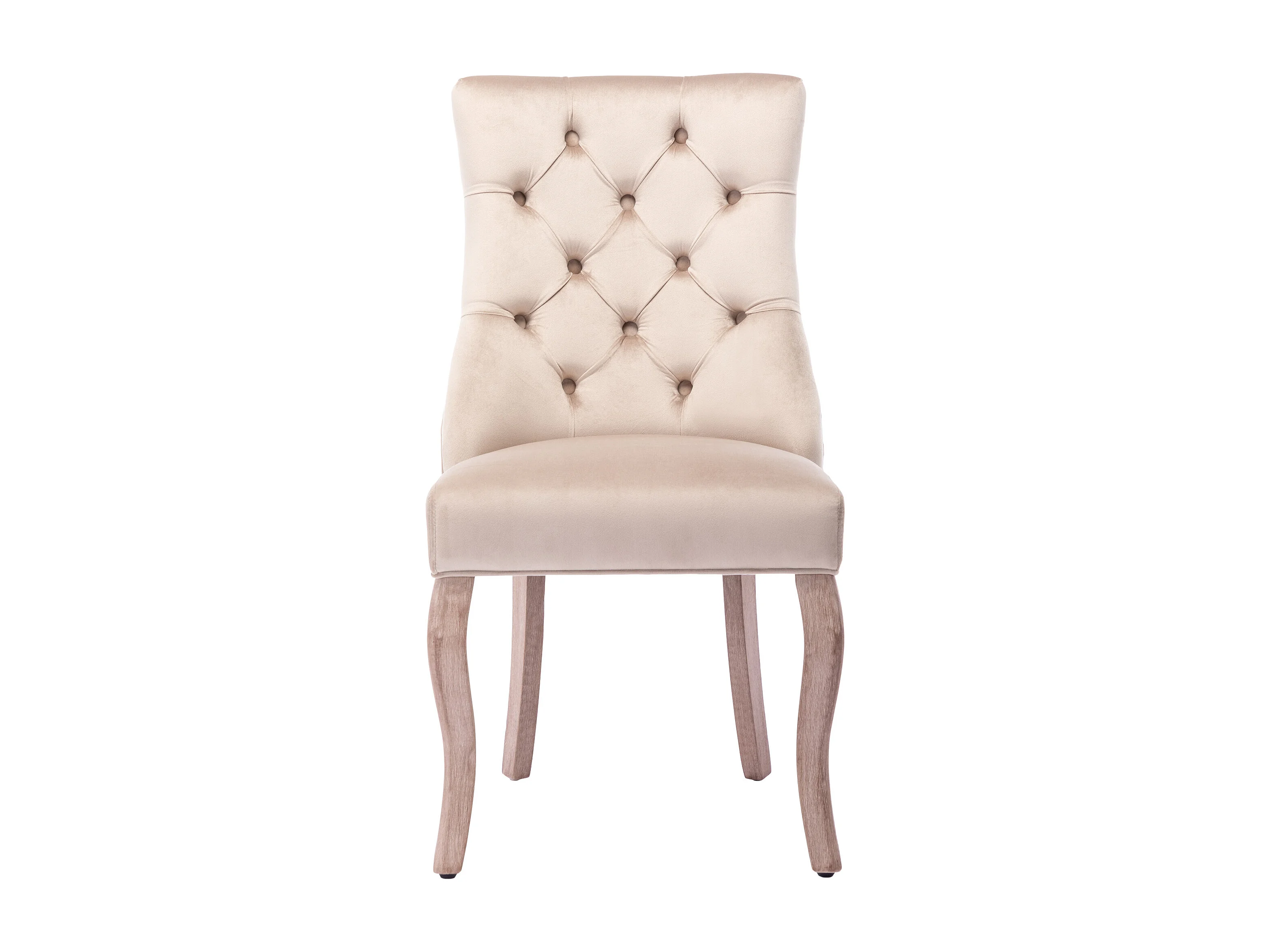 Lot de 2 chaises, dossier haut, capitonnage à boutons, pieds en bois, velours beige