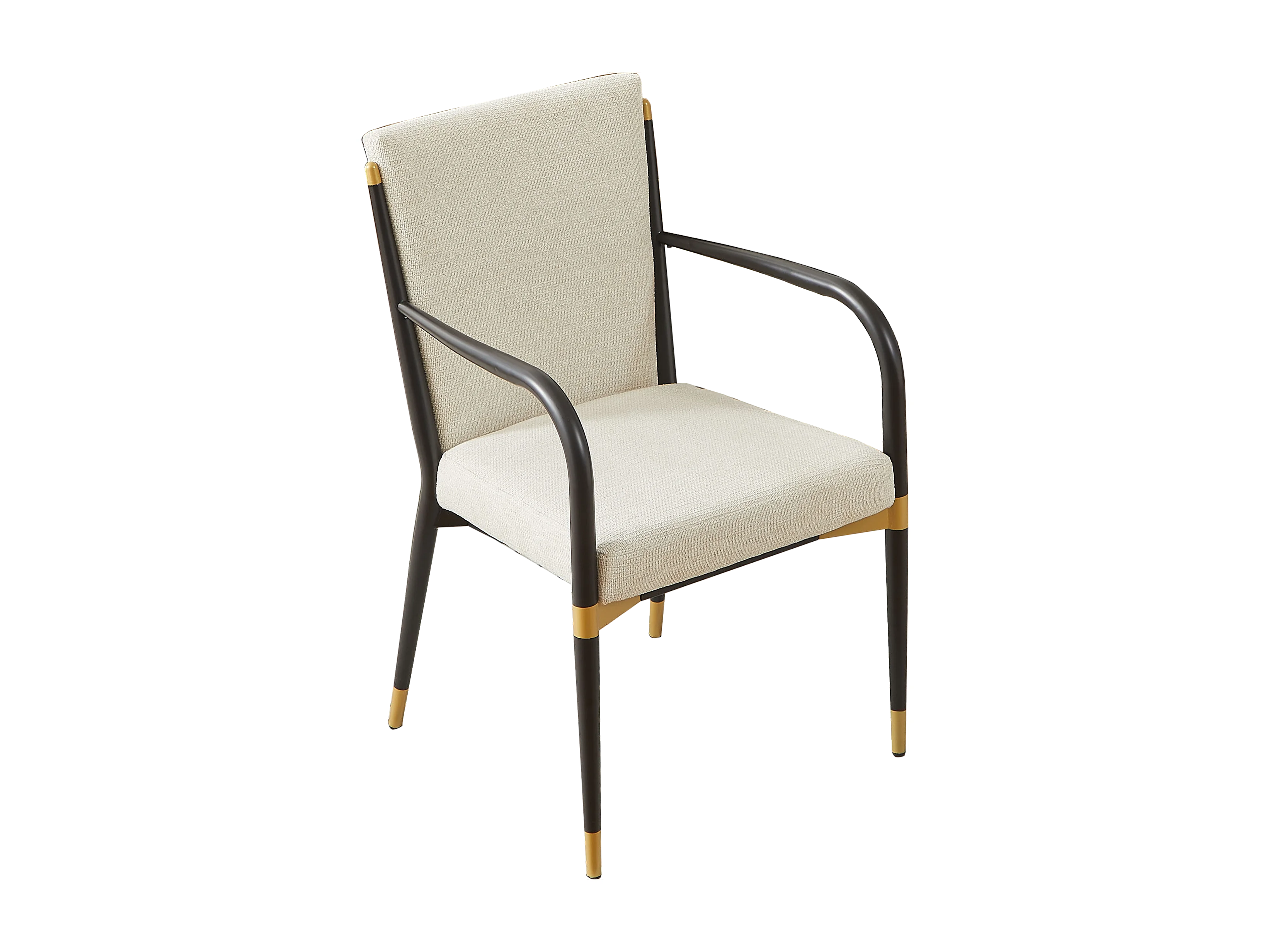 Lot de 2 chaises à accoudoirs - Cadre noir -Style scandinave - Tissu beige