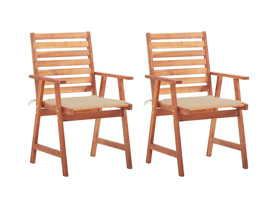 Lot de 2 Chaises à dîner de jardin avec coussins Acacia massif FR29962