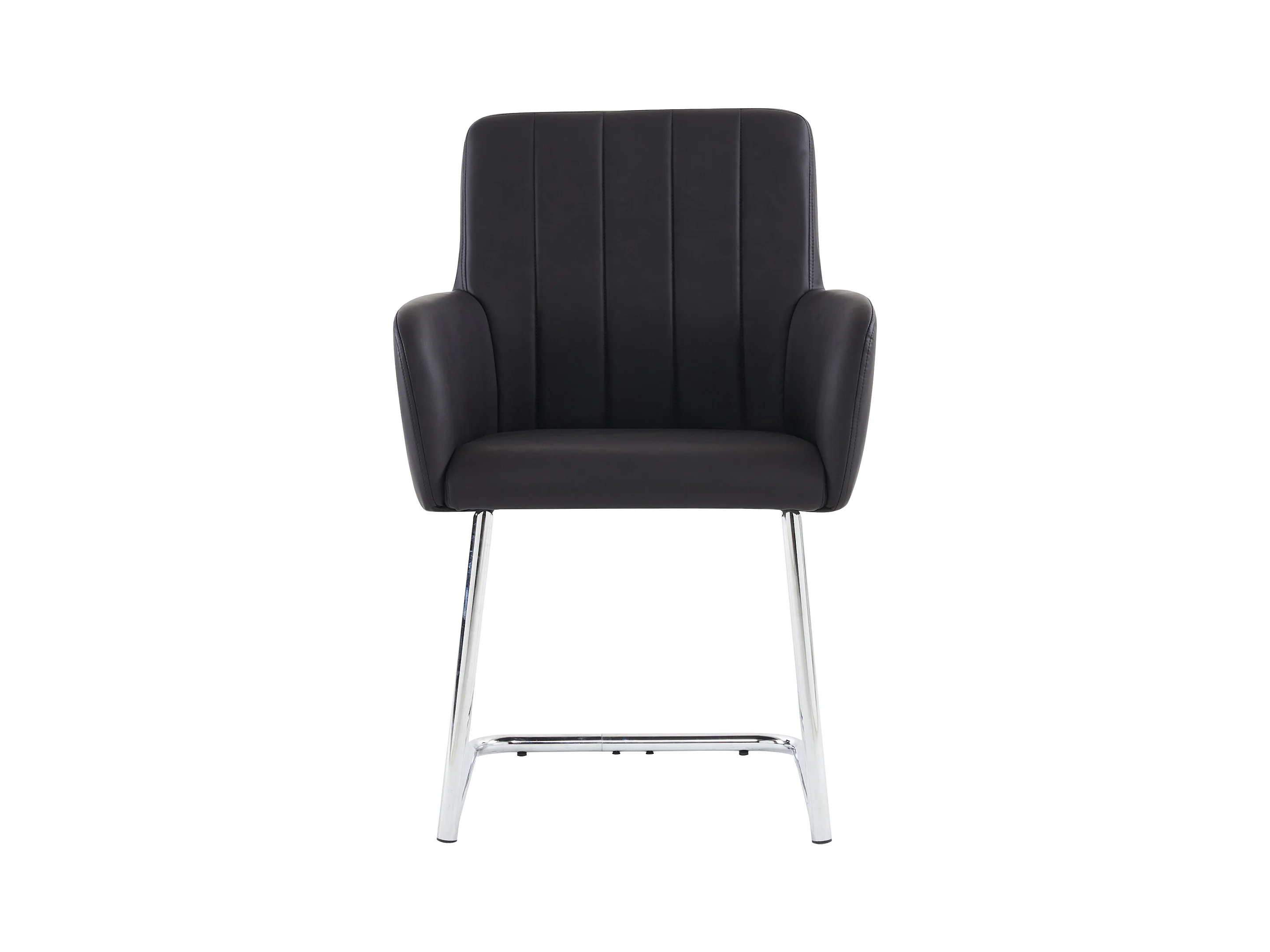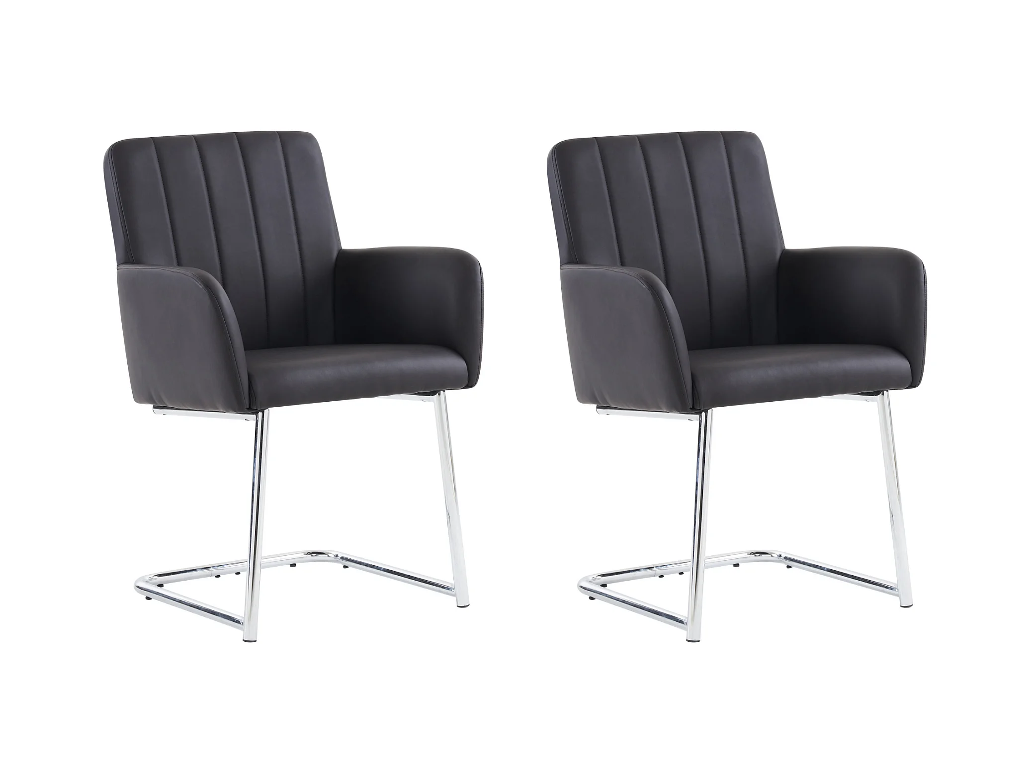 Lot de 2 chaises en similicuir avec accoudoirs et dossier - pieds en métal - noir