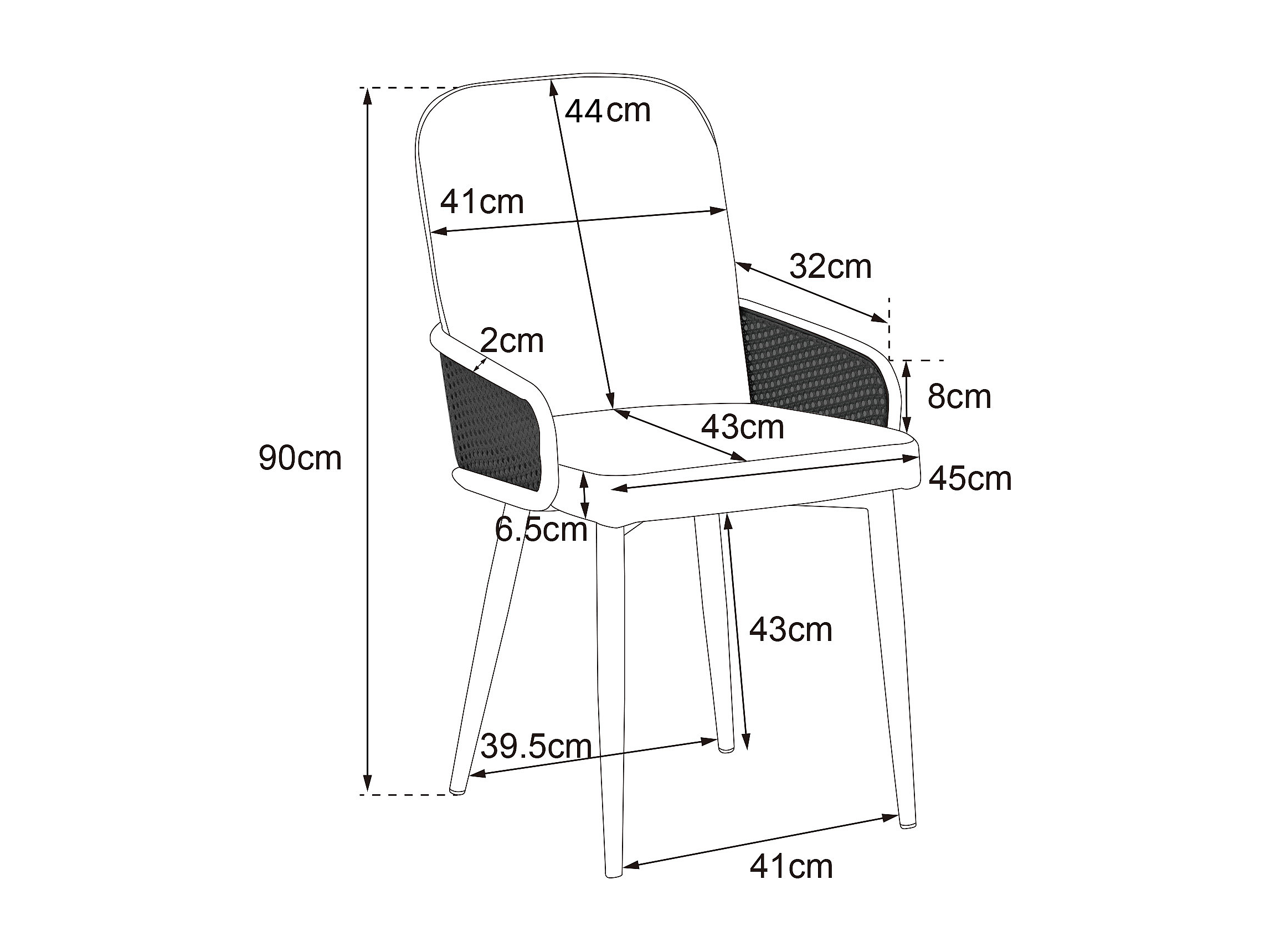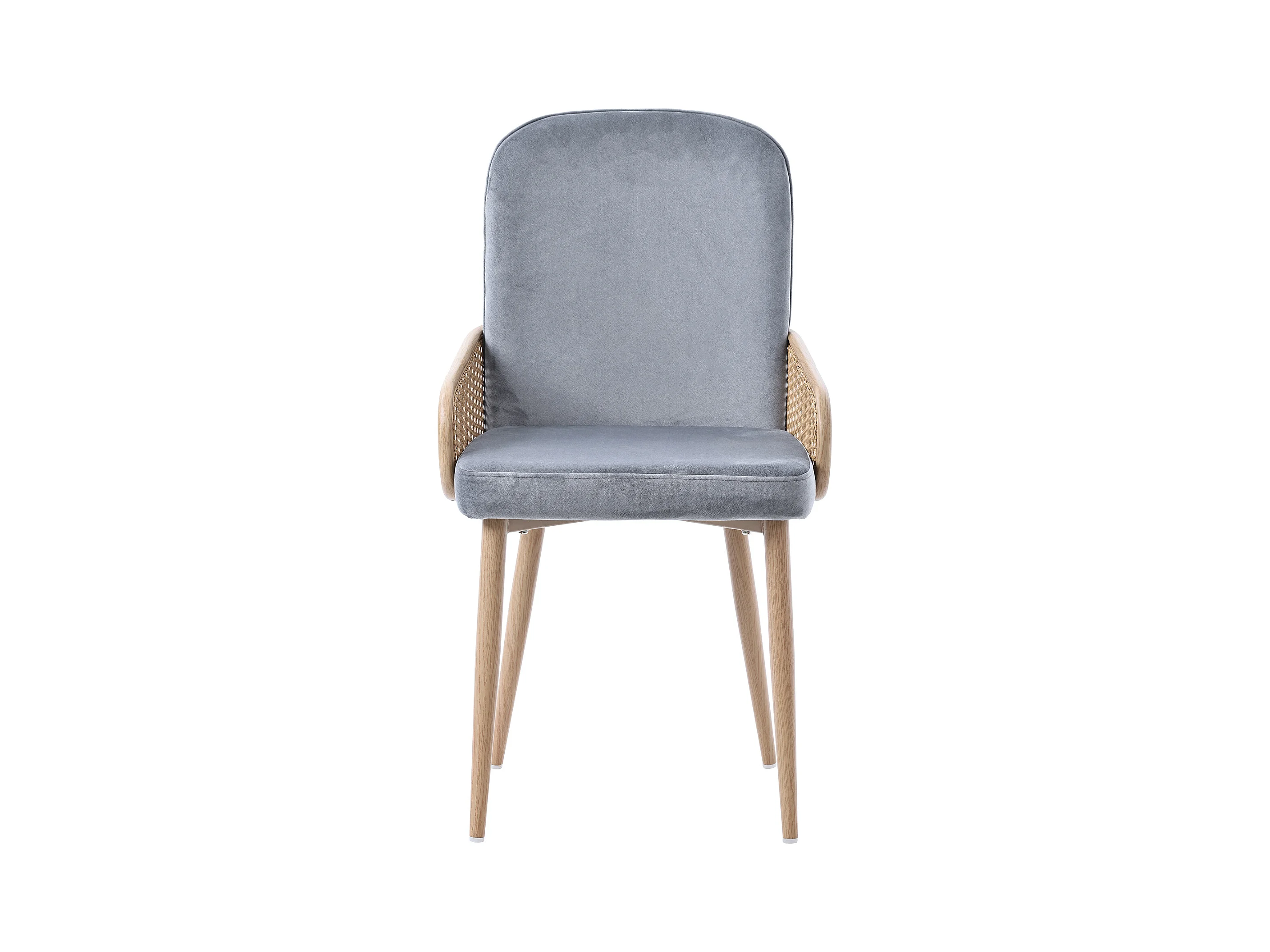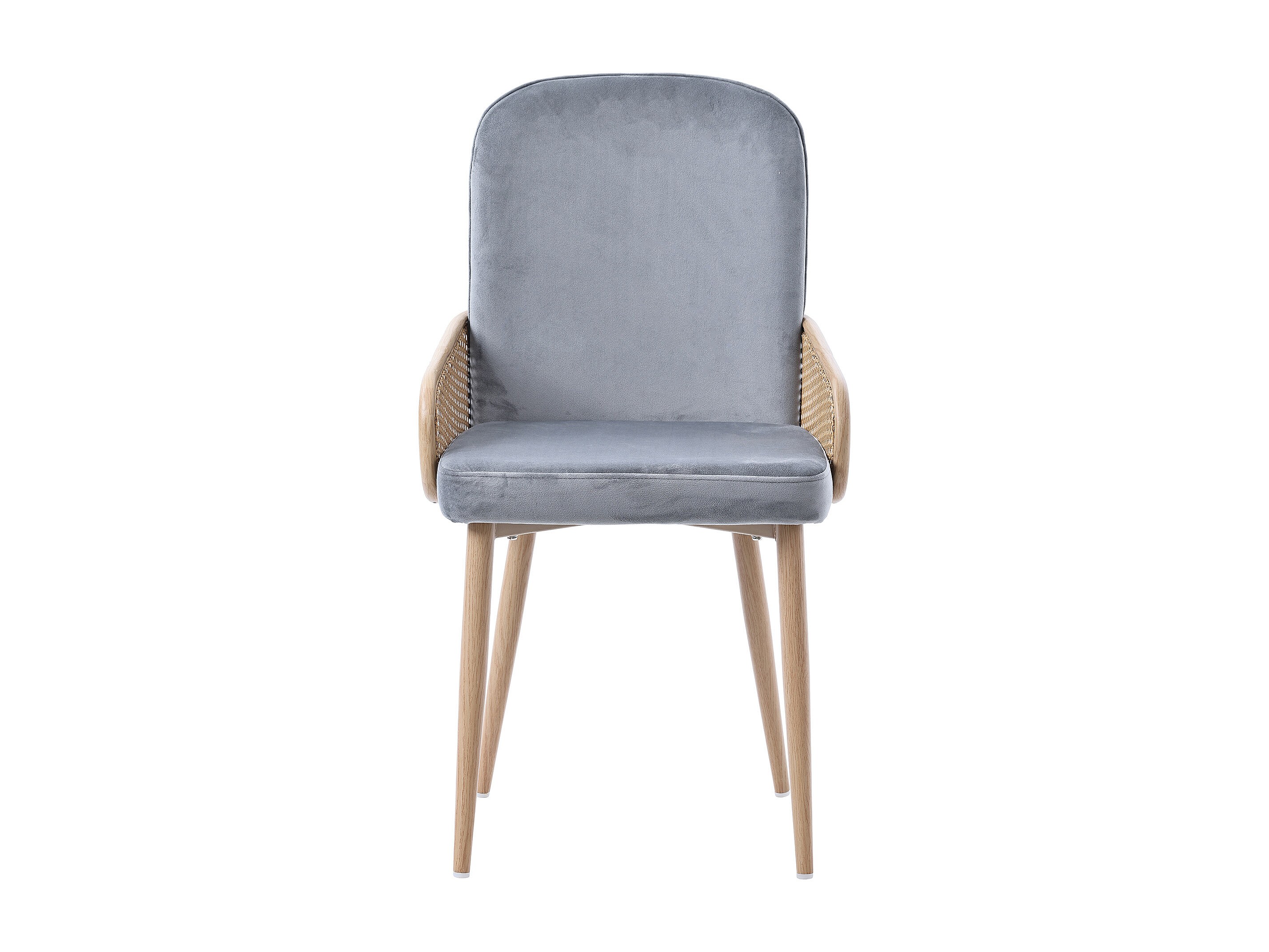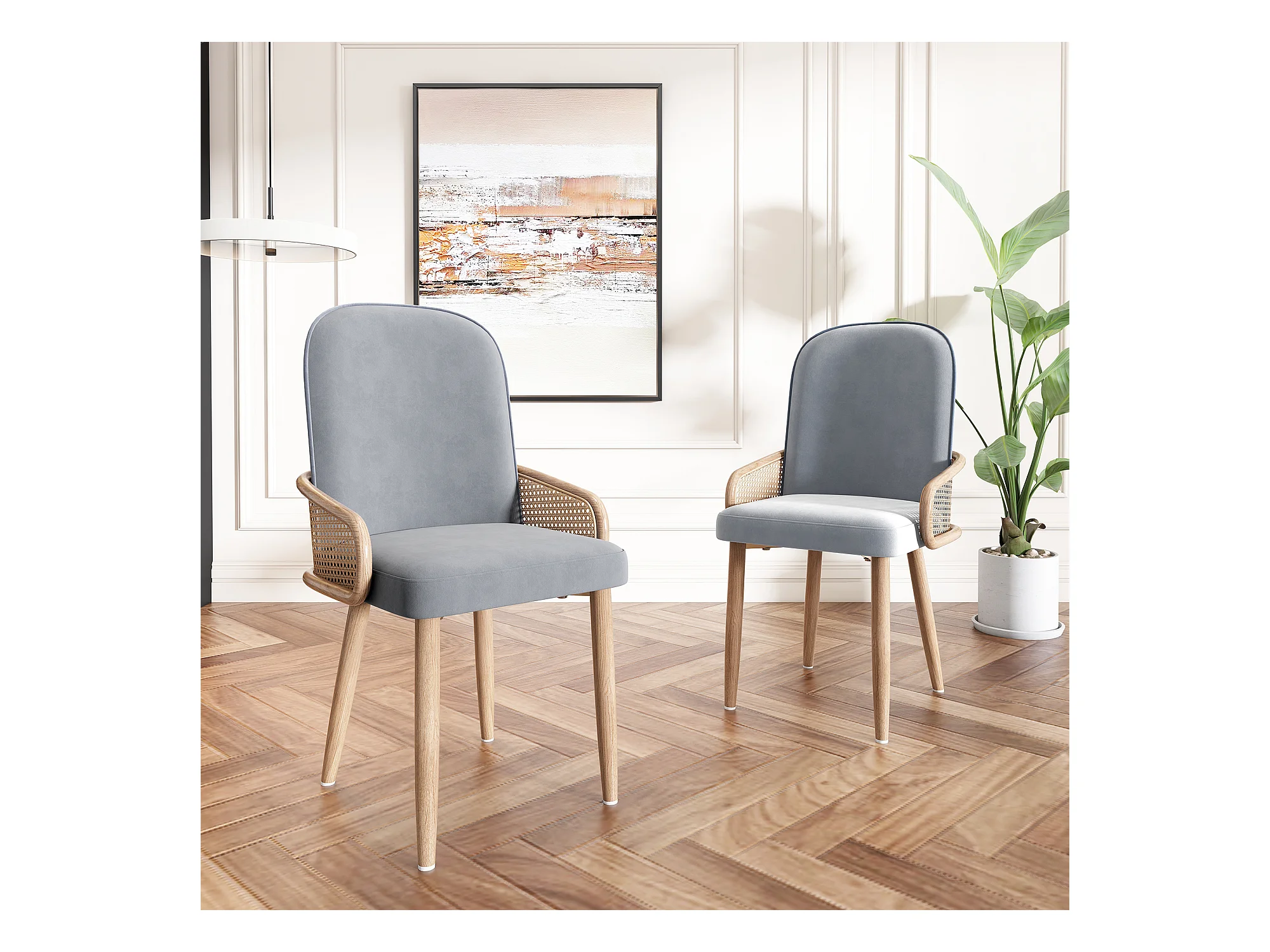 Lot de 2 chaises à manger en velours avec accoudoirs en rotin et dossier - pieds en métal - gris
