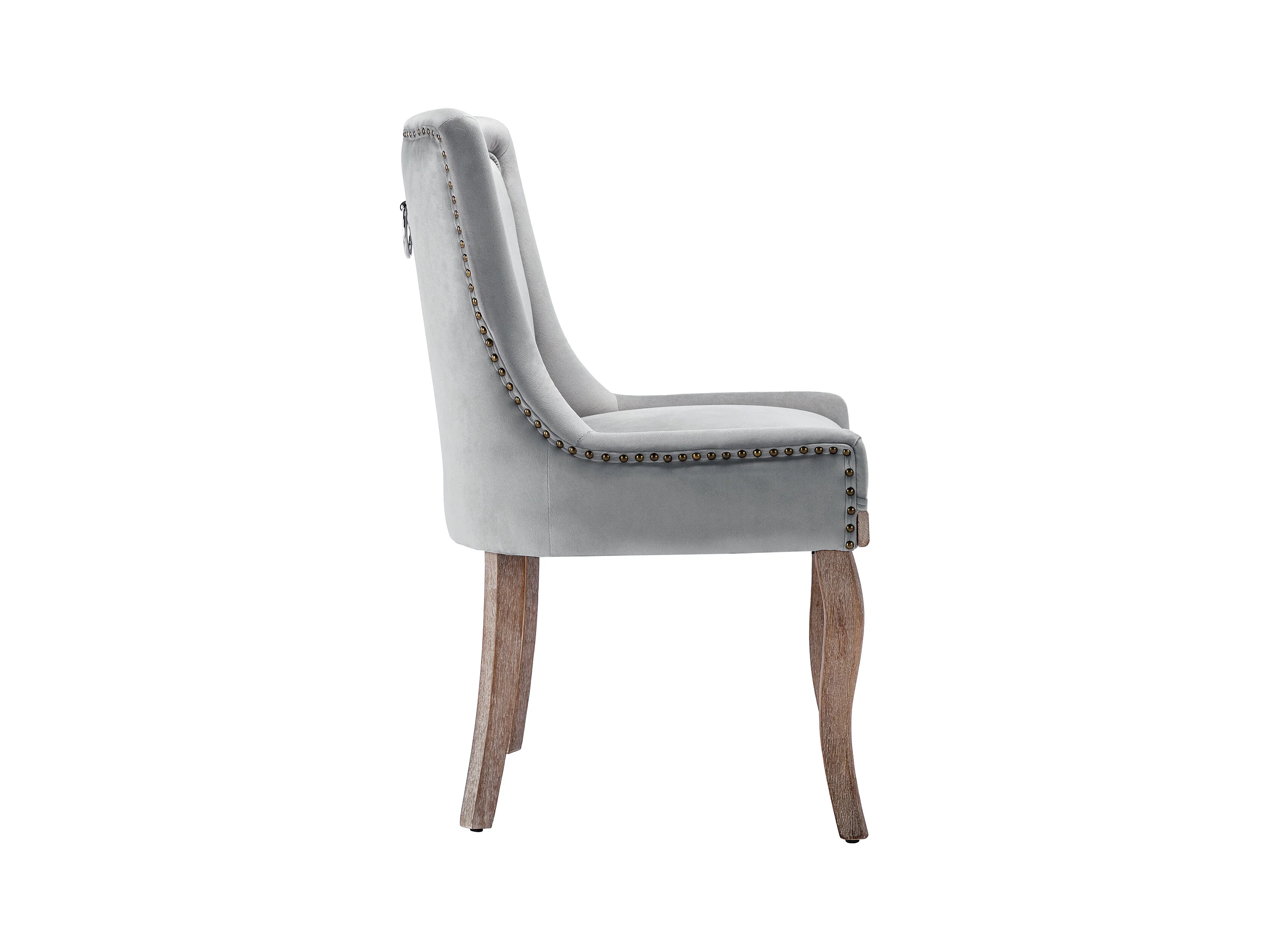 Lot de 2 chaises de salle à manger - Chaises de salle à manger avec dossier rembourré et clous bronze - gris