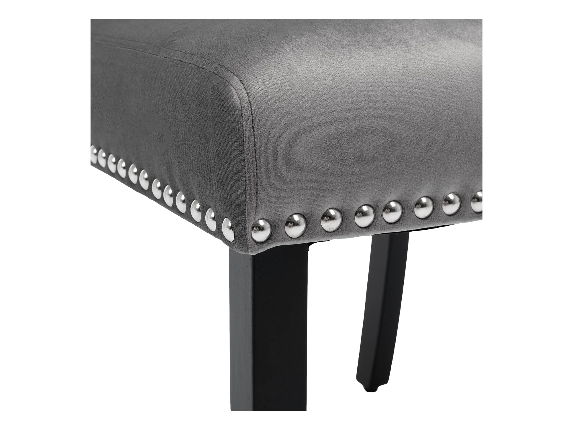Lot de 2 chaises en velours avec dossier - pieds en bois noir - gris