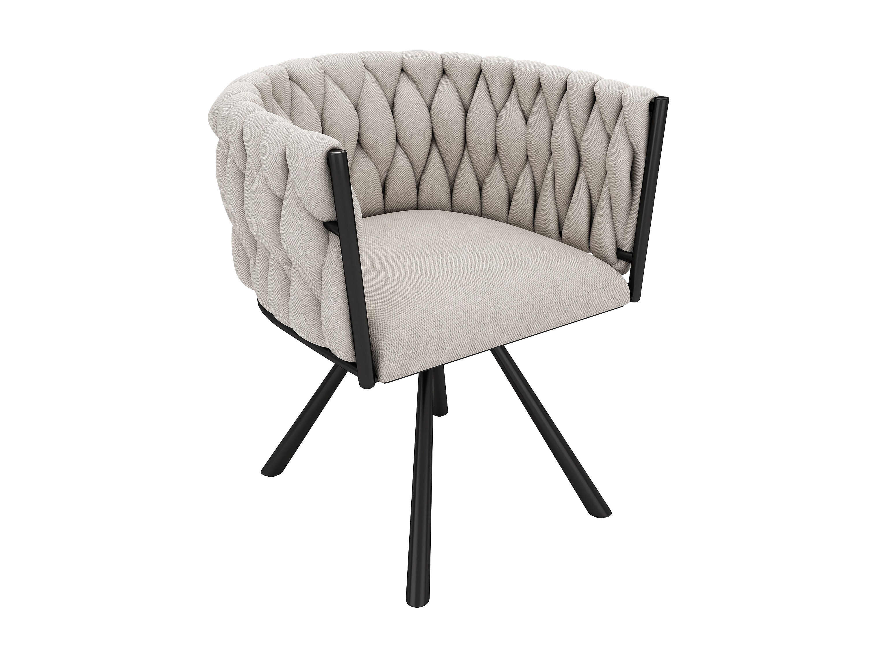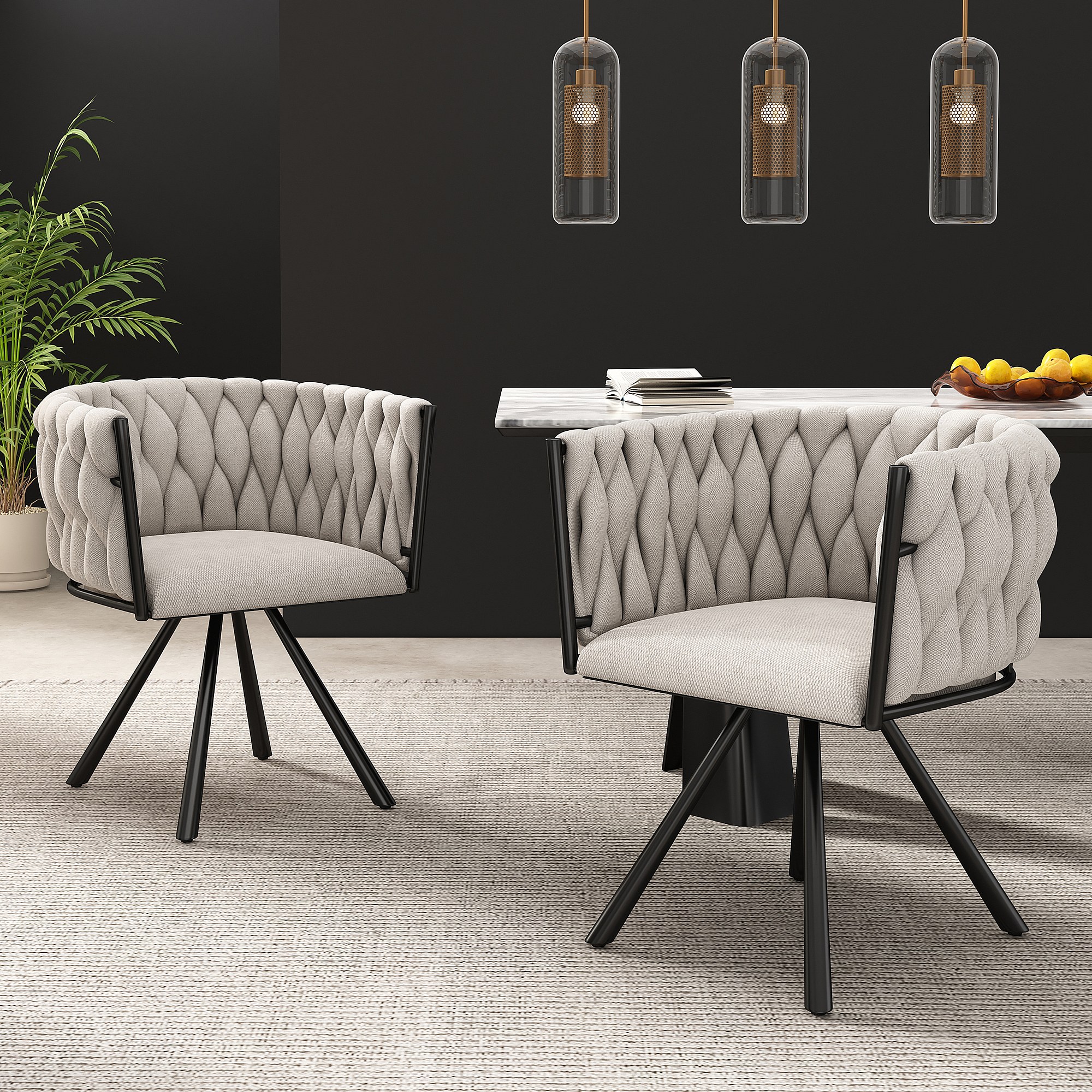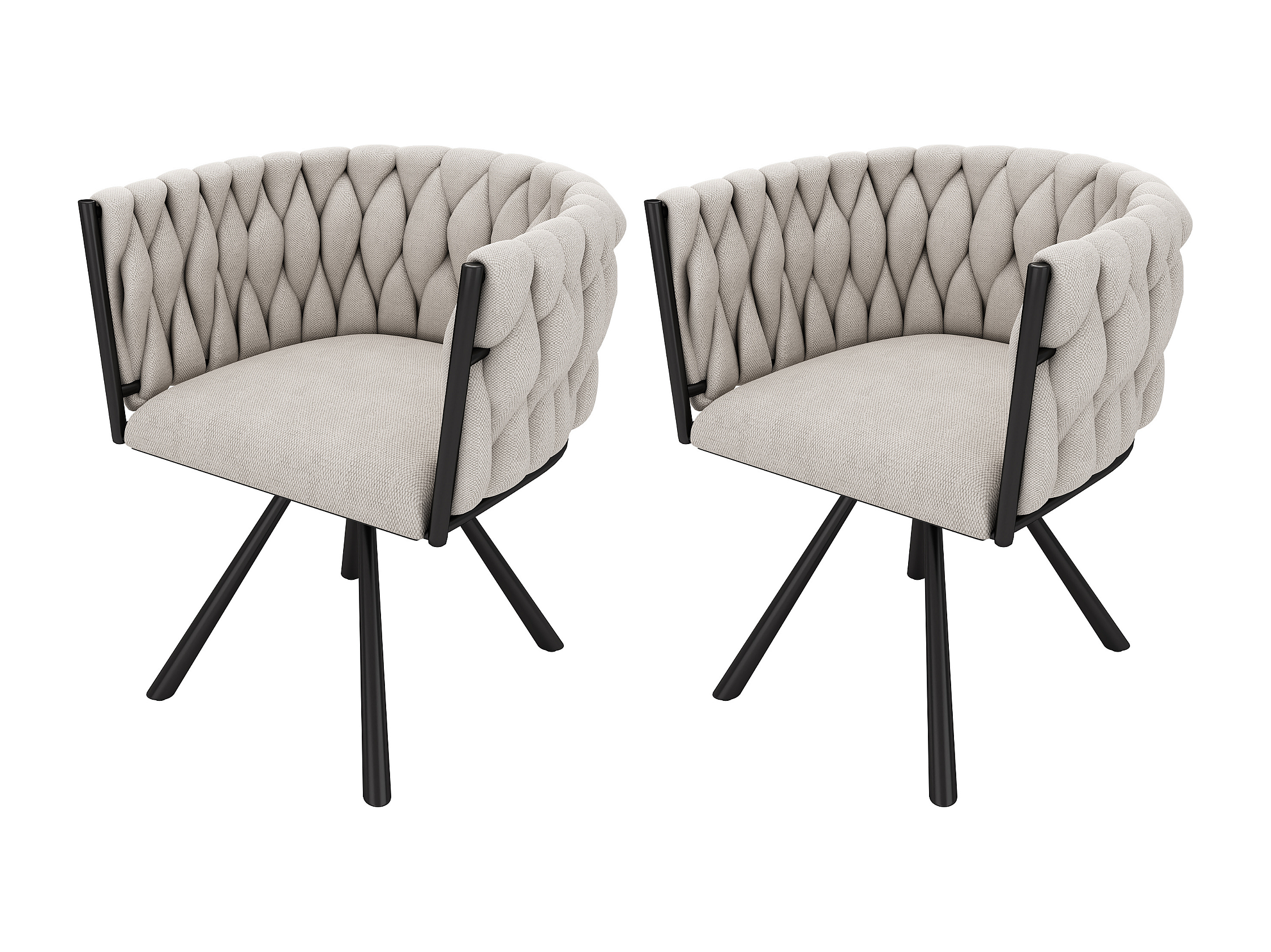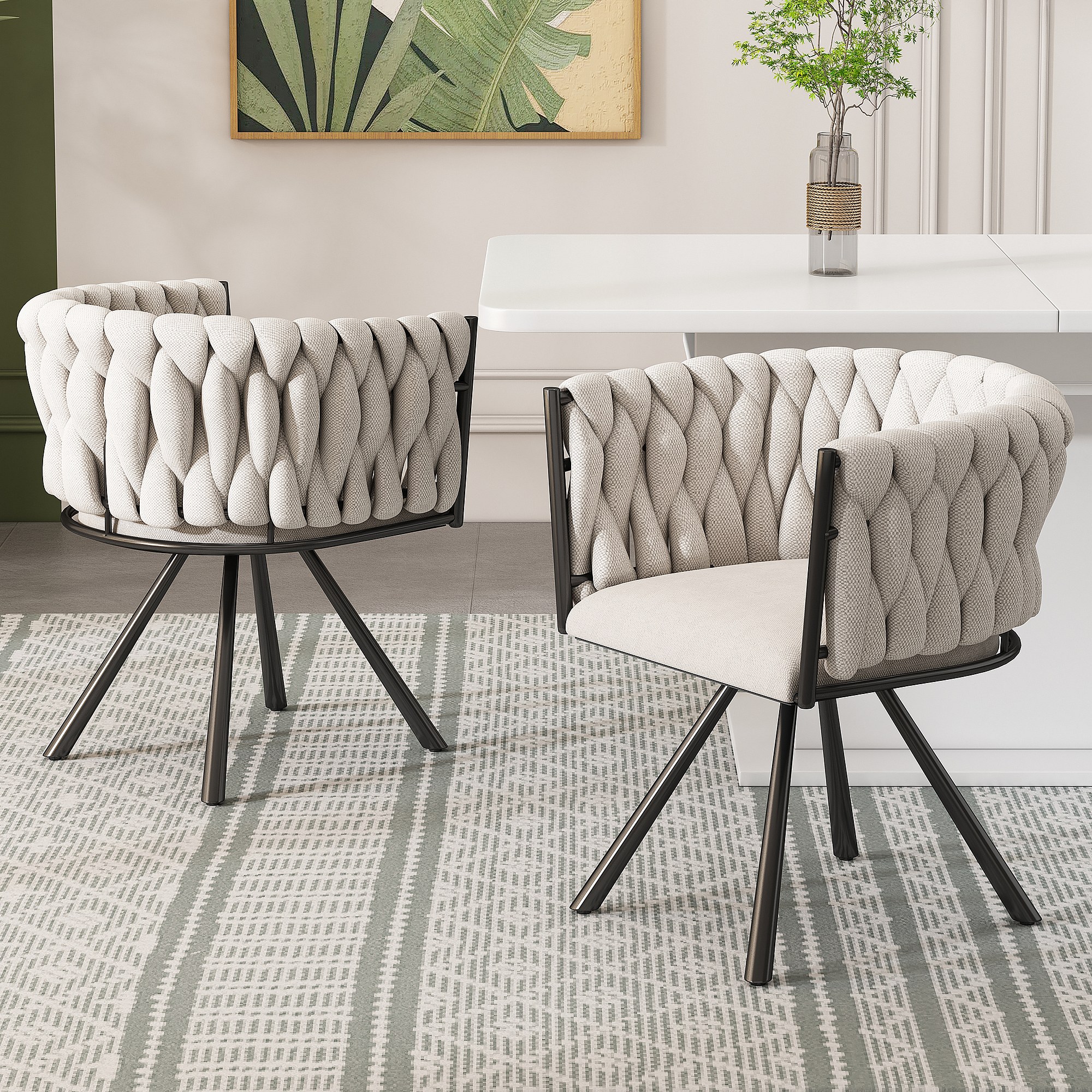 Lot de 2 chaises à manger rotative avec accoudoirs et dossier - pieds en métal noir - beige lin