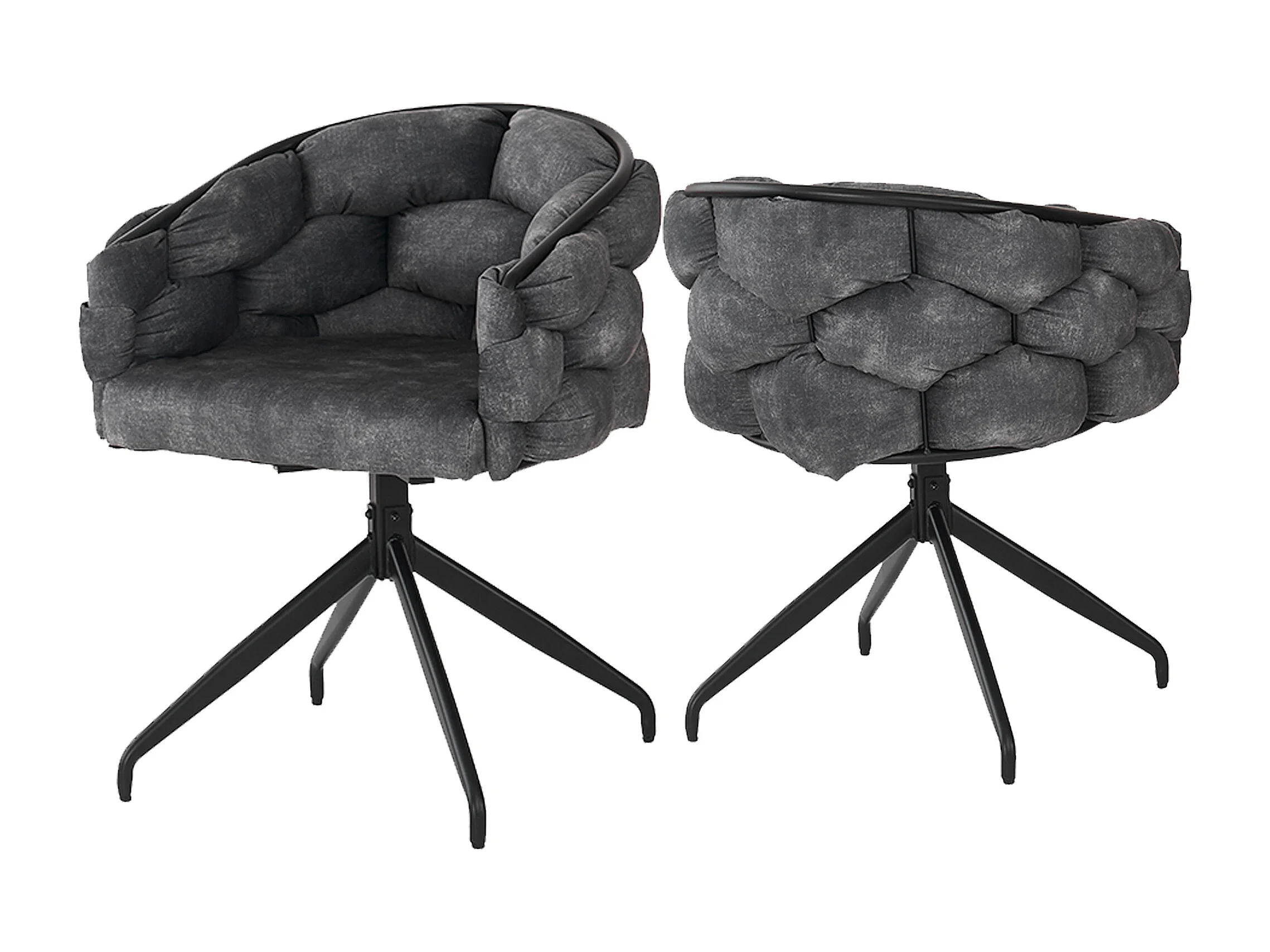Lot de 2 chaises à manger rotative en velours avec accoudoirs et dossier - pieds en métal noir - gris