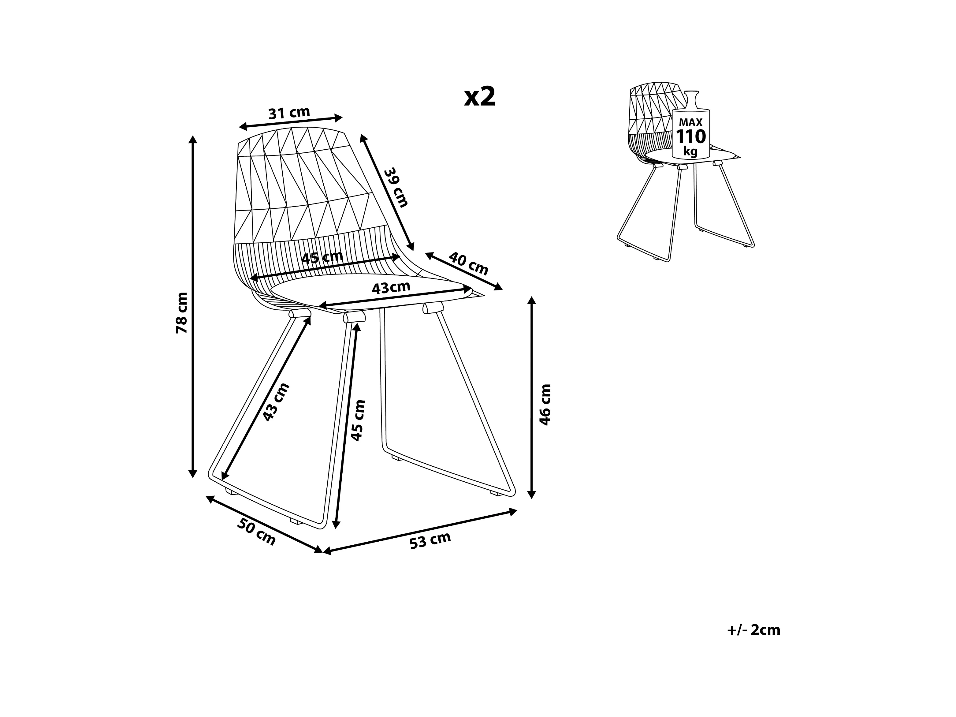 Lot de 2 chaises de salle à manger HARLAN Métal Argenté