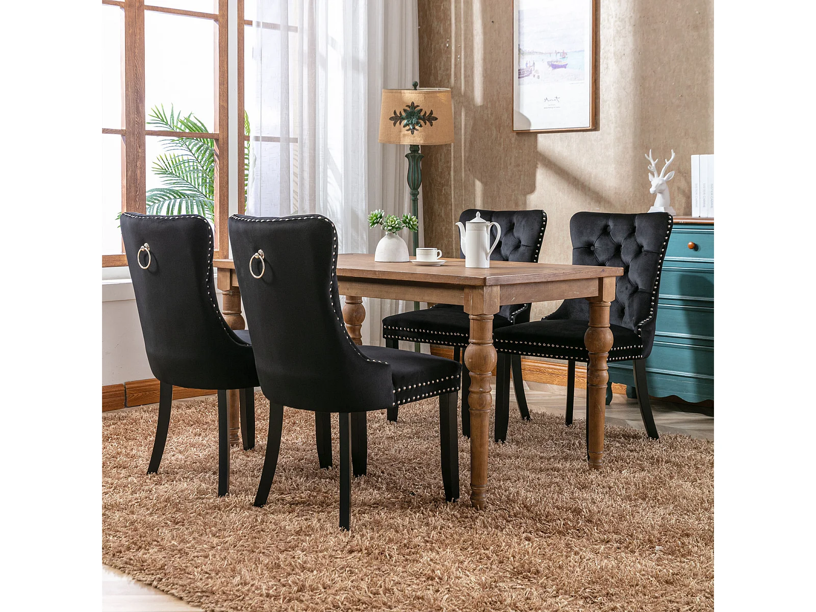 Chaise de salle à manger, dossier haut, assise confortable, pieds réglables, velours noir