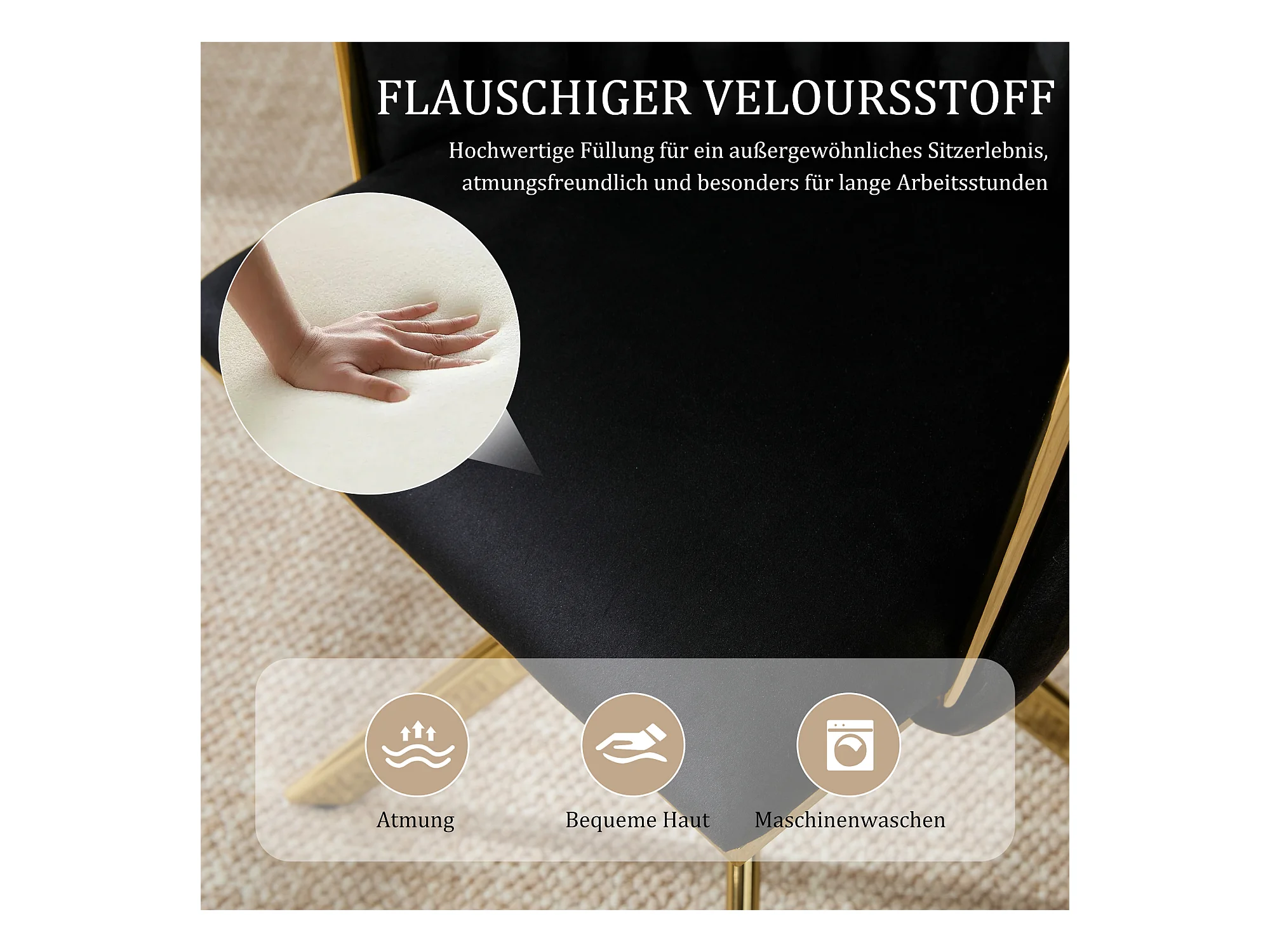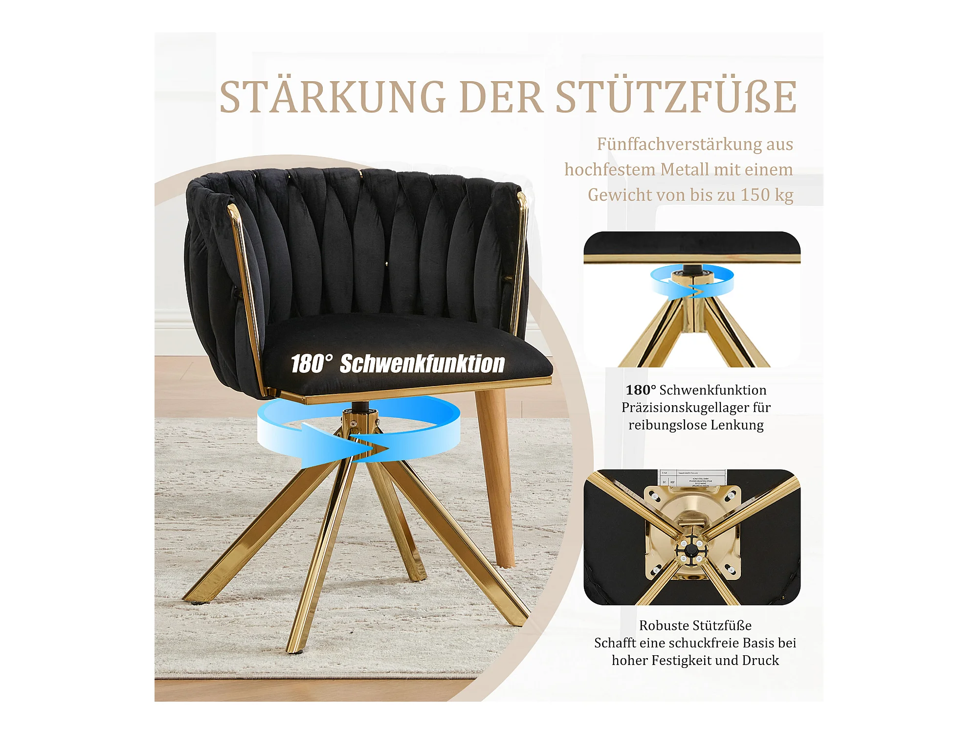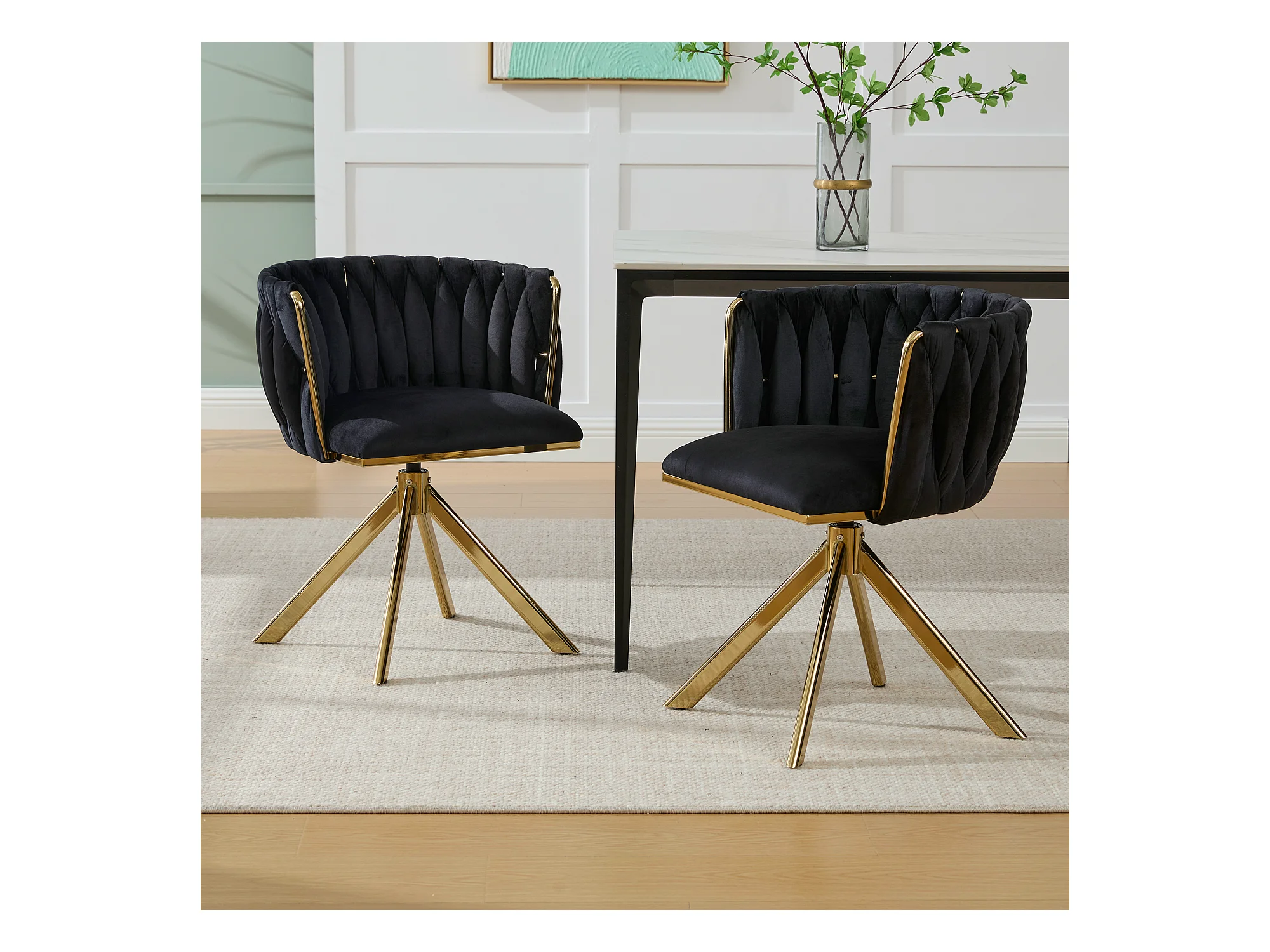 Lot de 2 chaises avec structure en métal - 56 x 50 x 70 cm - rotation à 180°- pieds dorés - velours - noir