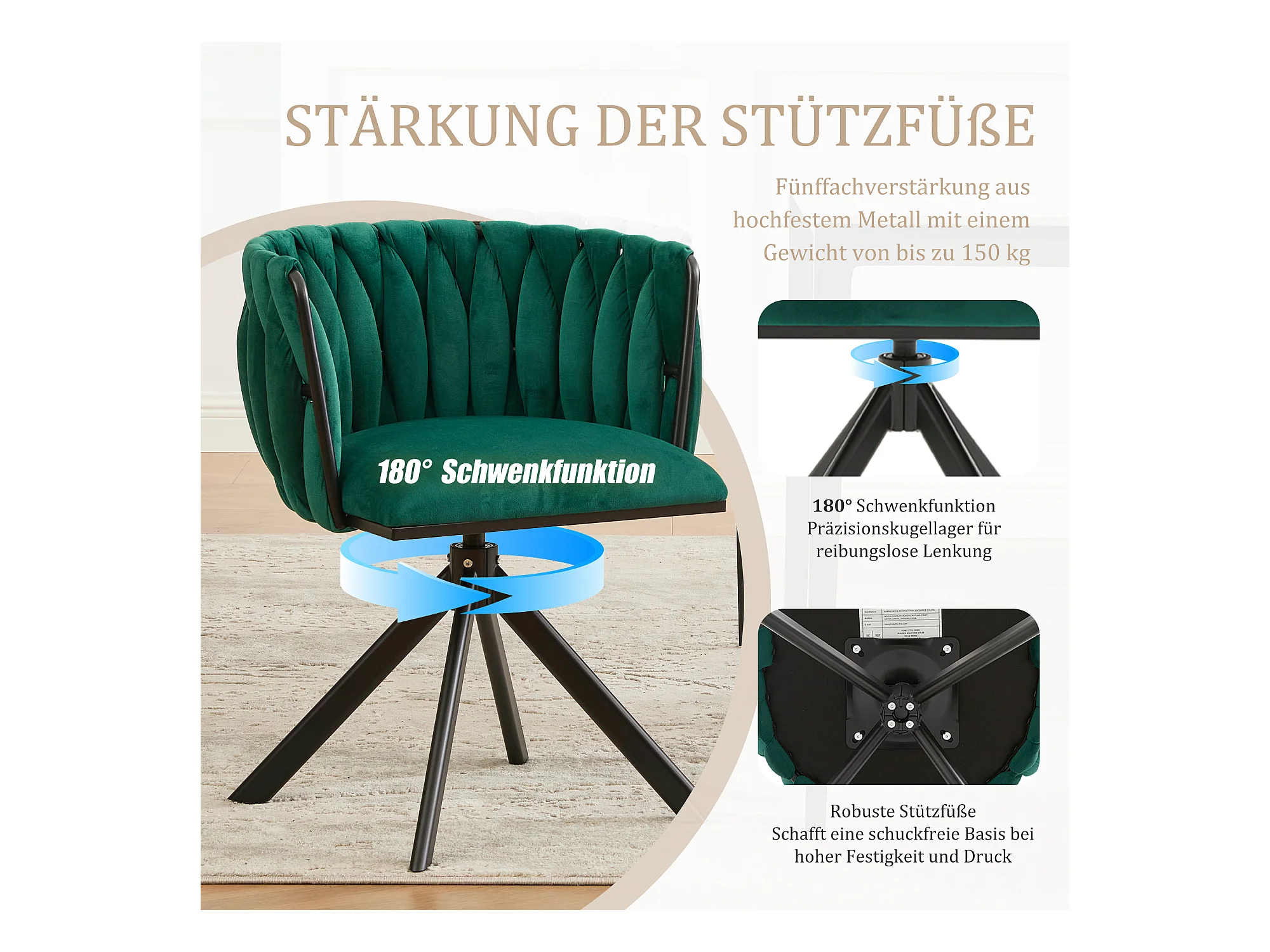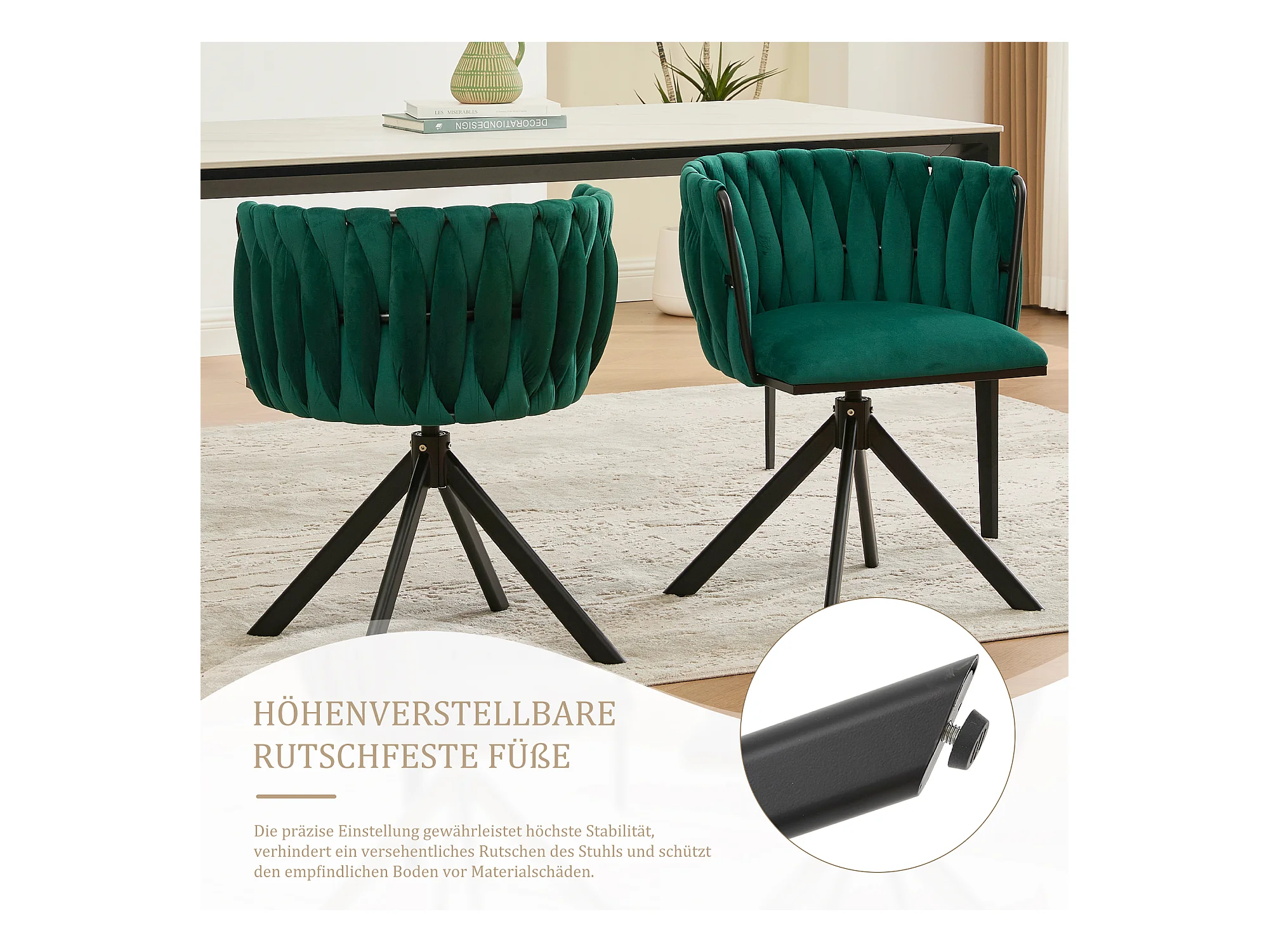 Lot de 2 chaises de salle à manger en velours vert avec fonction pivotante et pieds en métal noir