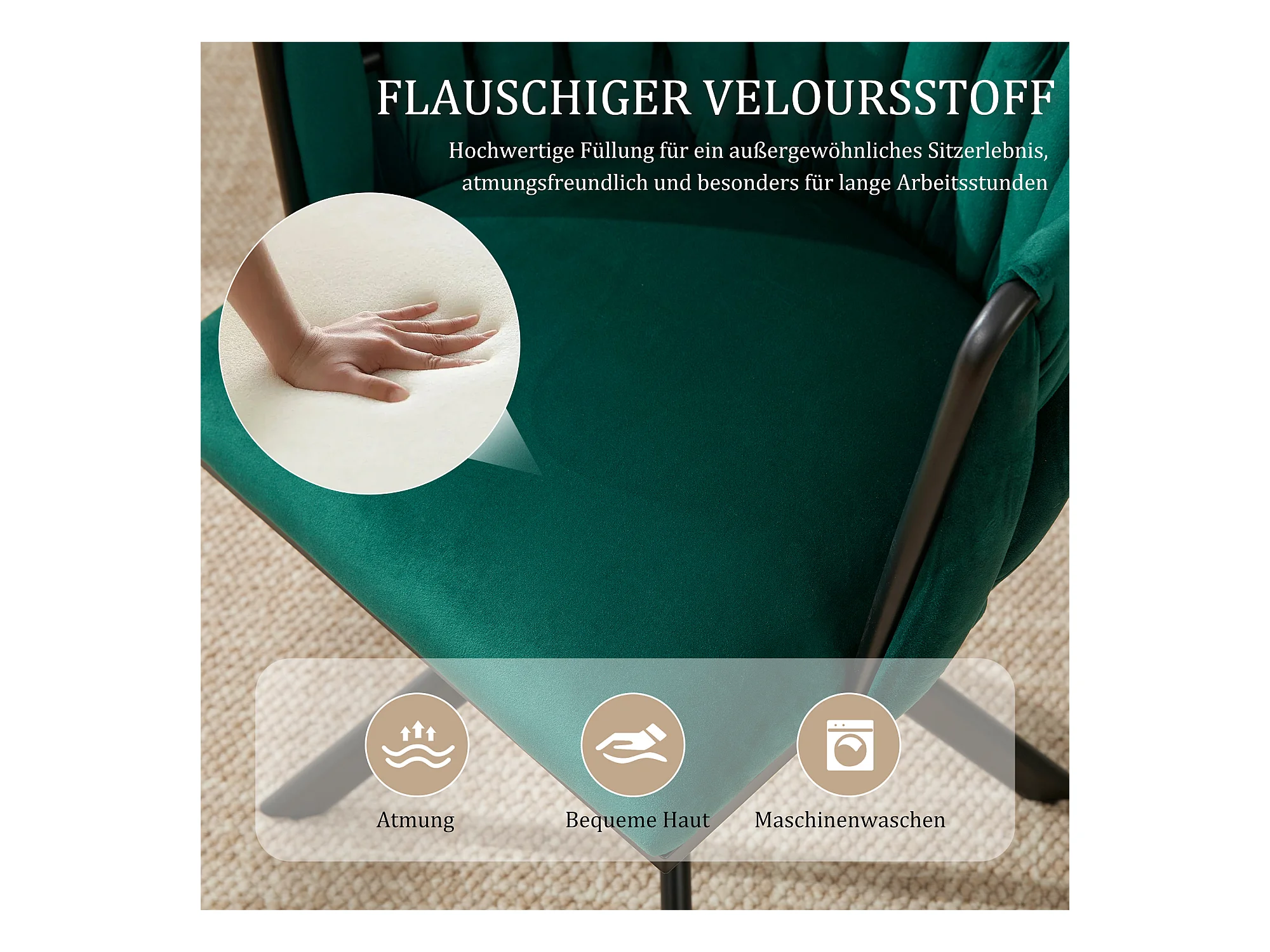 Lot de 2 chaises avec structure en métal - 56 x 50 x 70 cm - rotation à 180°- pieds noirs - velours - vert