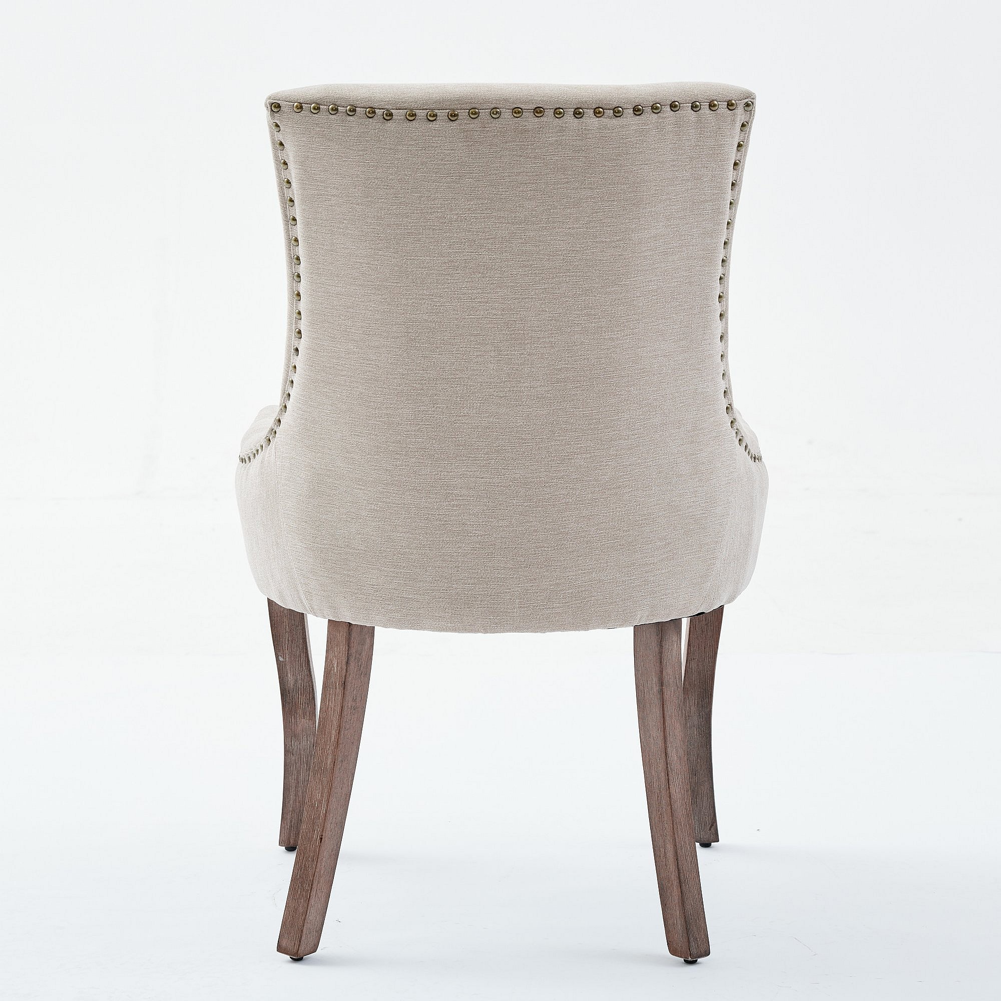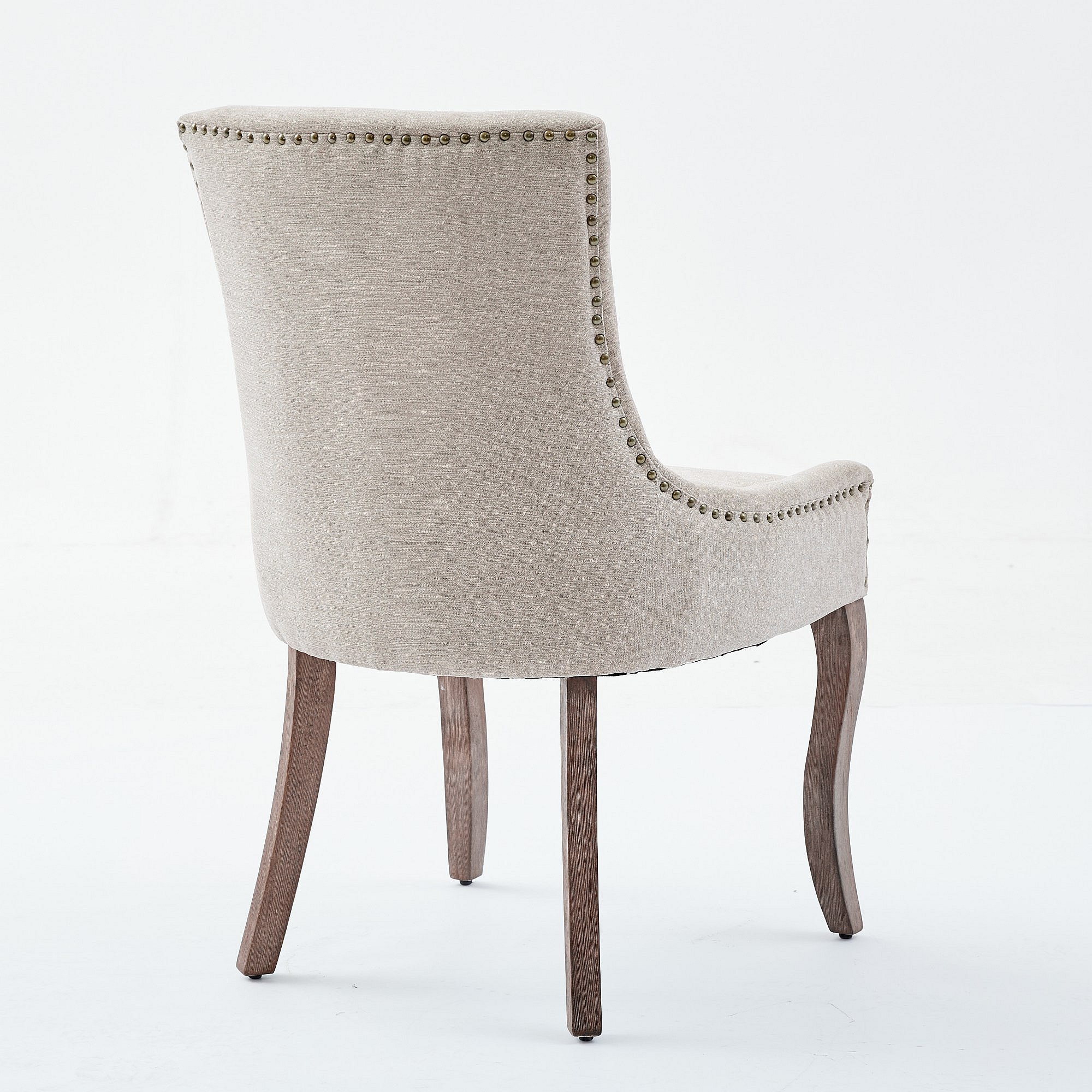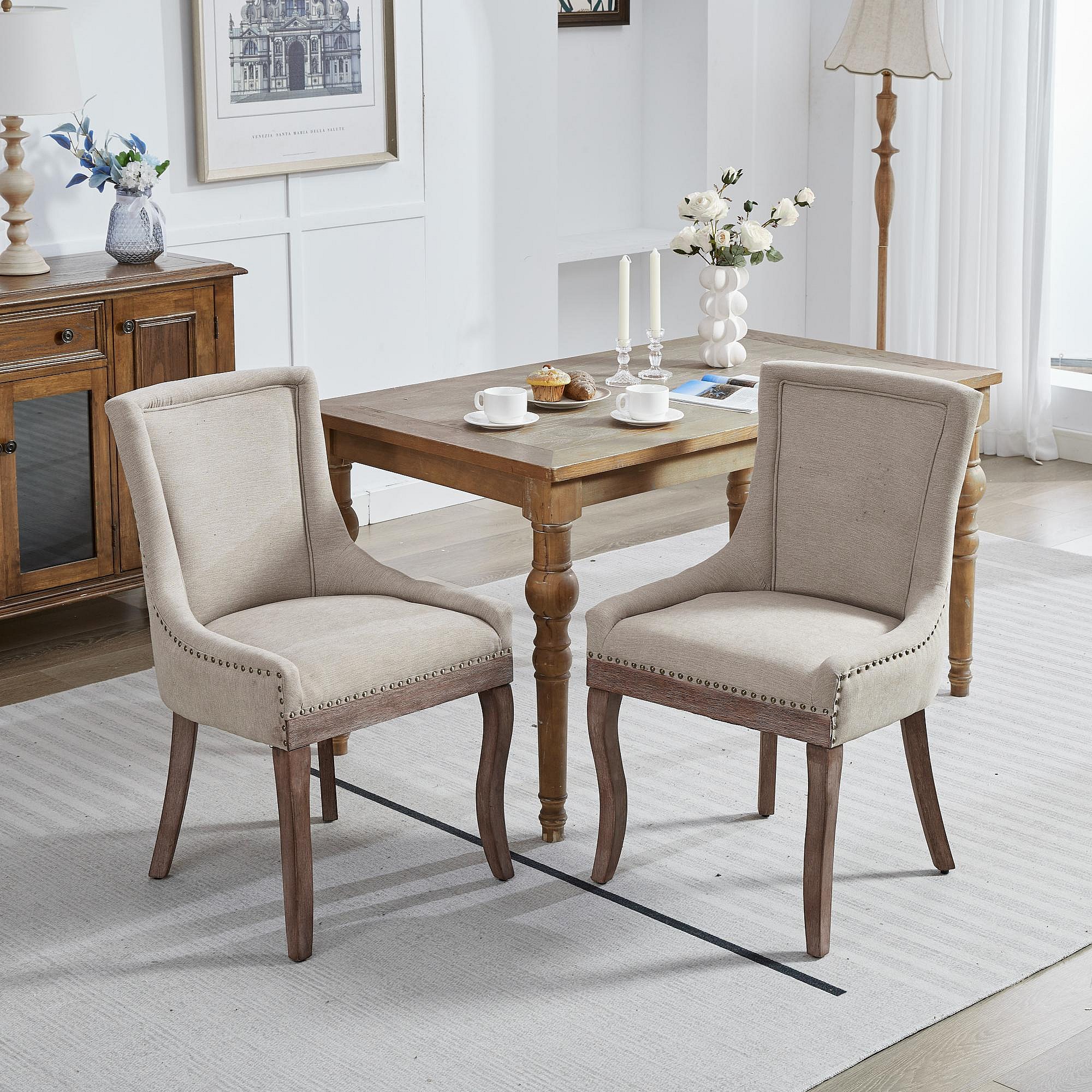 Lot de 2 chaises beiges avec pieds en bois courbé et garniture cloutée