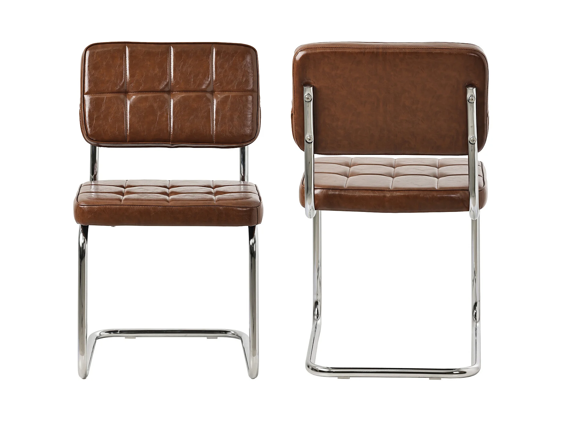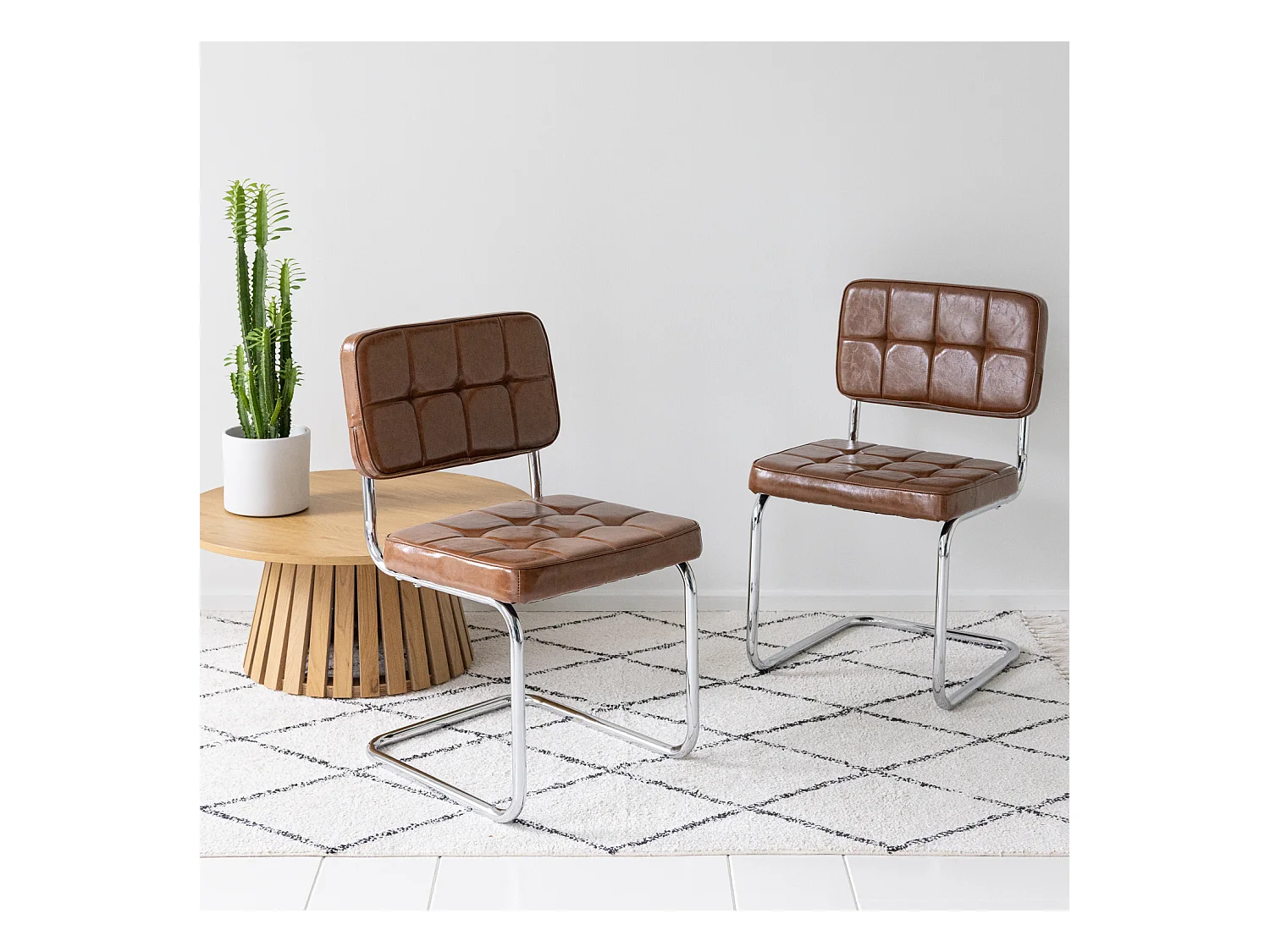 Lot de 2 chaises cantilever en simili marron MARIA - HAPPY GARDEN