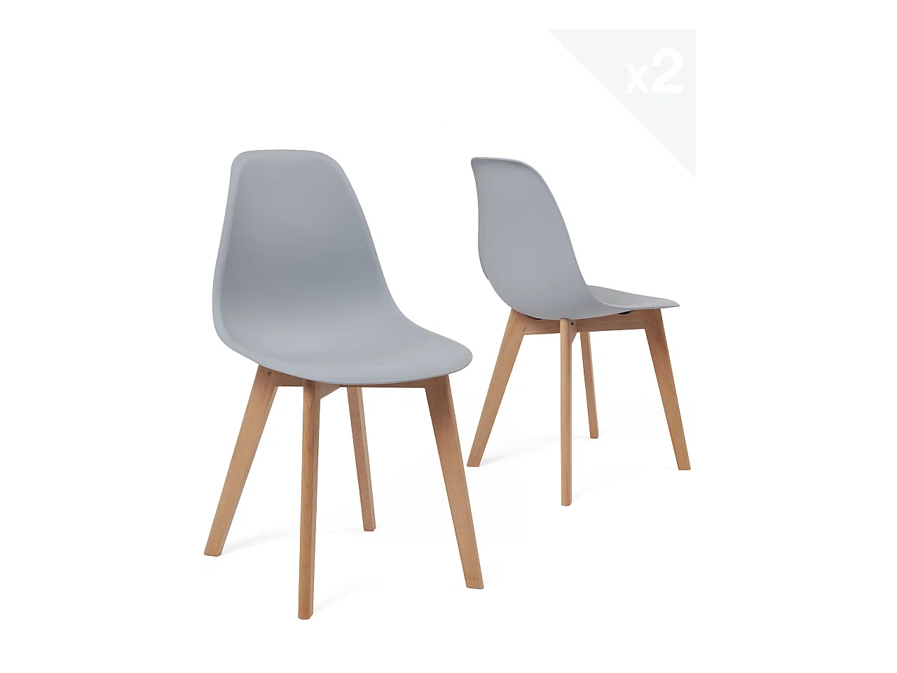 Lot 2 chaises de cuisine scandinaves siège plastique souple pieds bois hêtre clair NAO (gris)