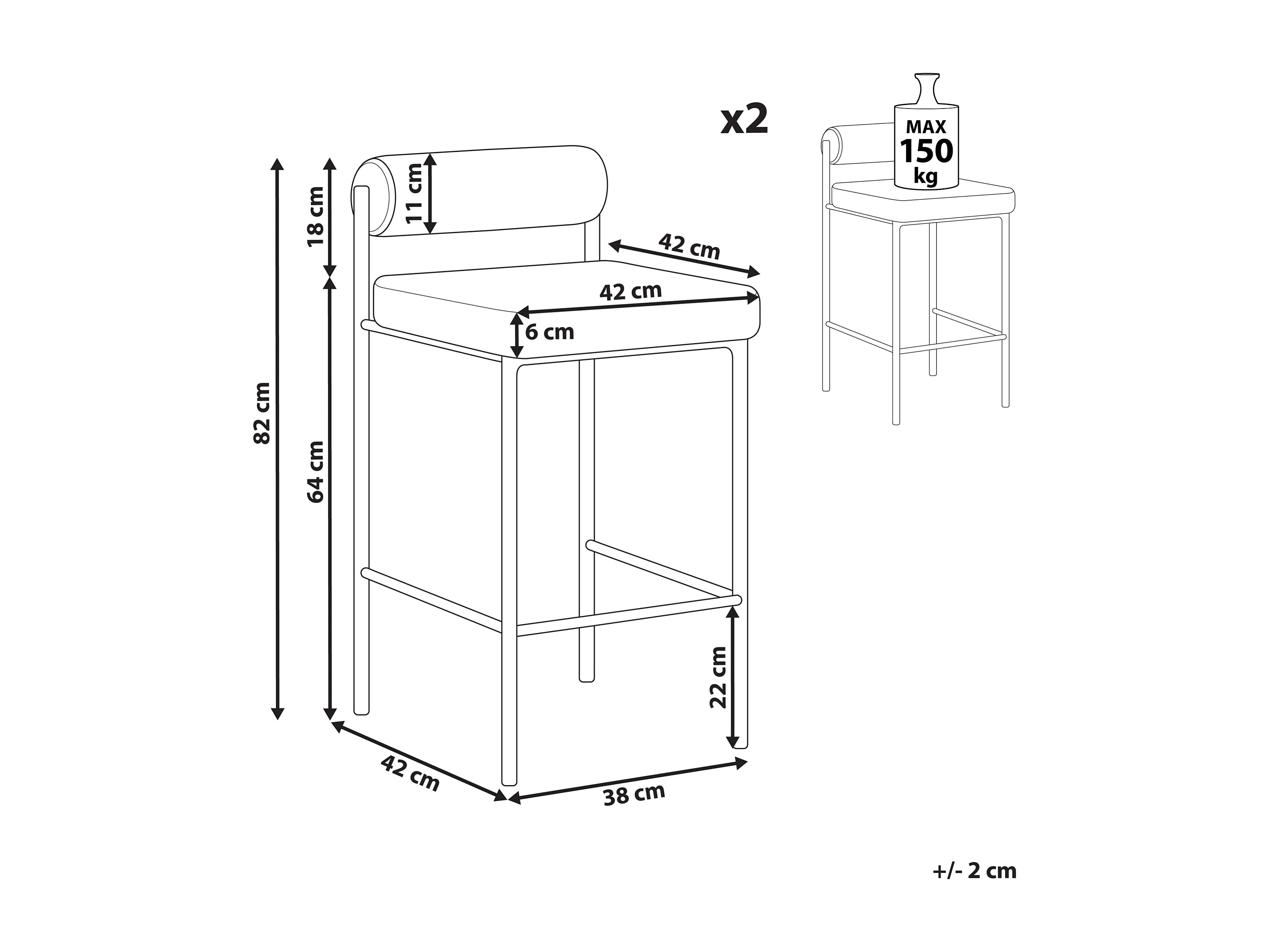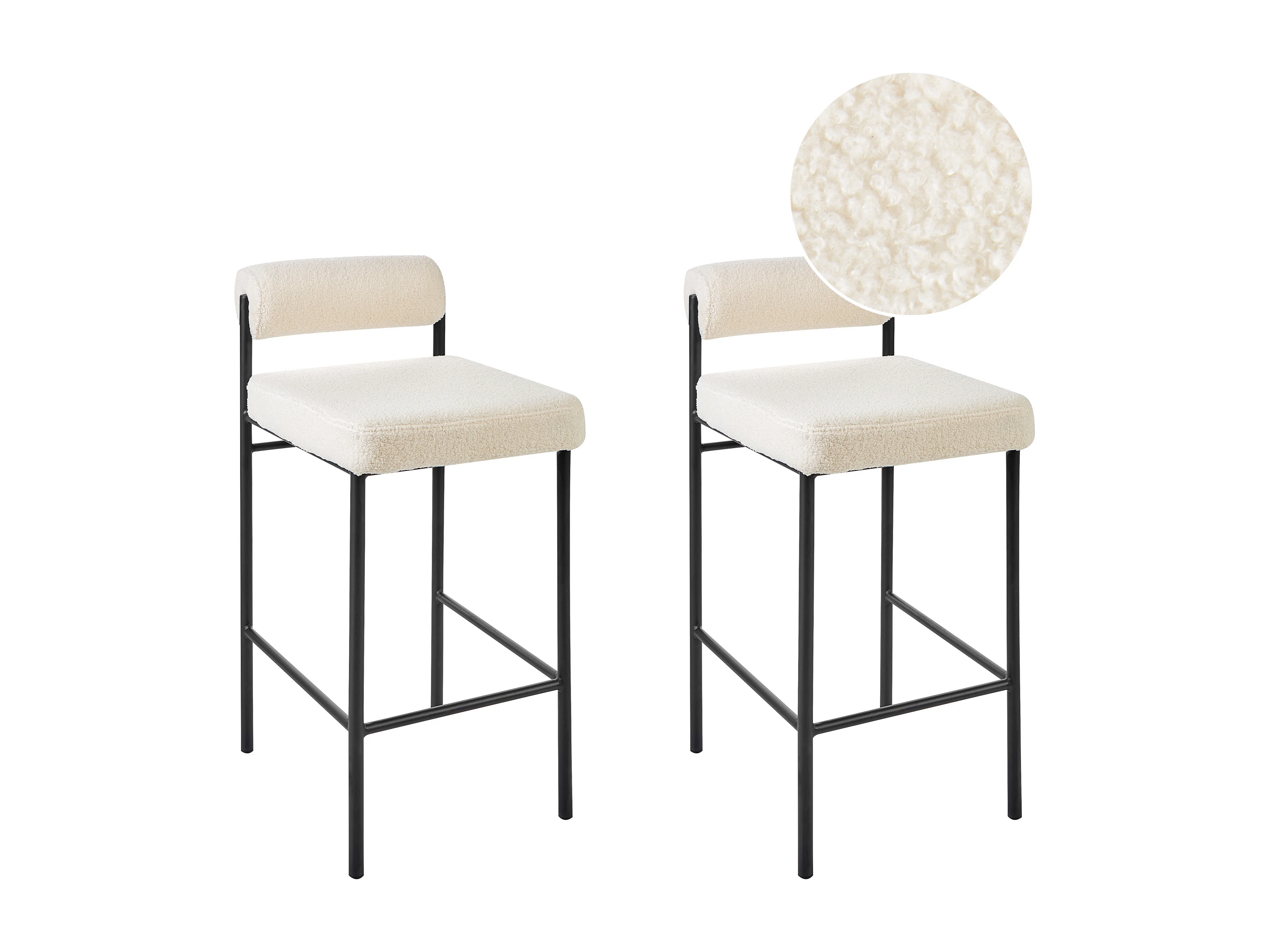 Lot de 2 chaises de bar AMAYA Bouclé Blanc cassé