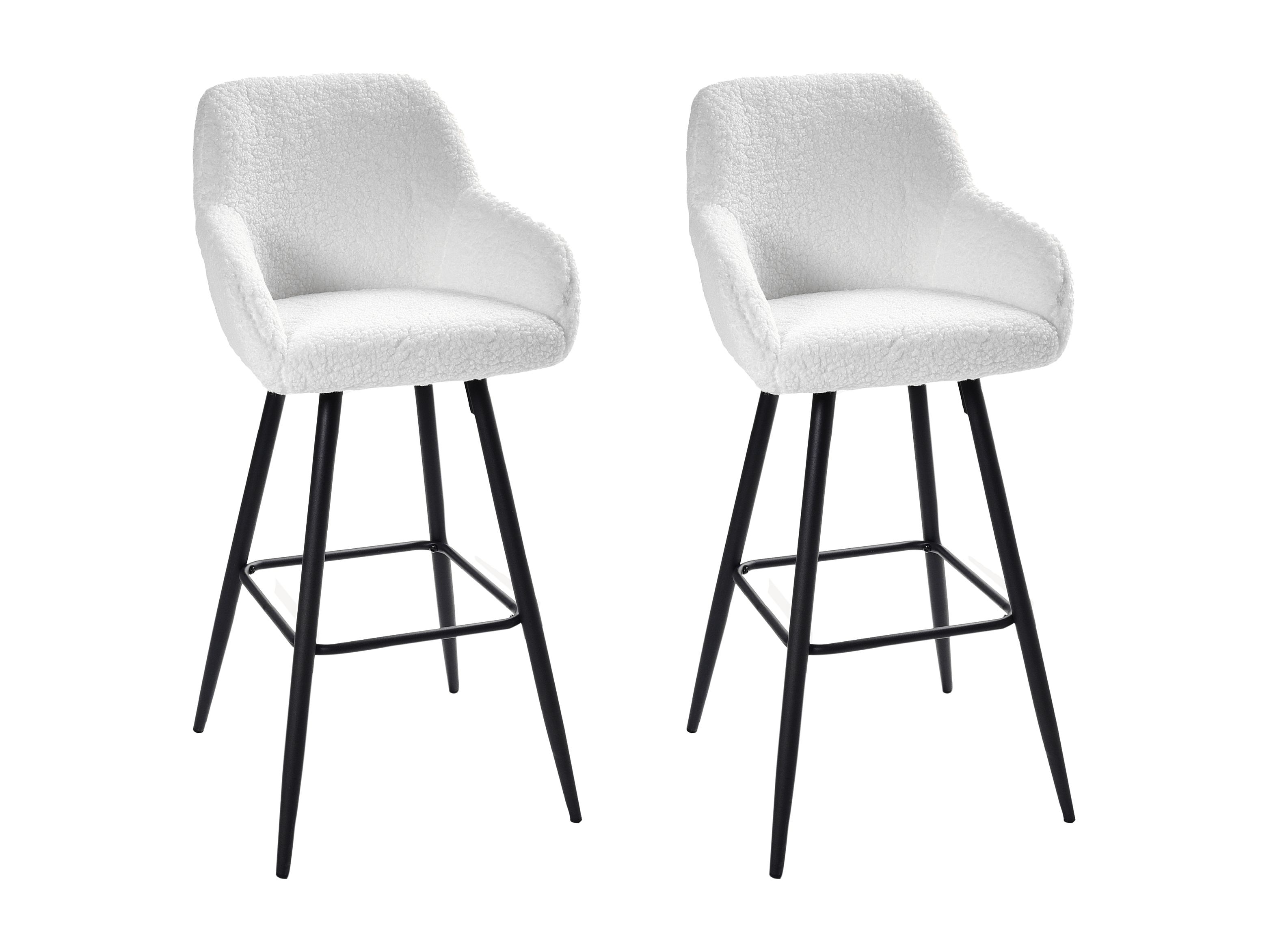 Lot de 2 chaises de bar CASMALIA Bouclé Blanc cassé