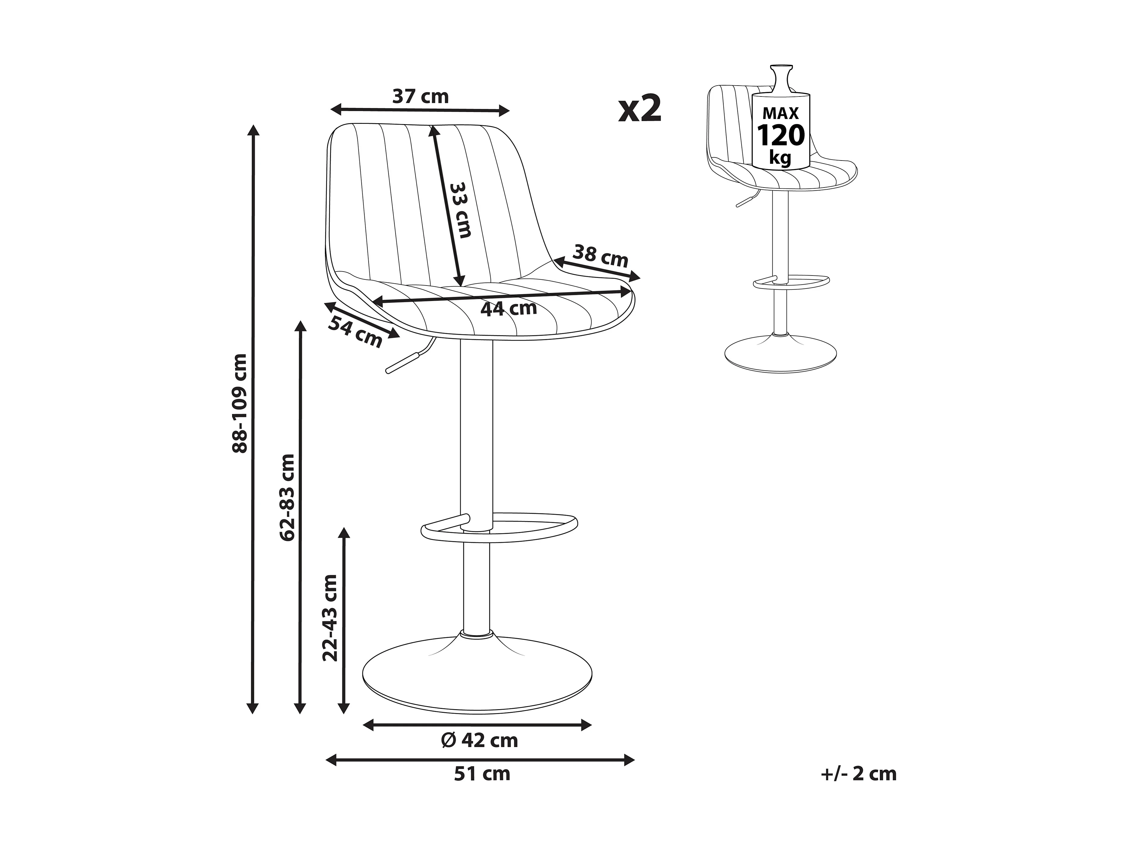 Lot de 2 chaises de bar DUBROVNIK Velours Beige clair
