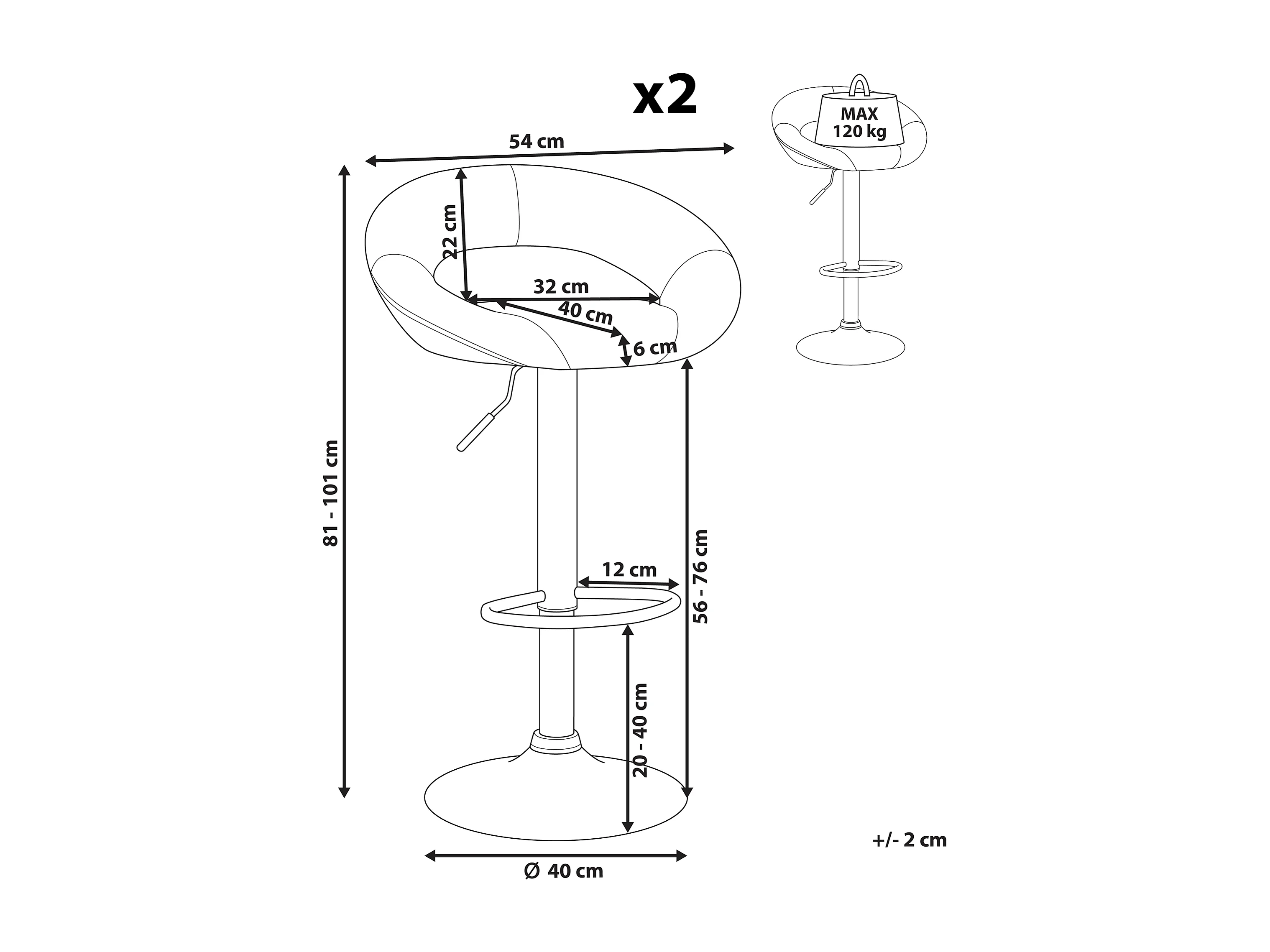 Lot de 2 chaises de bar PEORIA Cuir PU Blanc