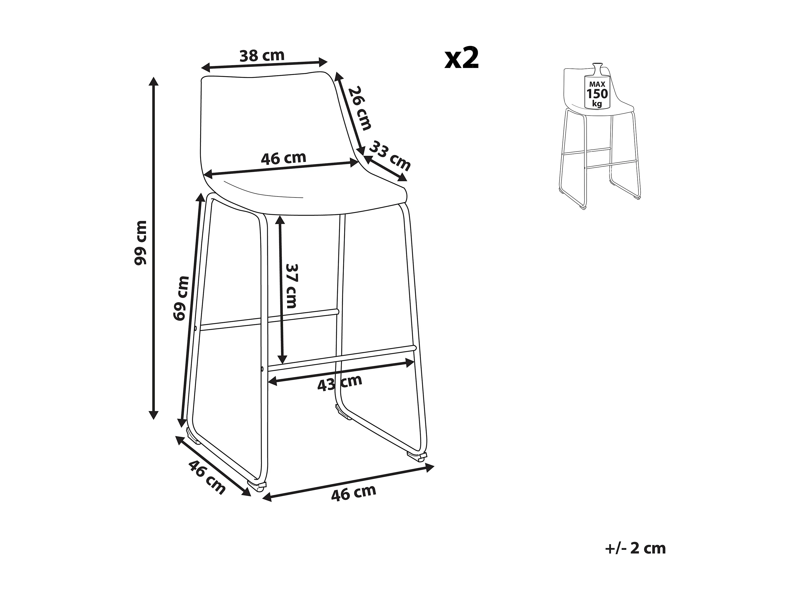 Lot de 2 chaises de bar FRANKS Gris