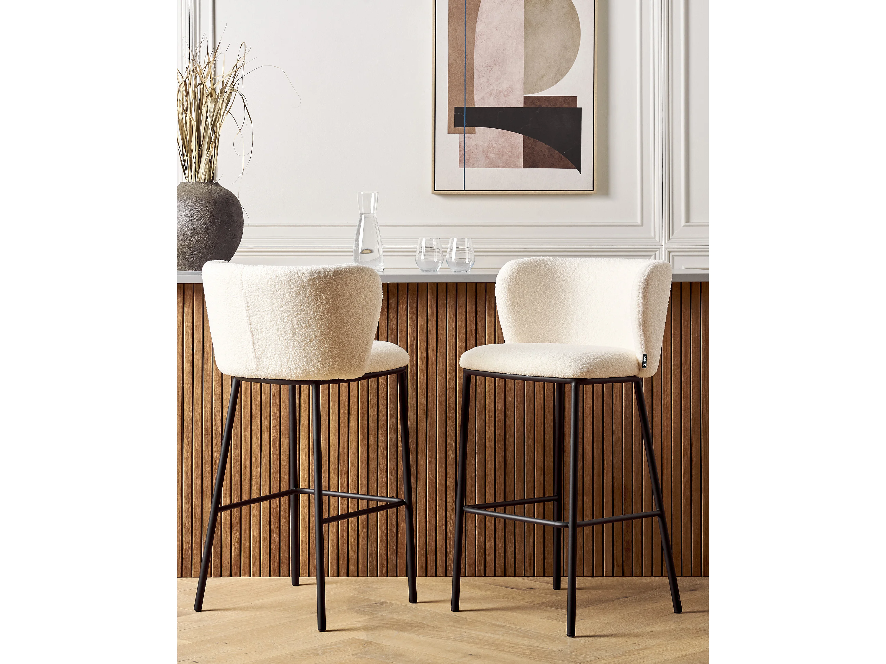 Lot de 2 chaises de bar MINA Bouclé Blanc