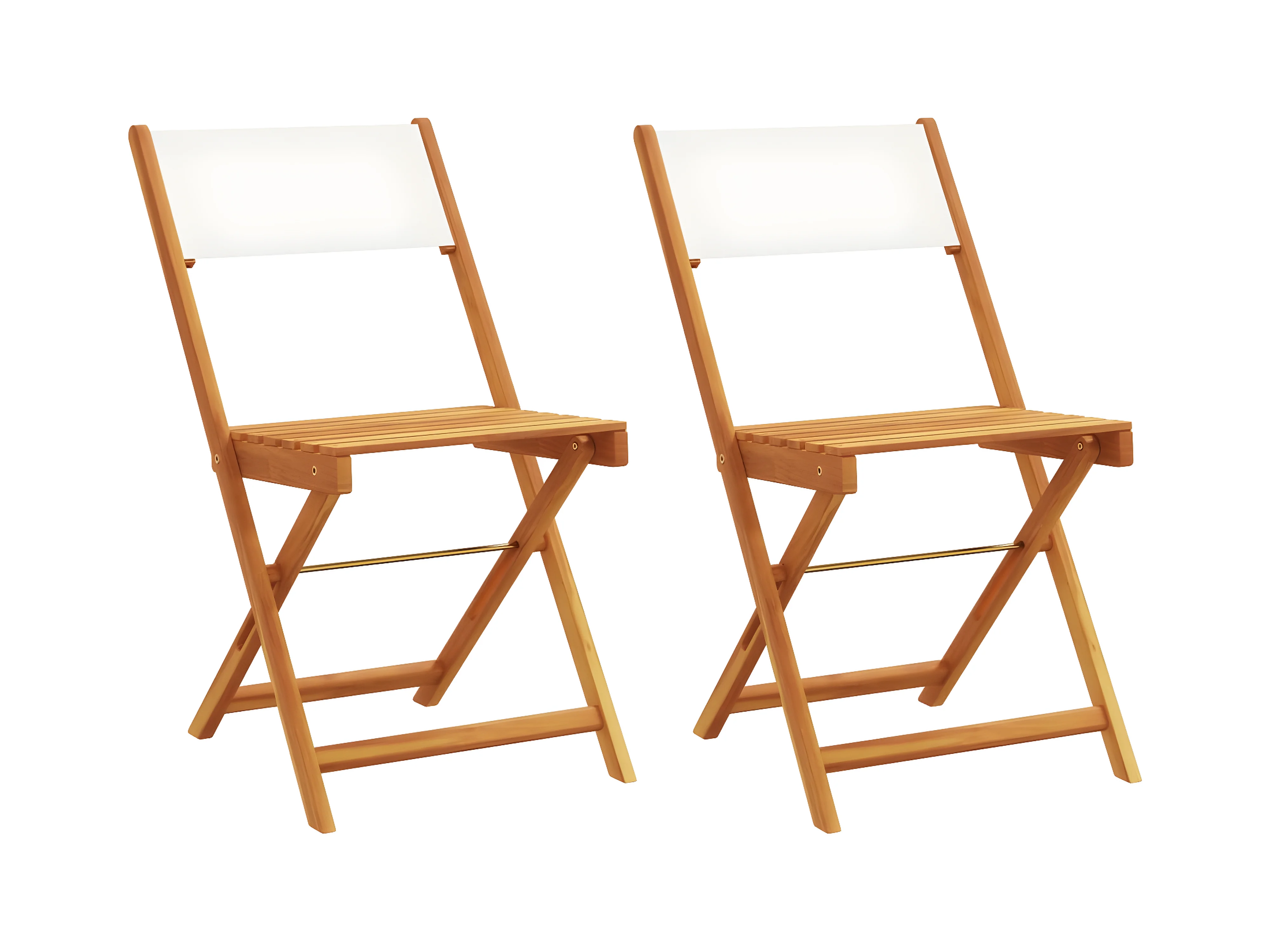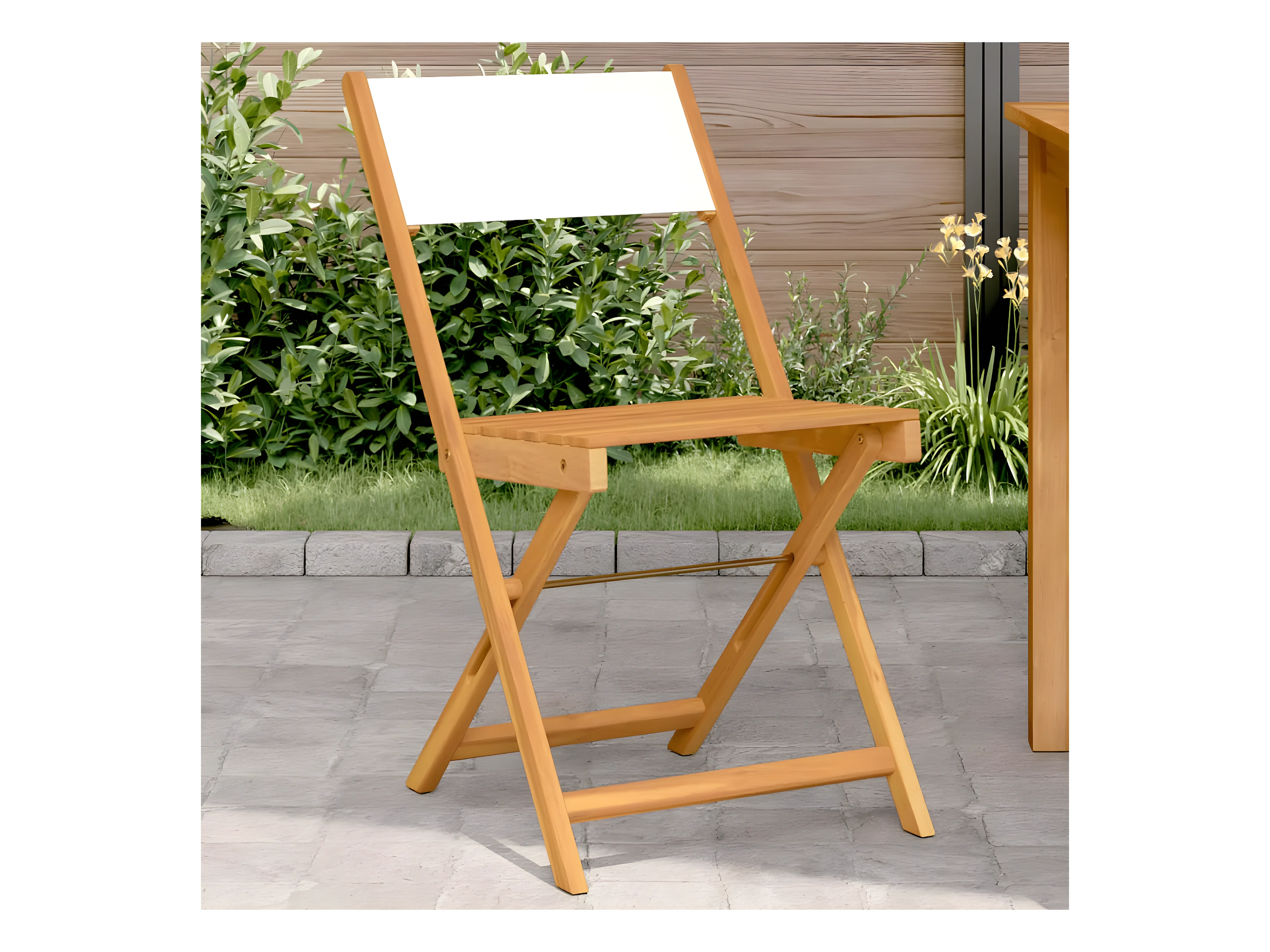 Lot de 2 Chaises de bistrot blanc crème bois acacia et tissu FR16846