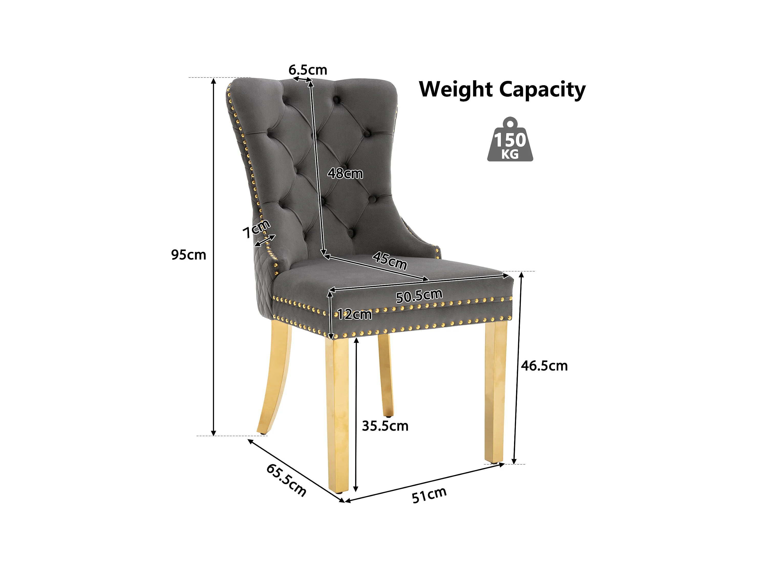 Lot de 2 Chaises de cuisine en velours gris, cadre en métal doré