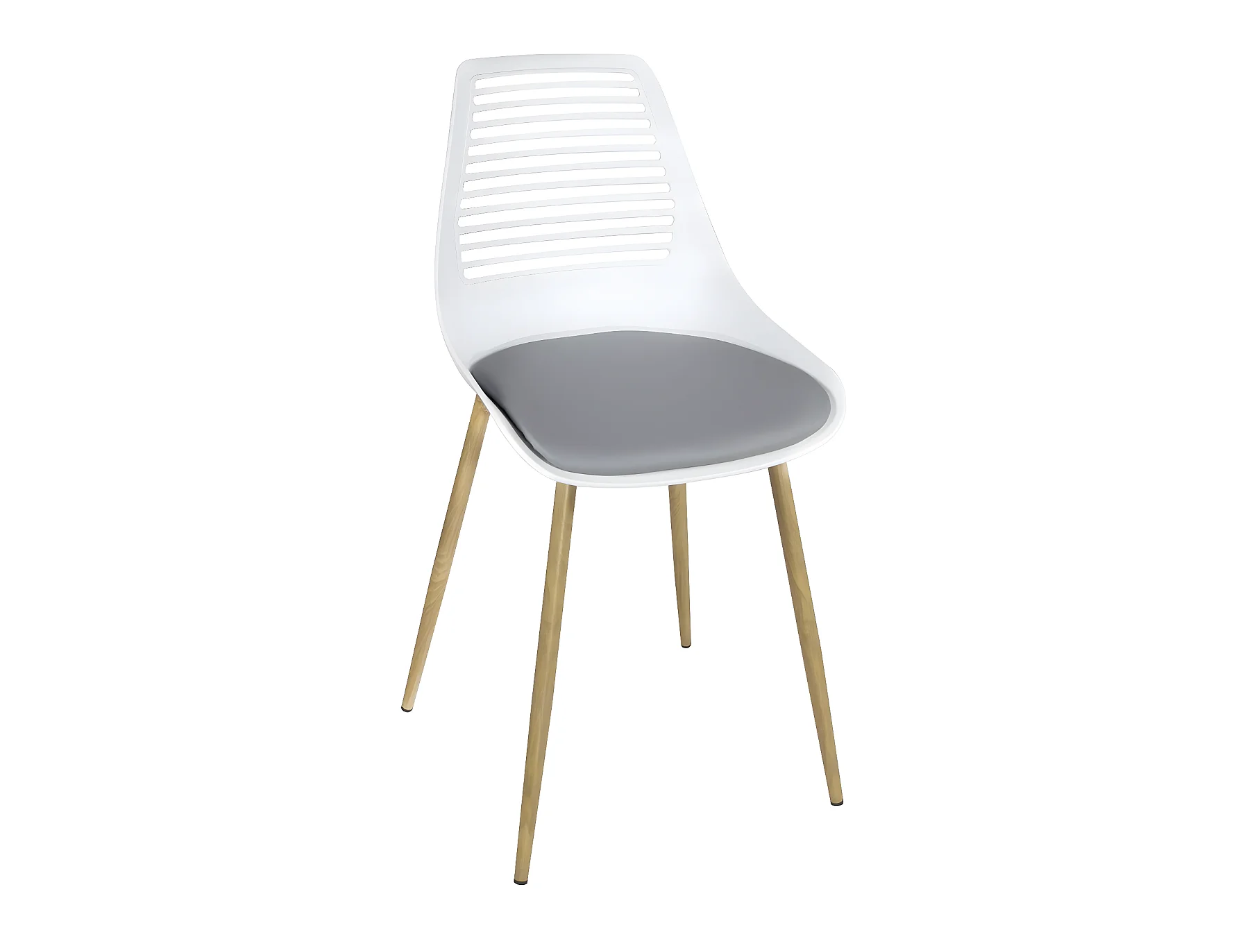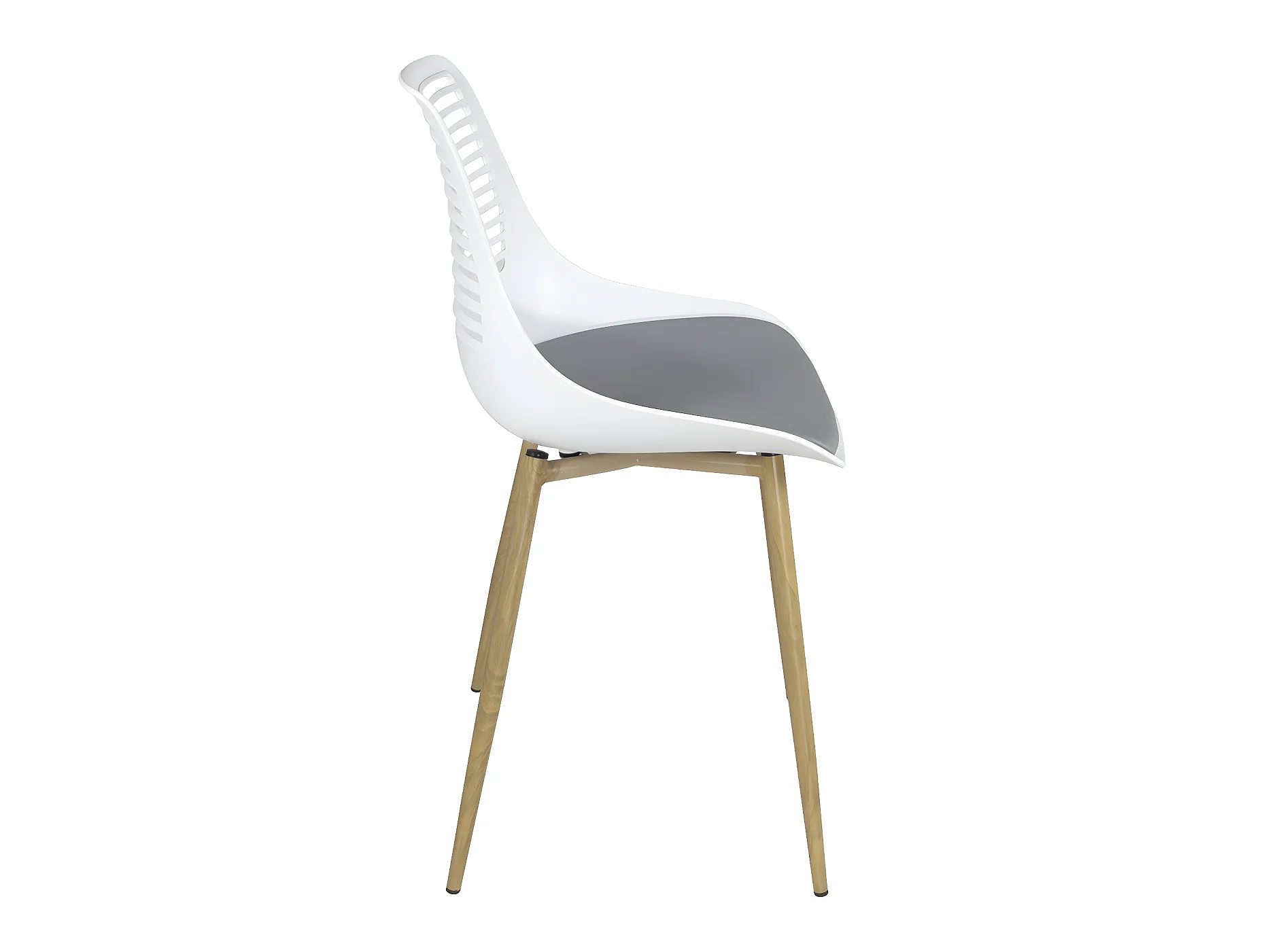 Lot 2 chaises de cuisine dossier ajouré coussin simili pieds métal ton bois clair GEOS (Blanc gris)