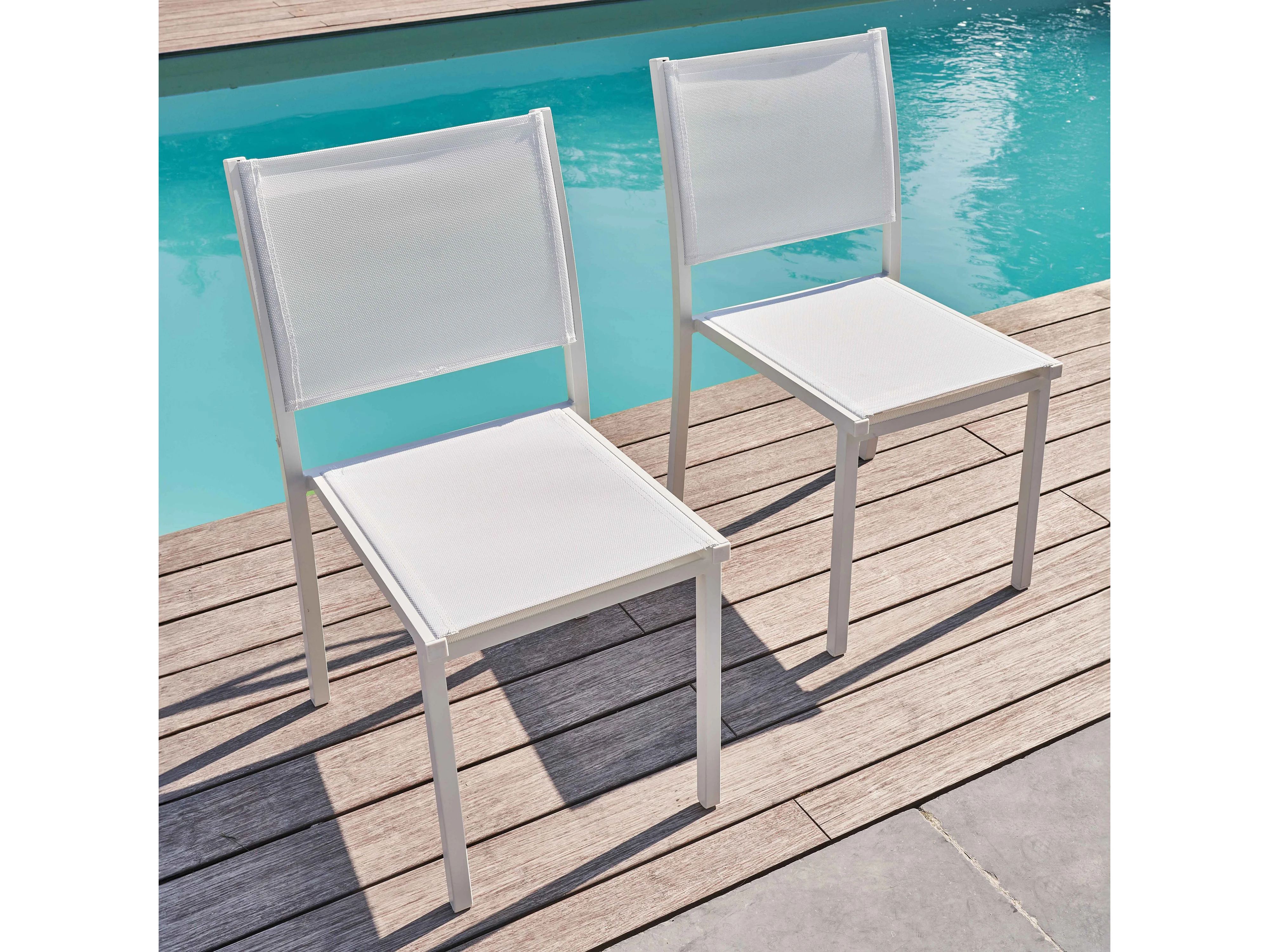 Lot de 2 chaises de jardin aluminium et textilène blanc
