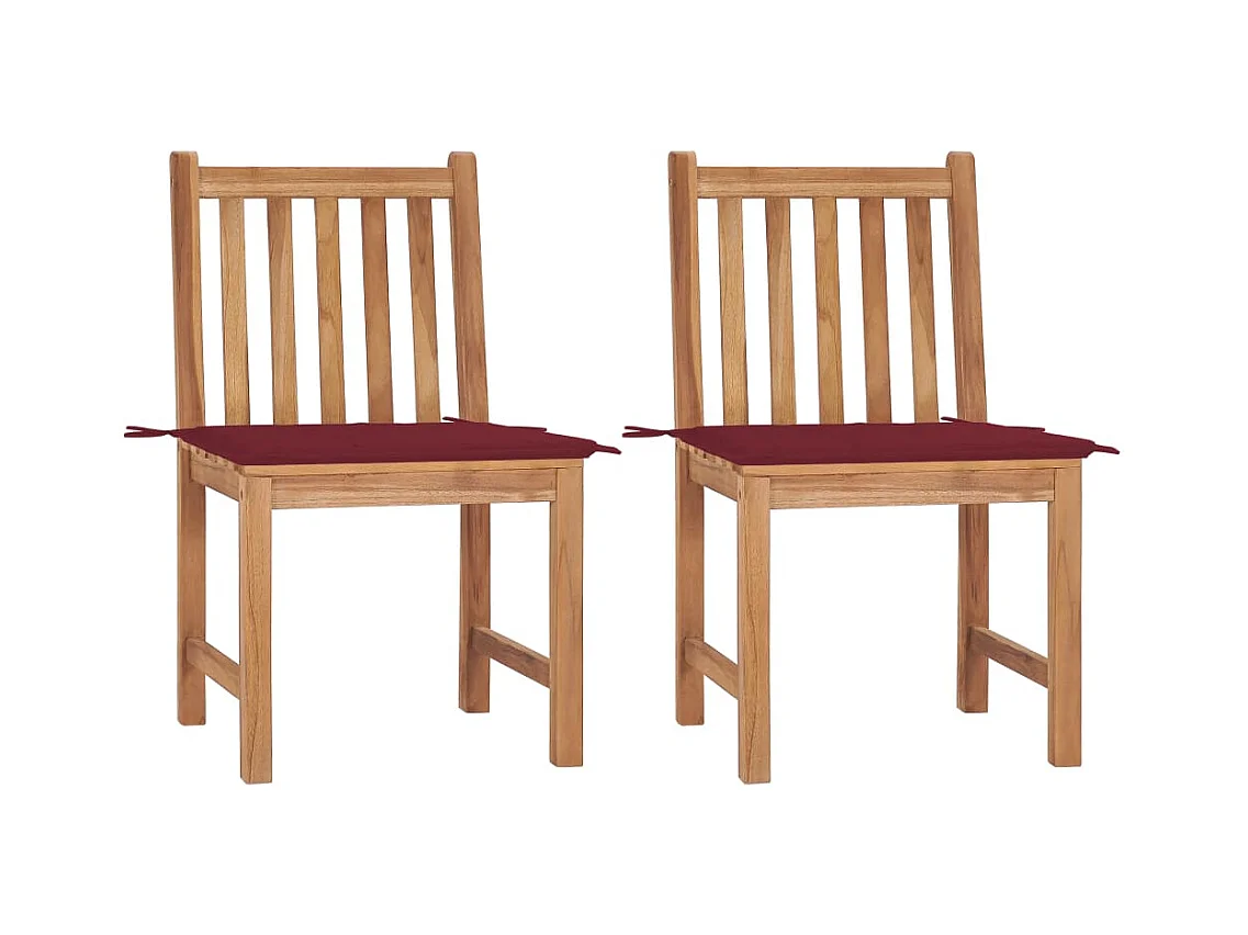 Lot de 2 Chaises de jardin avec coussins bordeaux Teck massif FR49139