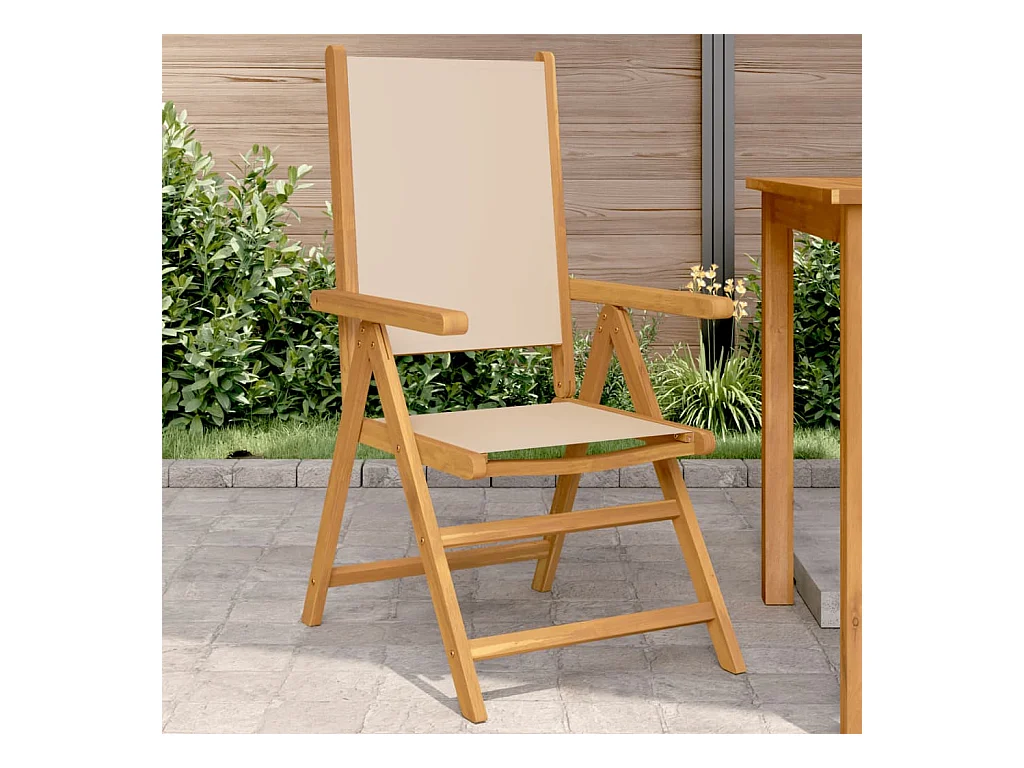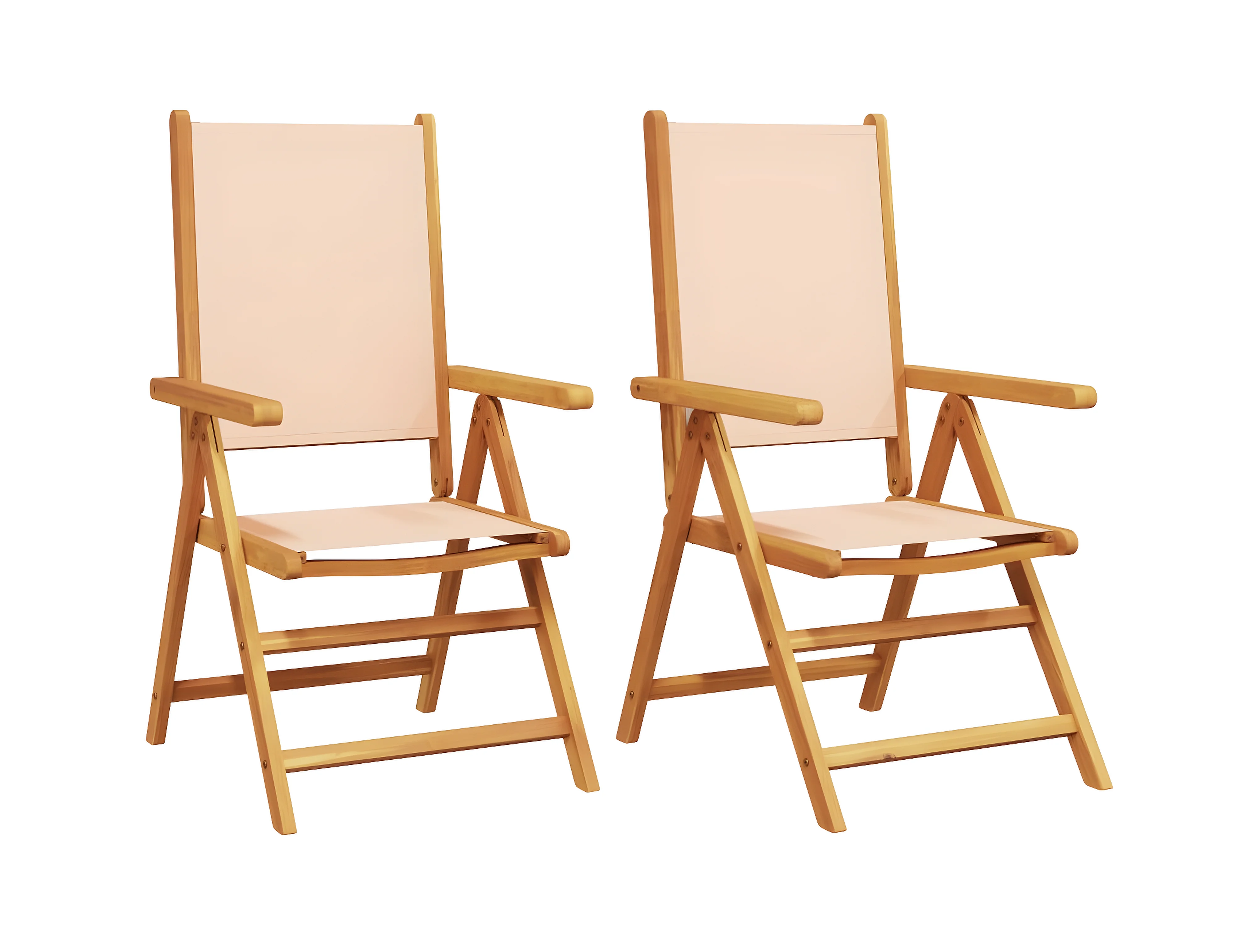 Lot de 2 Chaises de jardin beige bois d'acacia massif et tissu FR62282